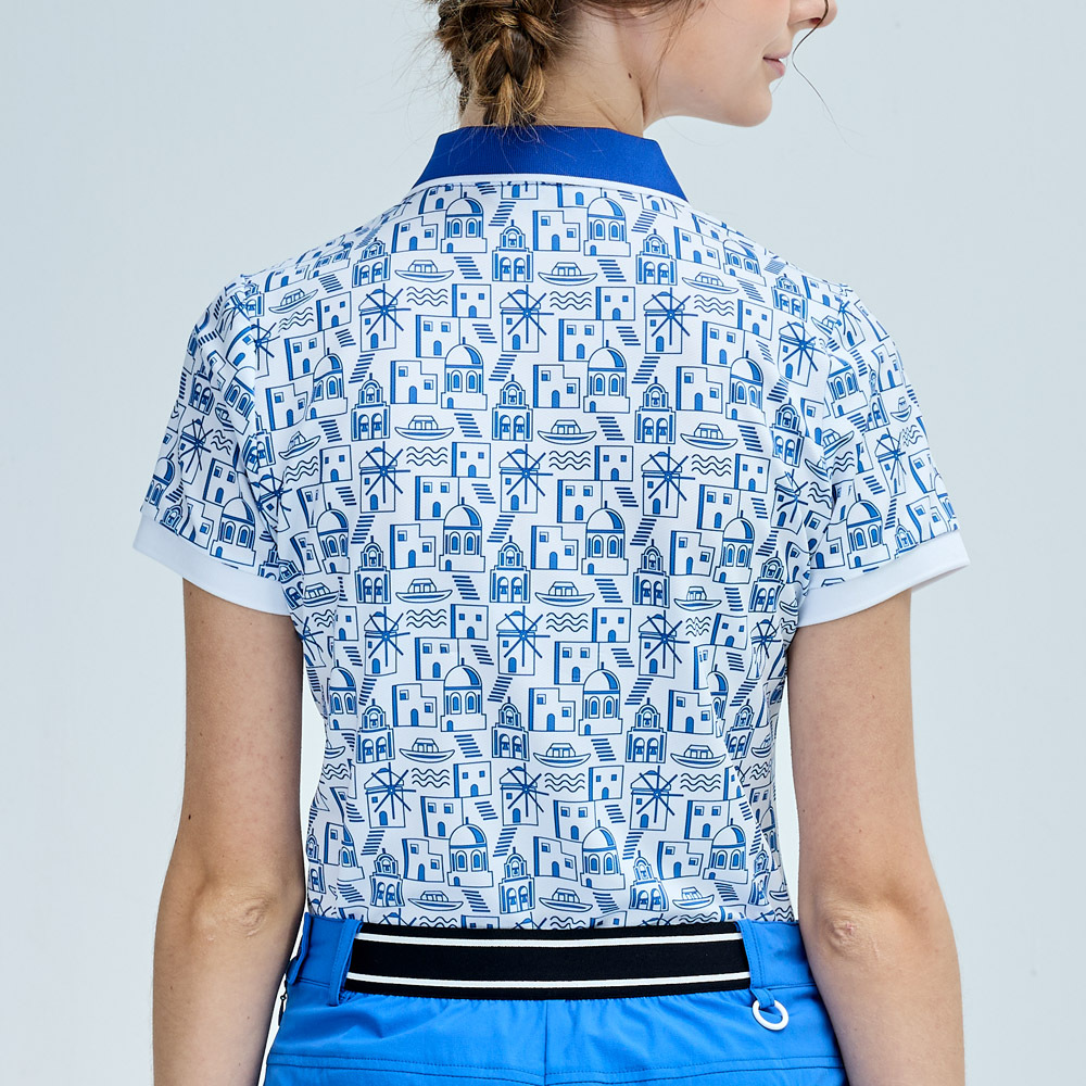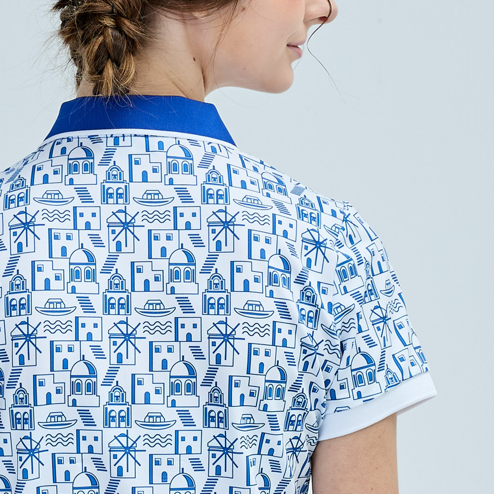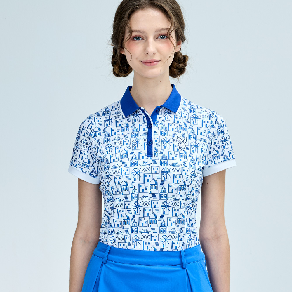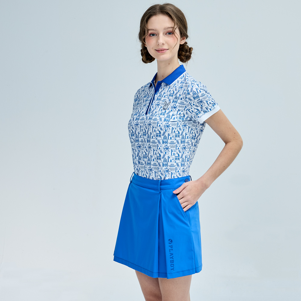 【PLAYBOY GOLF】女款地中海風抗UV短袖POLO衫-藍 / KA25111-56