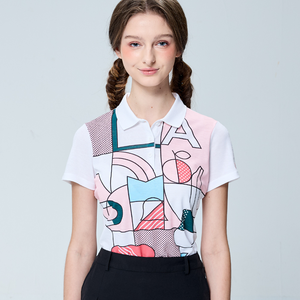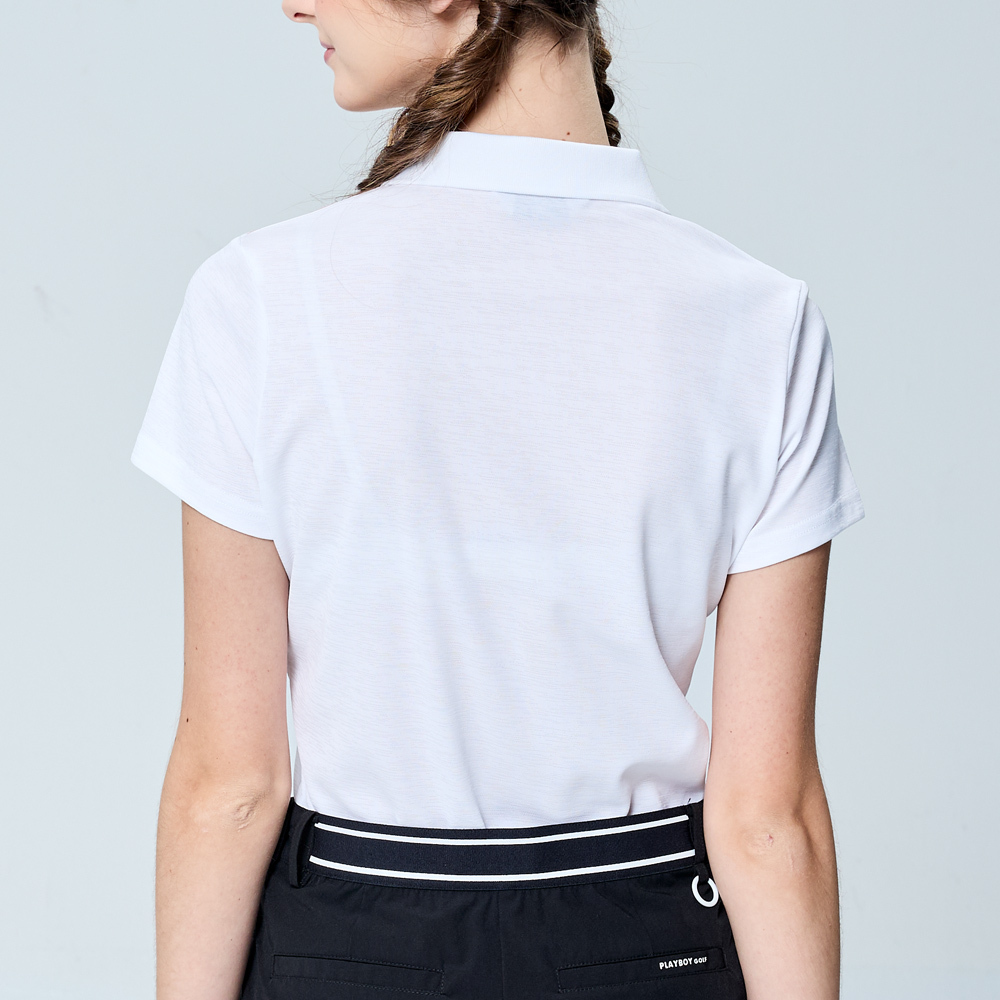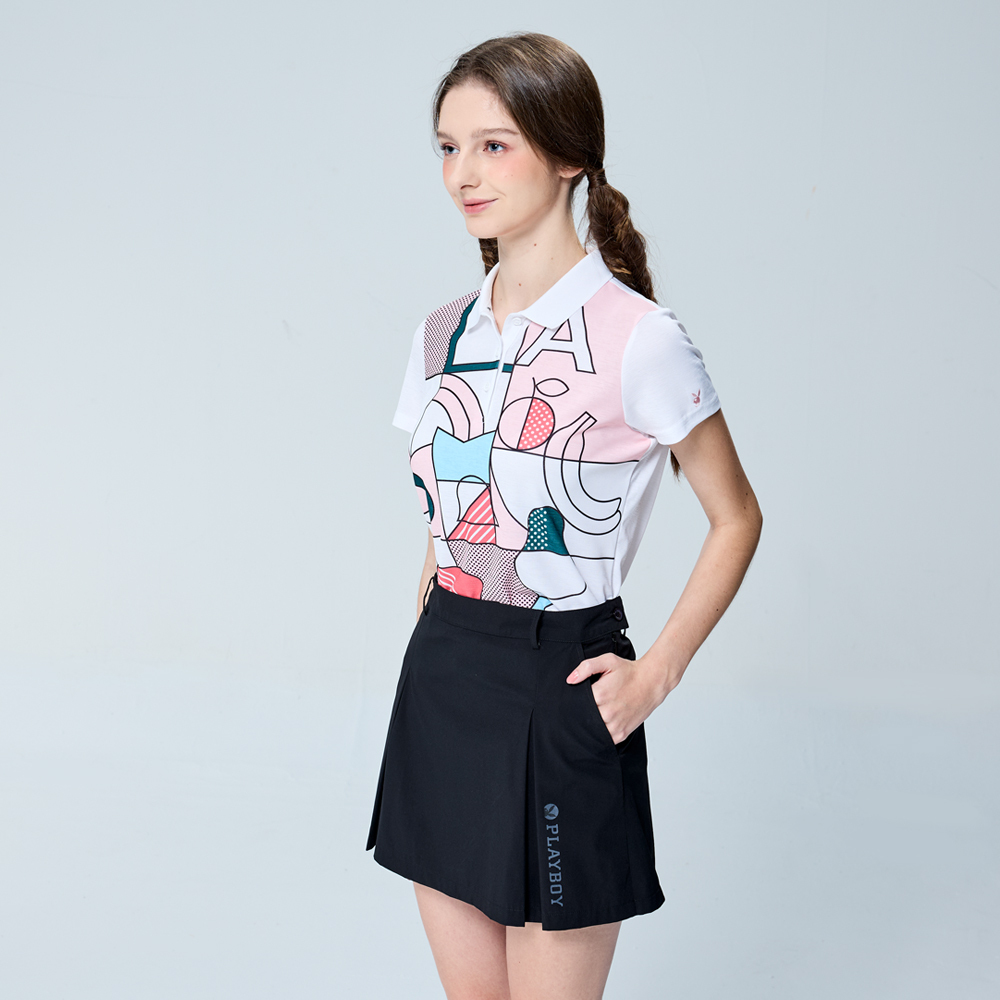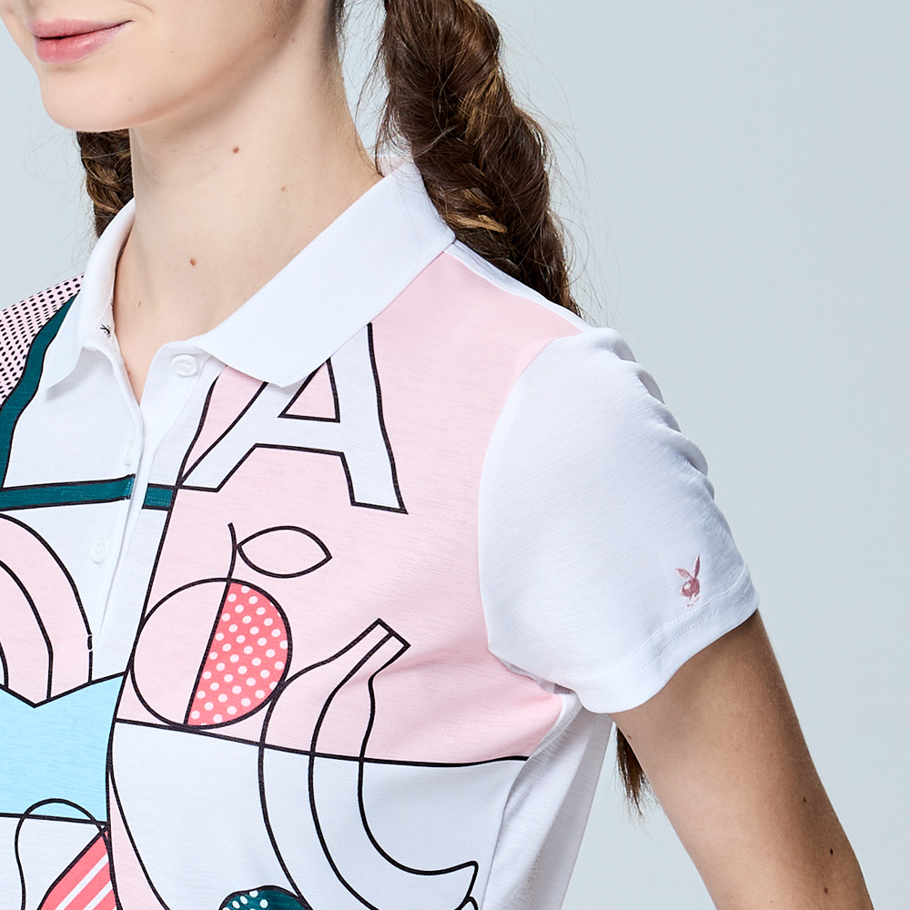 【PLAYBOY GOLF】女款畢卡索風吸濕排汗短袖POLO衫-白 / KA25115-87