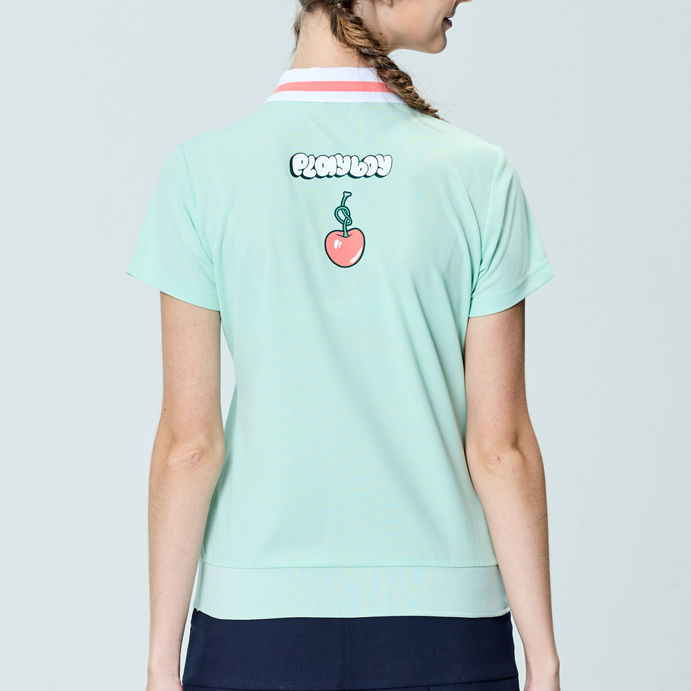 【PLAYBOY GOLF】女款後背櫻桃抗UV短袖POLO衫-綠 / KA25117-43