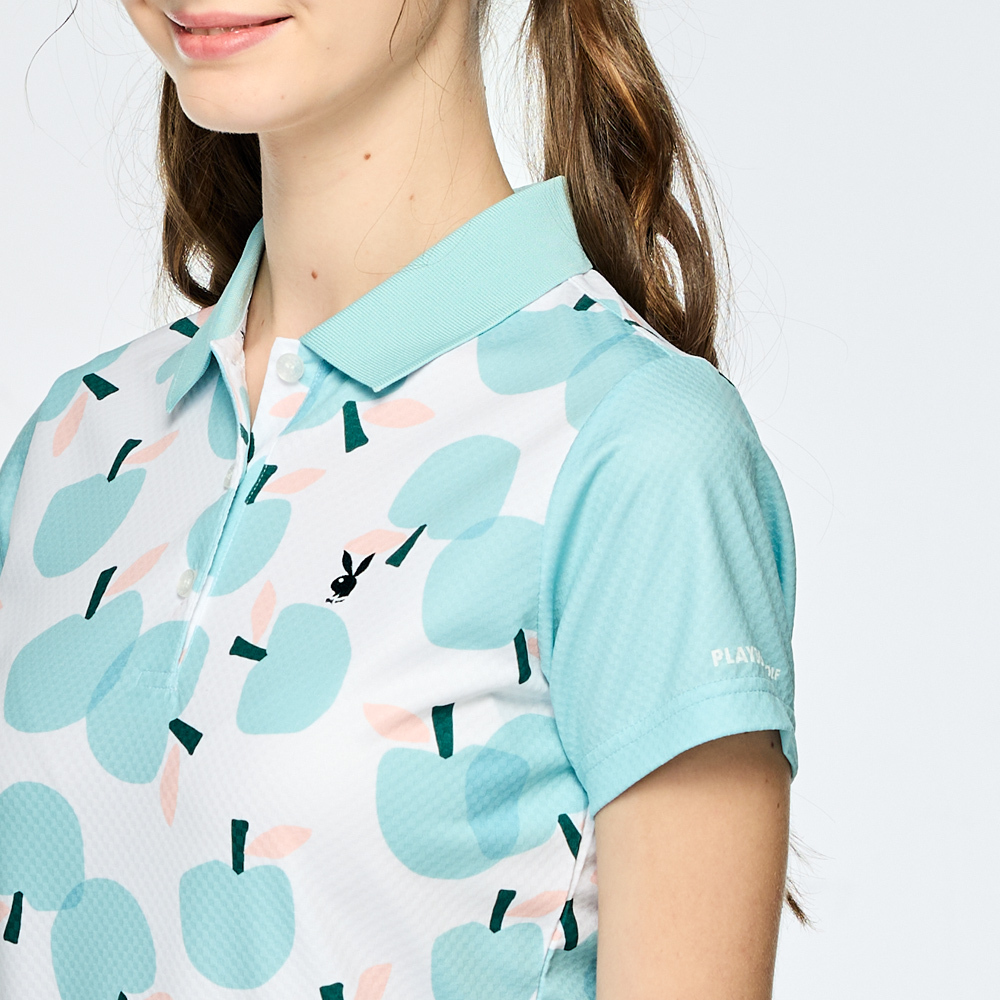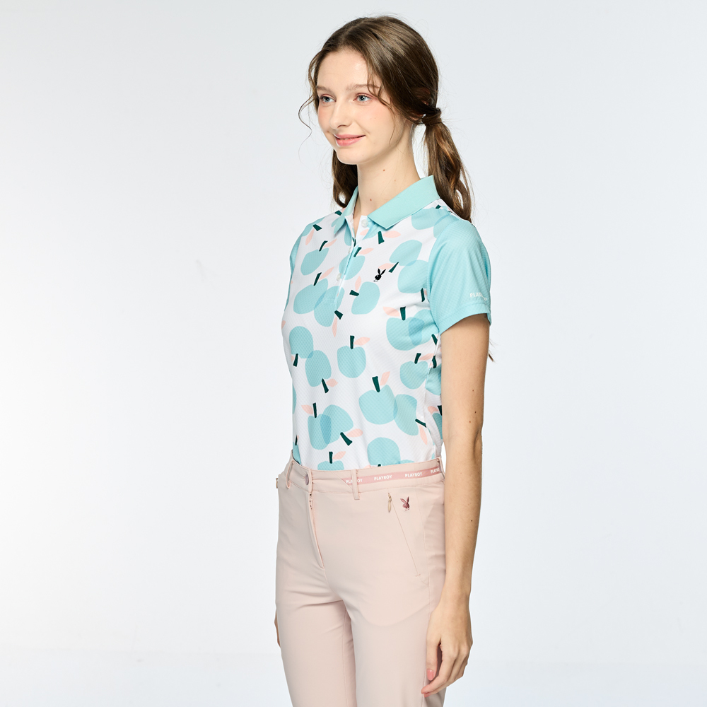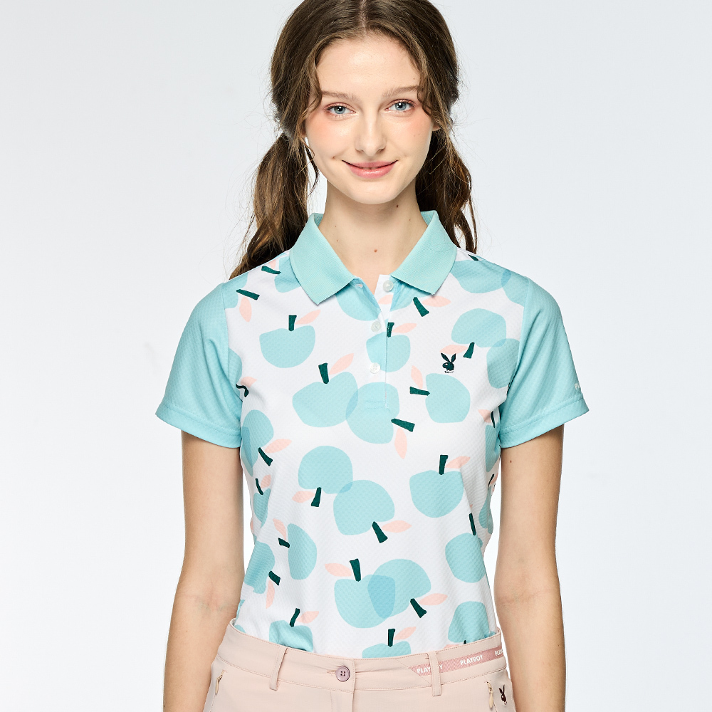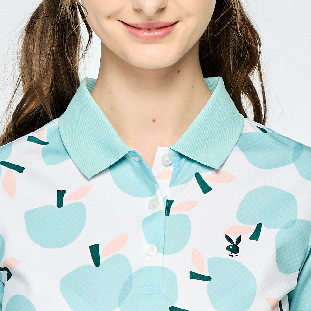 【PLAYBOY GOLF】女款蘋果印花吸濕排汗短袖POLO衫-綠 / KA25118-45