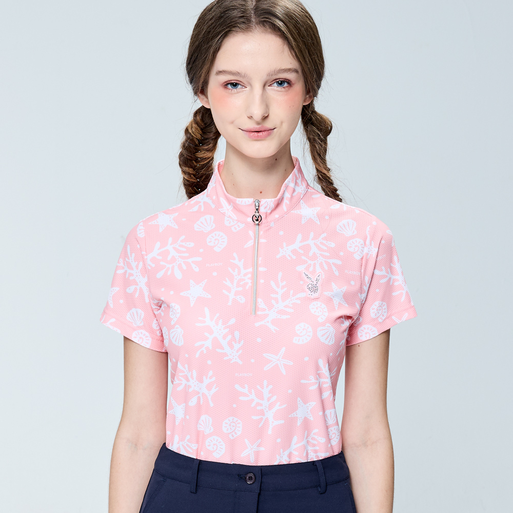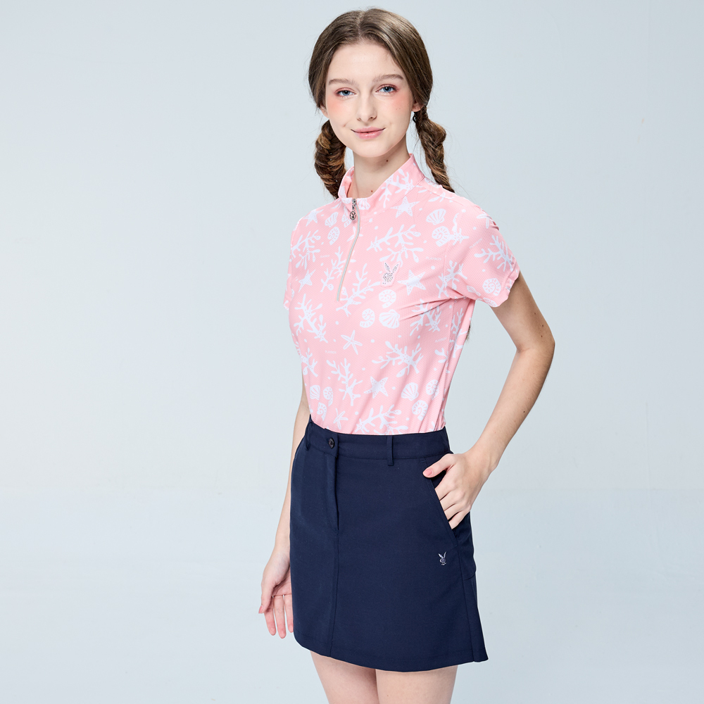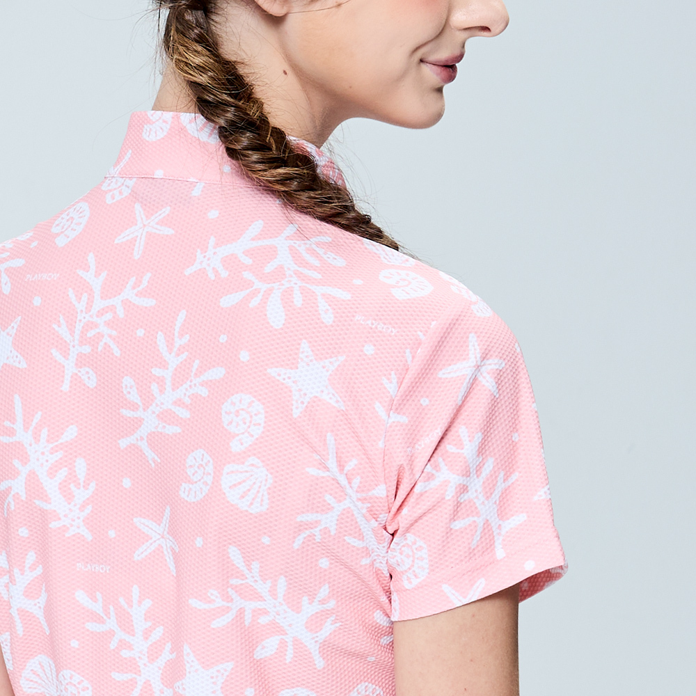 【PLAYBOY GOLF】女款貝殼印花抗UV短袖立領上衣-橘 / KA25121-25