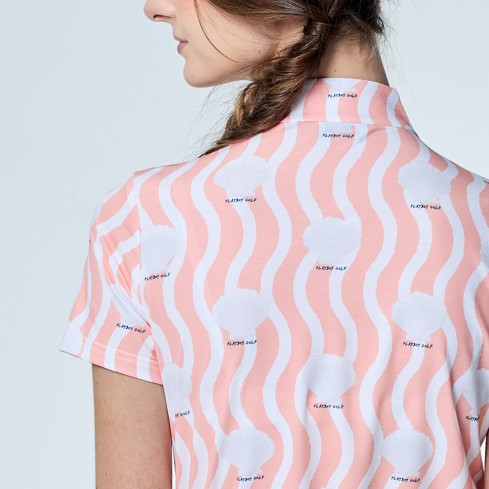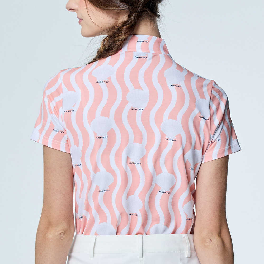 【PLAYBOY GOLF】女款貝殼印花抗UV立領上衣-粉橘 / KA25125-23