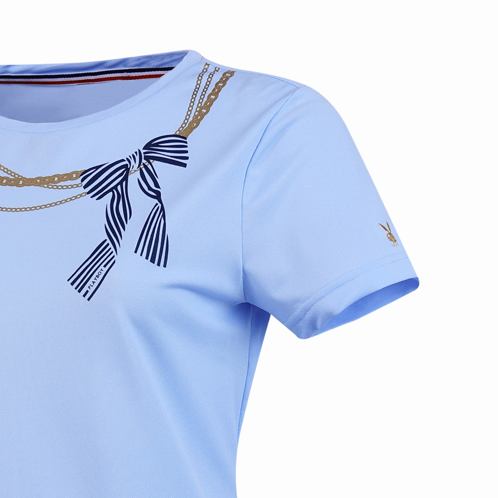【PLAYBOY GOLF】女款蝴蝶結抗UV短袖圓領T恤-藍 / KA25131-55