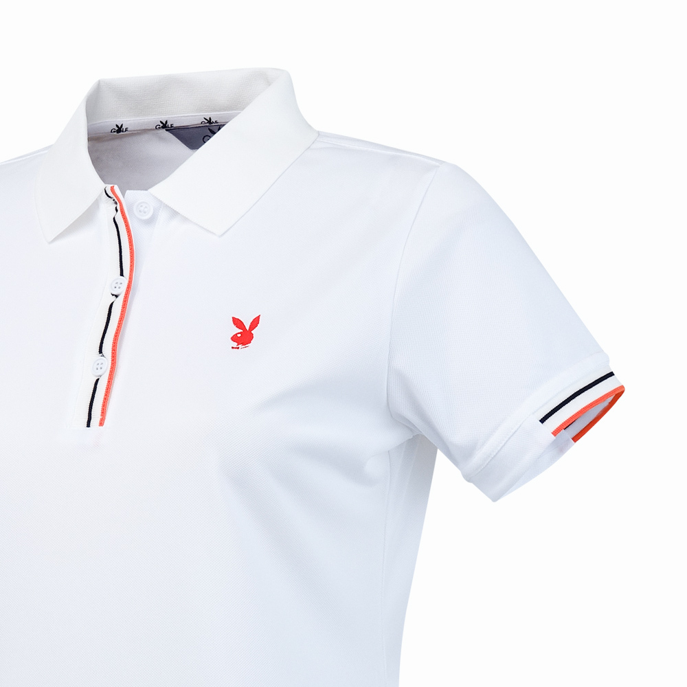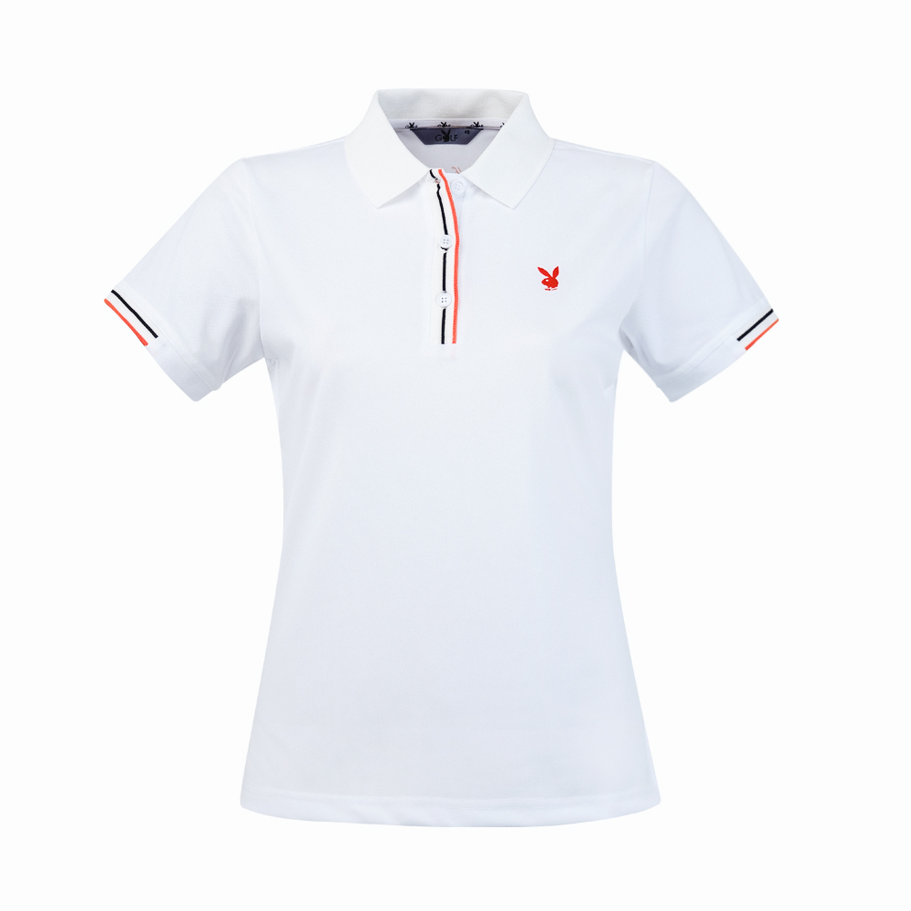 【PLAYBOY GOLF】女款網眼吸濕排汗抗UV高爾夫短袖POLO衫-白 / KA25190-87