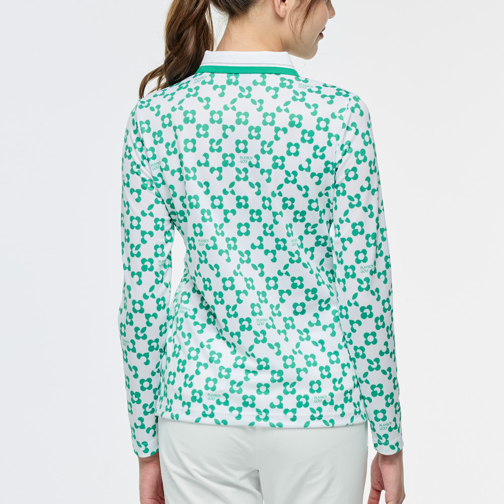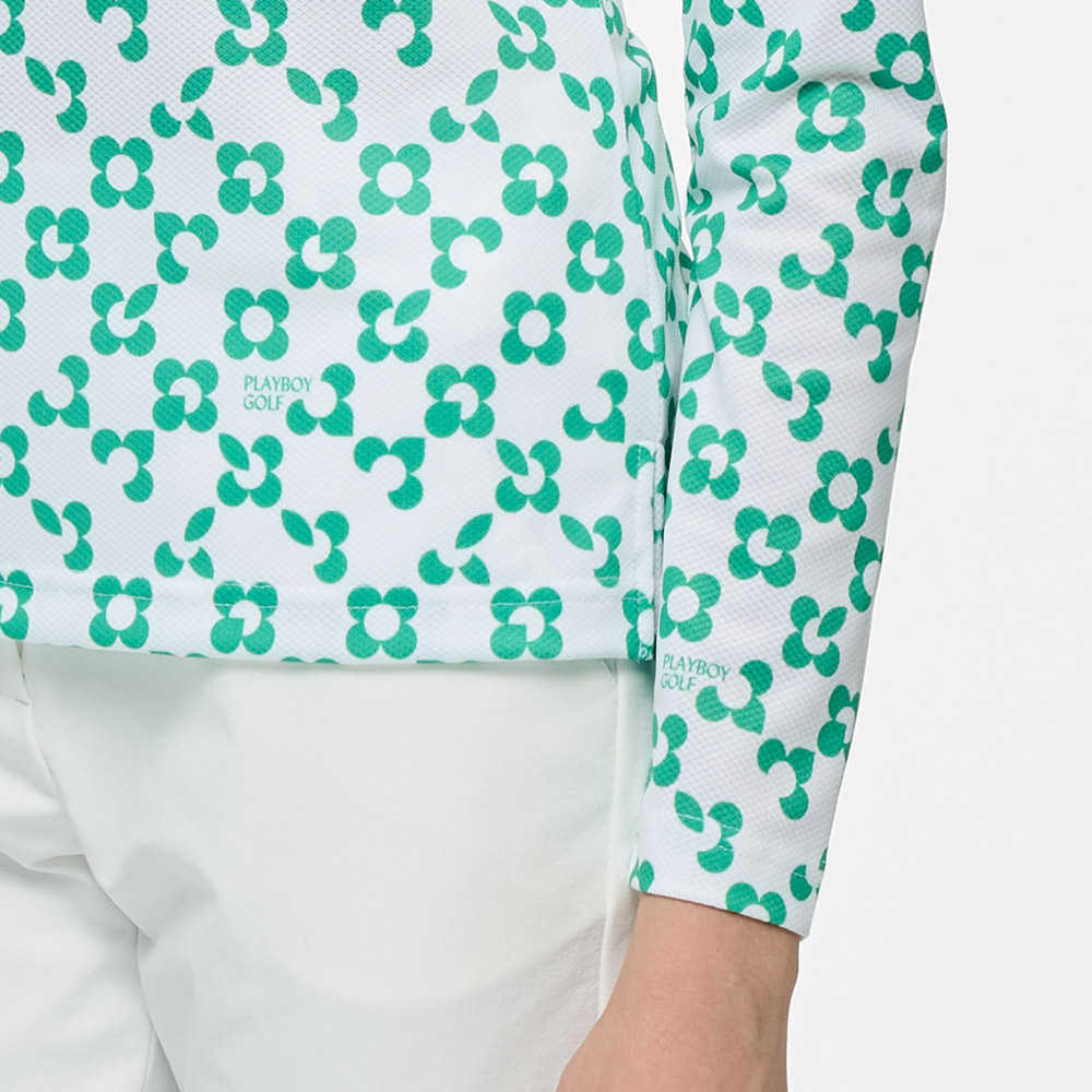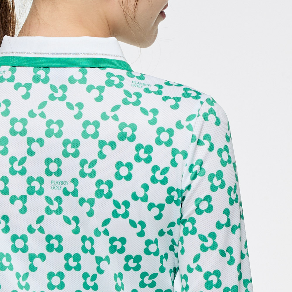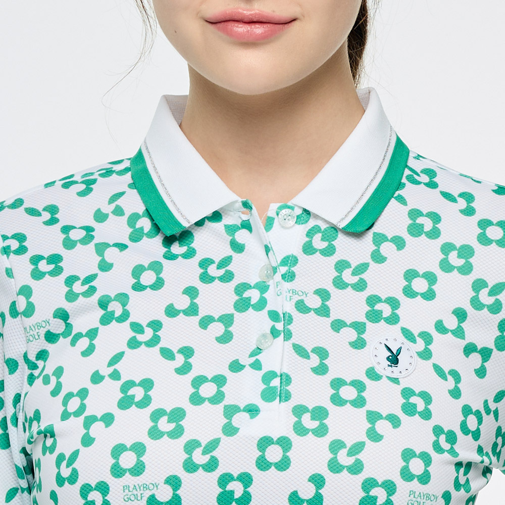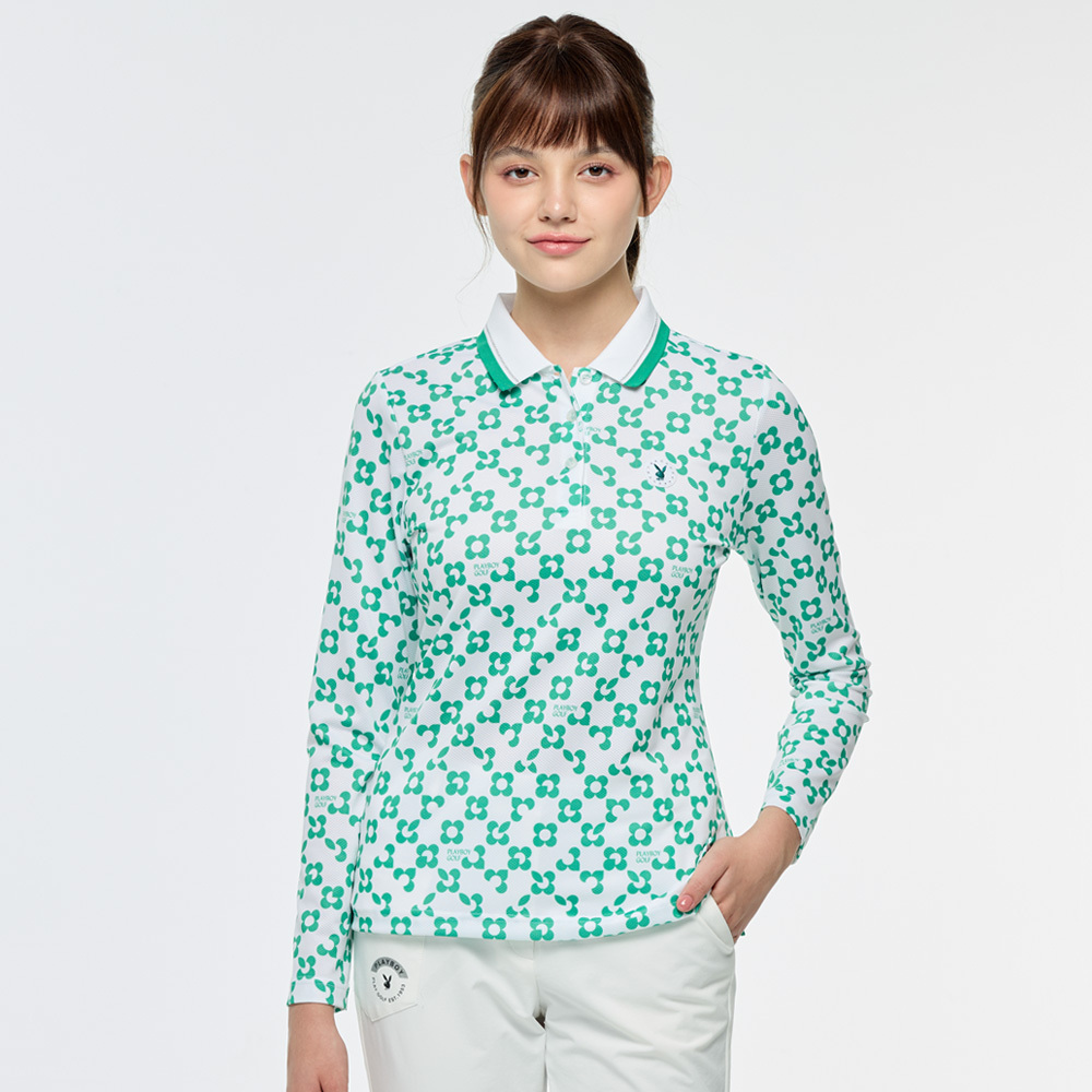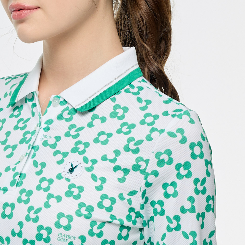 【PLAYBOY GOLF】女款小花吸濕排汗薄長袖POLO衫-綠 / KA25201-45
