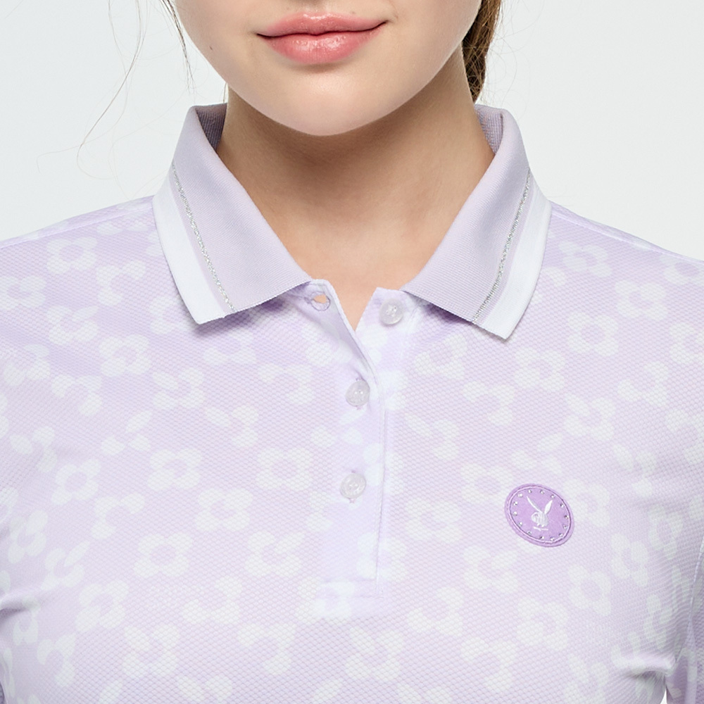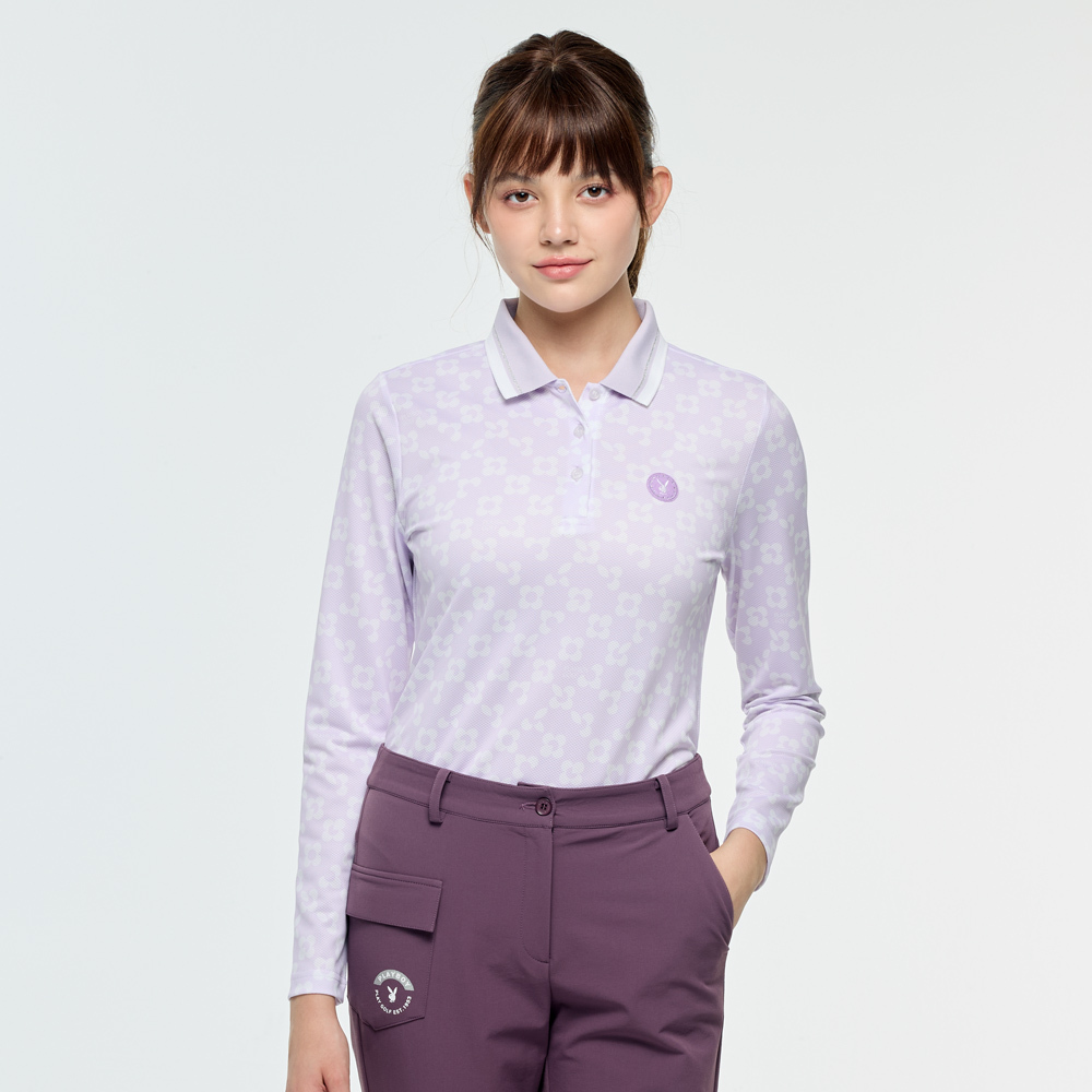 【PLAYBOY GOLF】女款小花吸濕排汗薄長袖POLO衫-紫 / KA25201-65