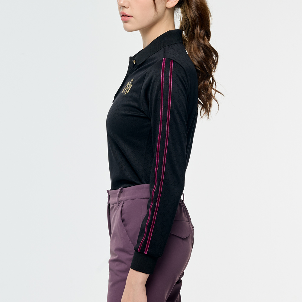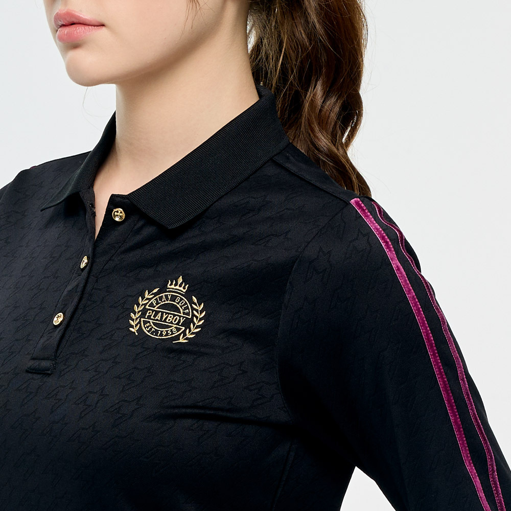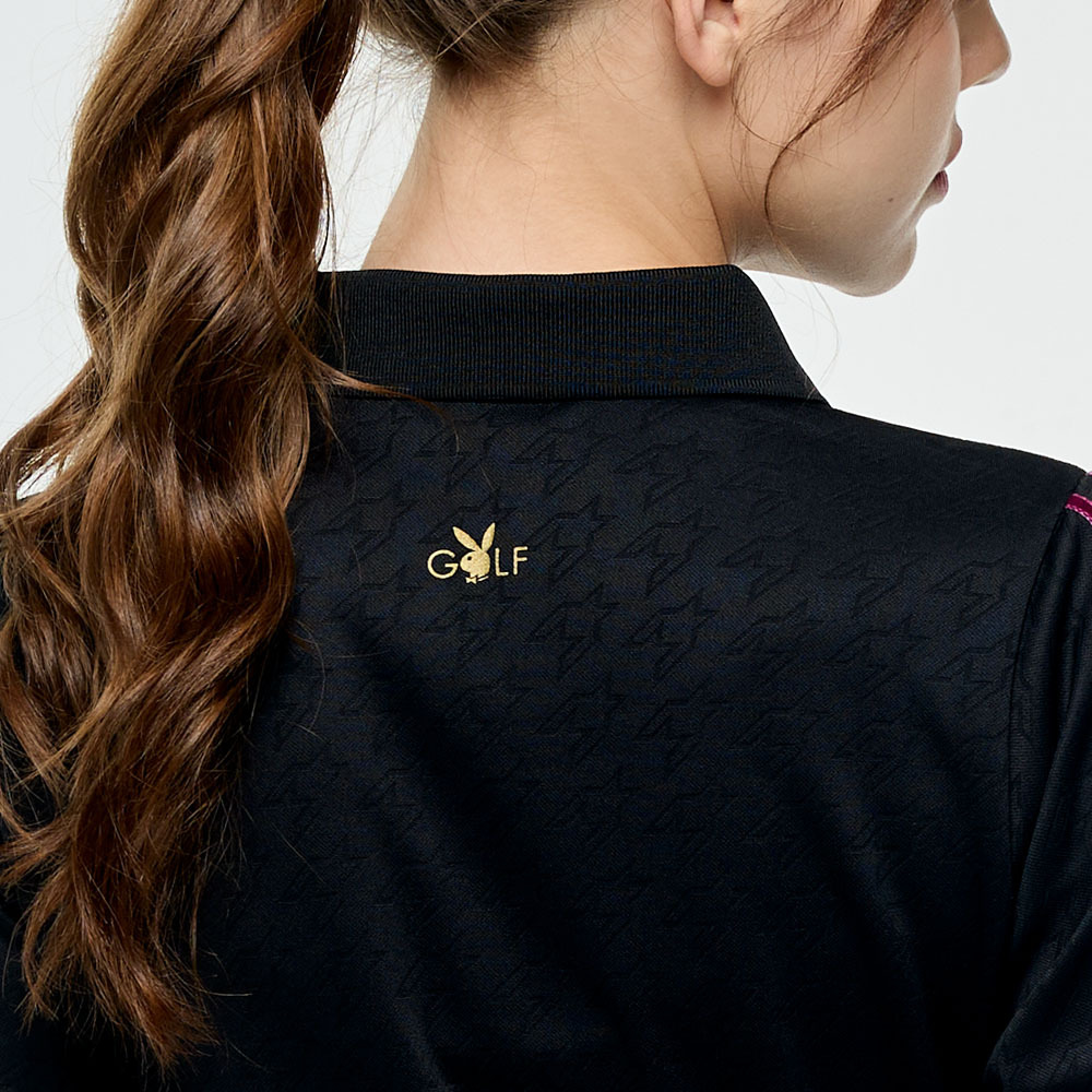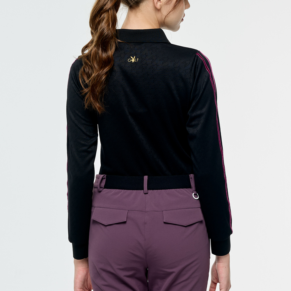 【PLAYBOY GOLF】女款千鳥格高爾夫長袖POLO衫-黑 / KA25203-88