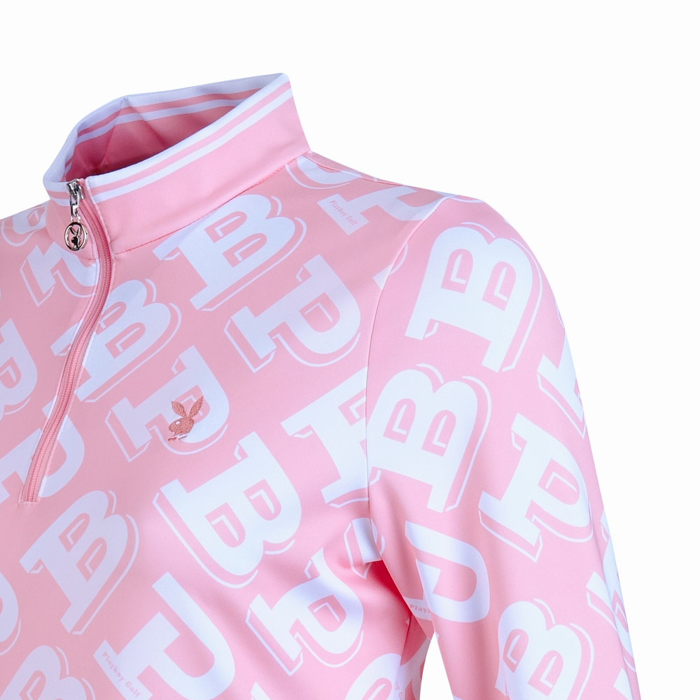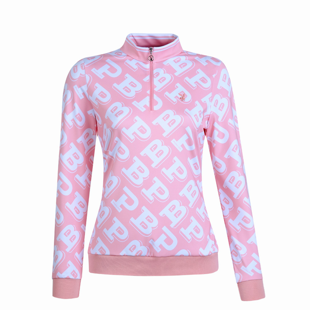 【PLAYBOY GOLF】女款PB字吸濕排汗薄長袖立領上衣-粉 / KA25226-15