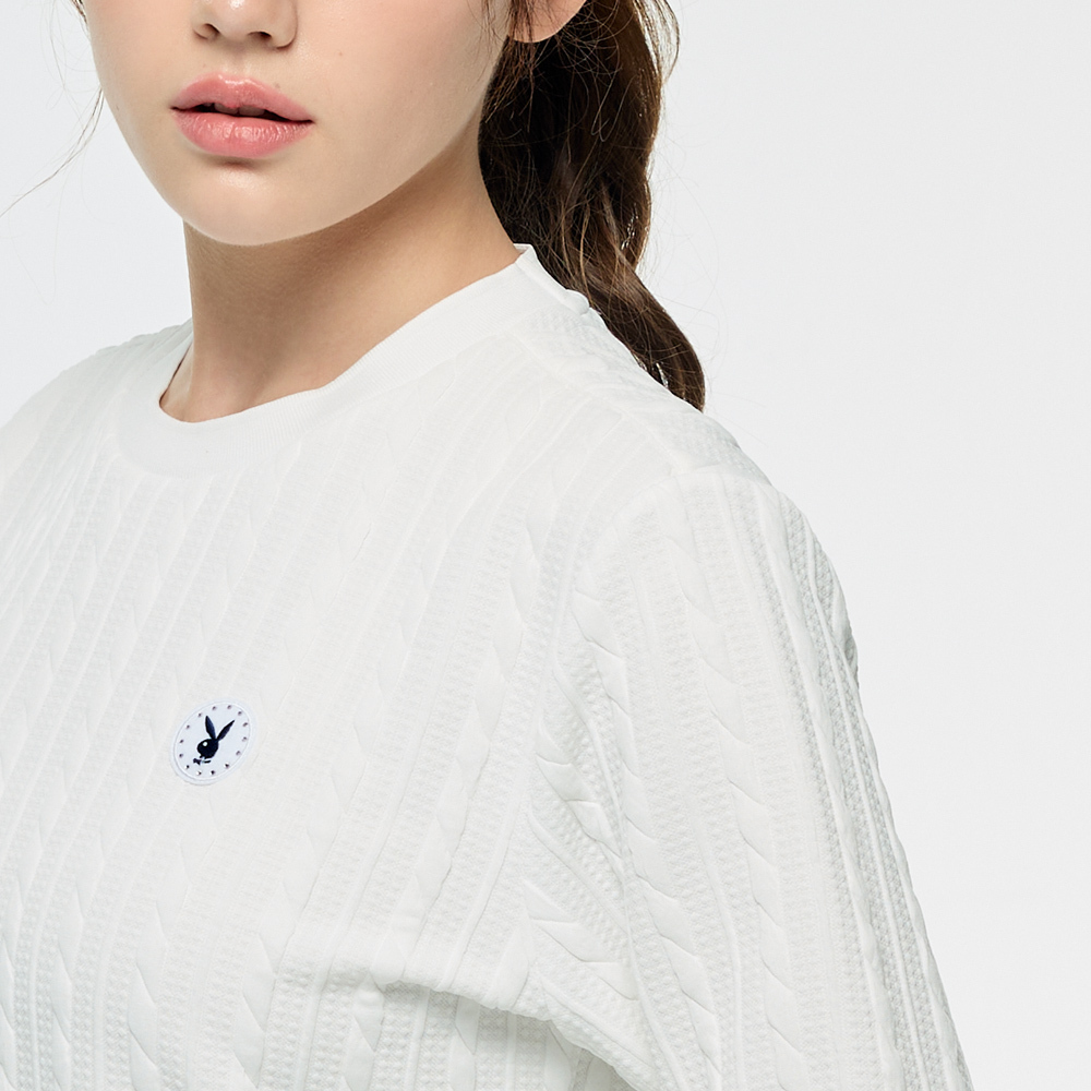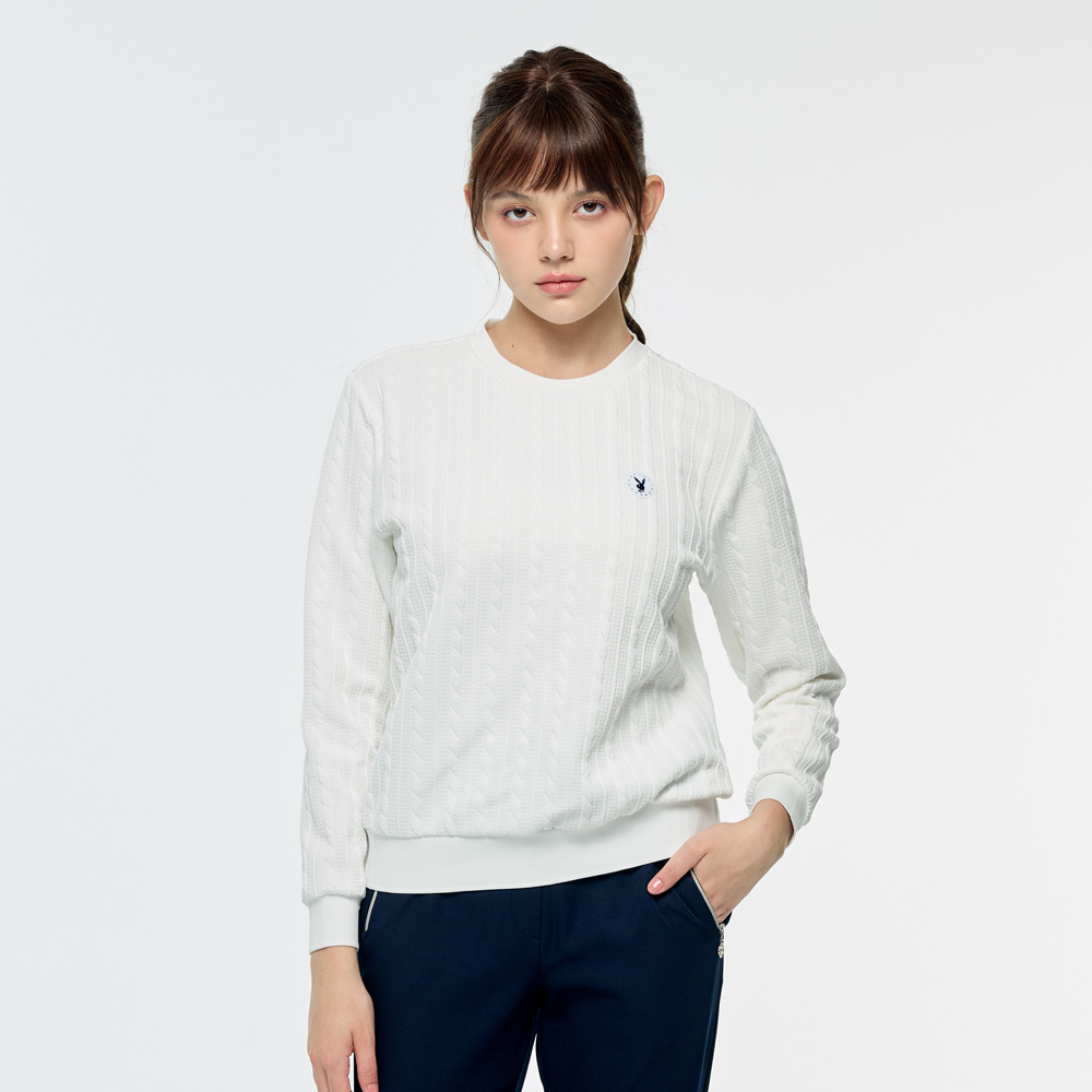 【PLAYBOY GOLF】女款立體夾棉高爾夫長袖圓領上衣-白 / KA25231-87