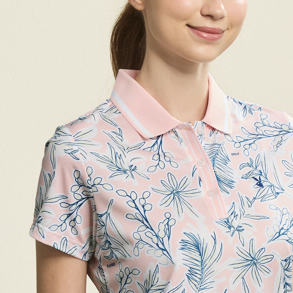 【PLAYBOY GOLF】女款橄欖葉吸濕排汗短袖POLO衫-粉橘 / KA26103-23