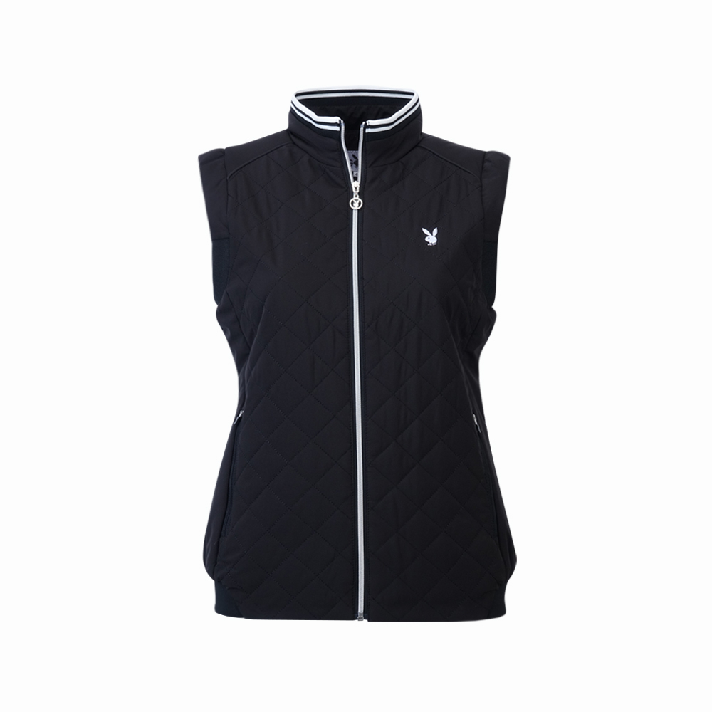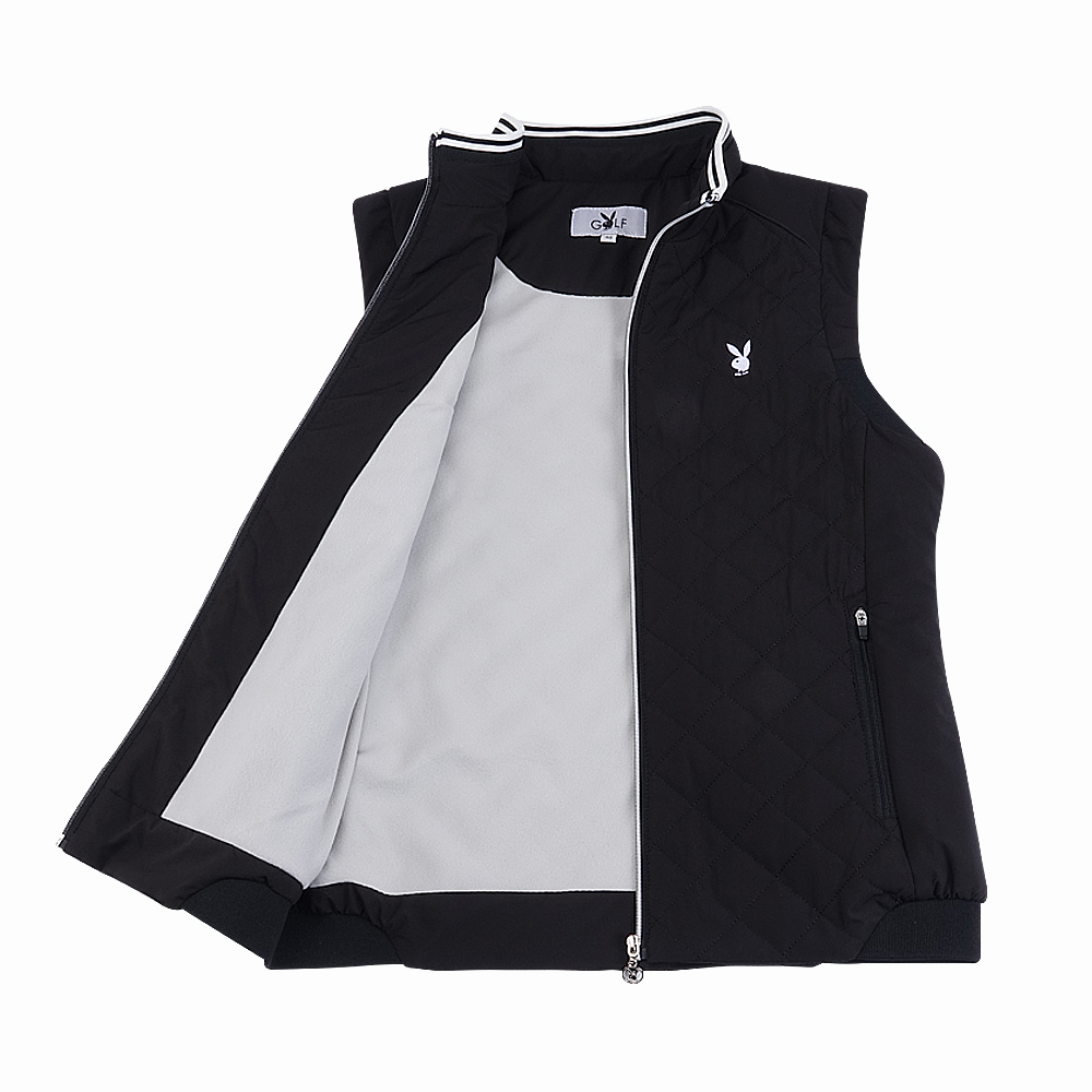 【PLAYBOY GOLF】女款防風透氣防潑水鋪棉立領背心-黑 / KB24211-88