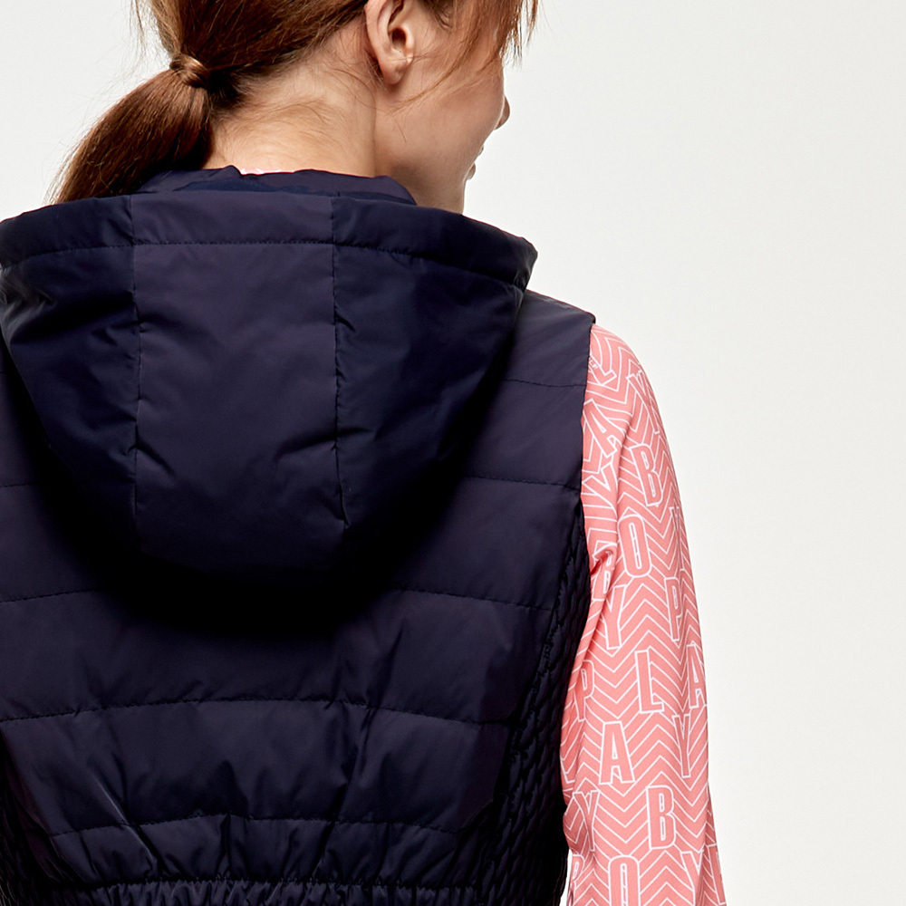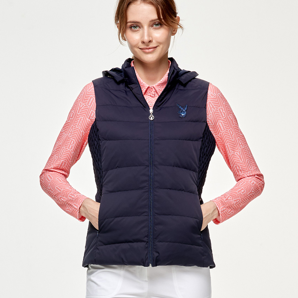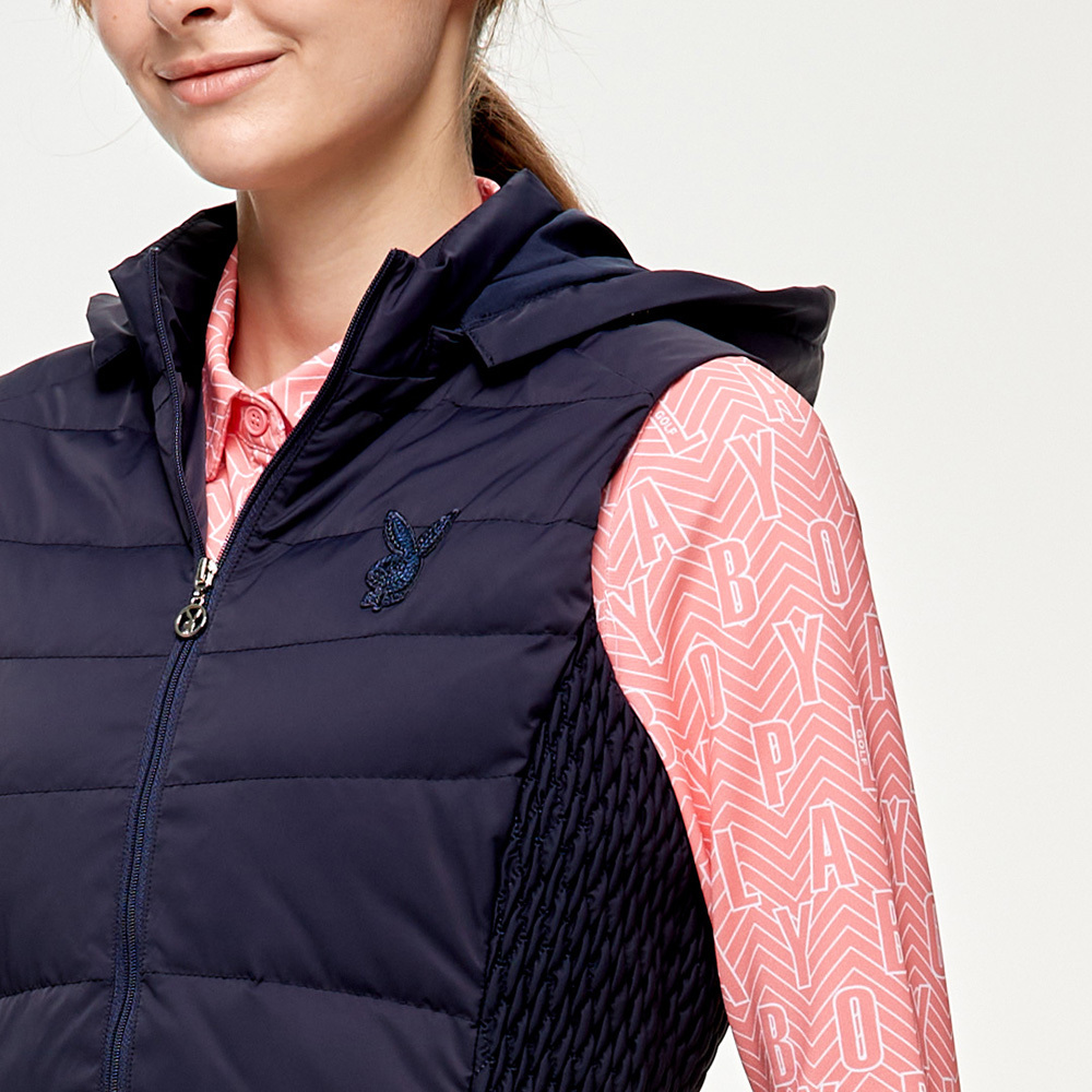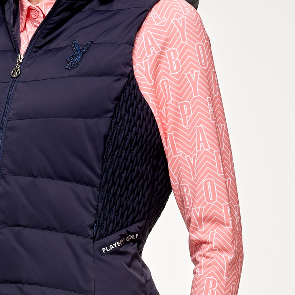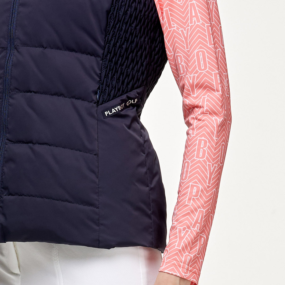 【PLAYBOY GOLF】女款側編織後收腰羽絨背心-深藍 / KB24220-58