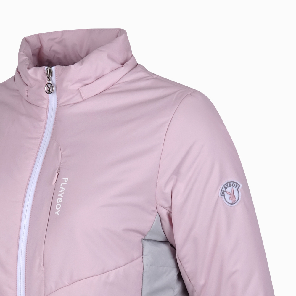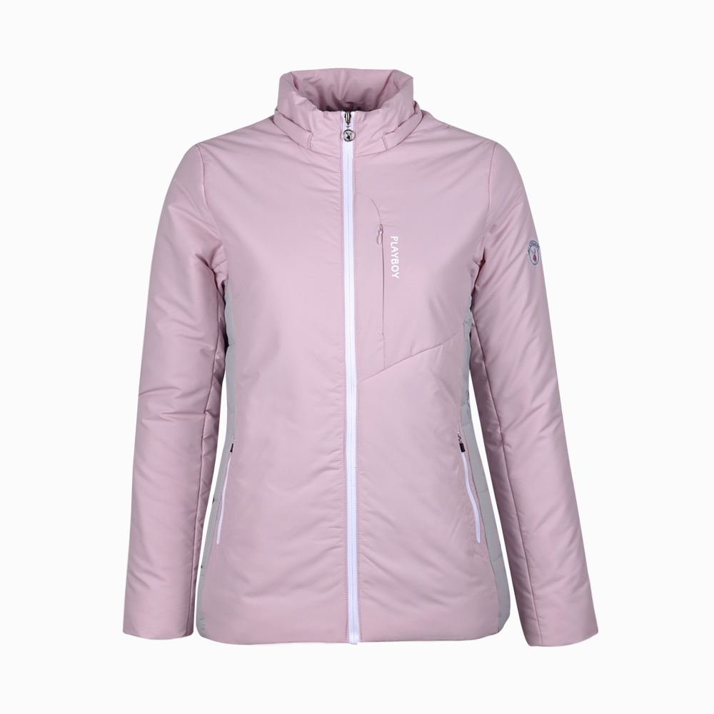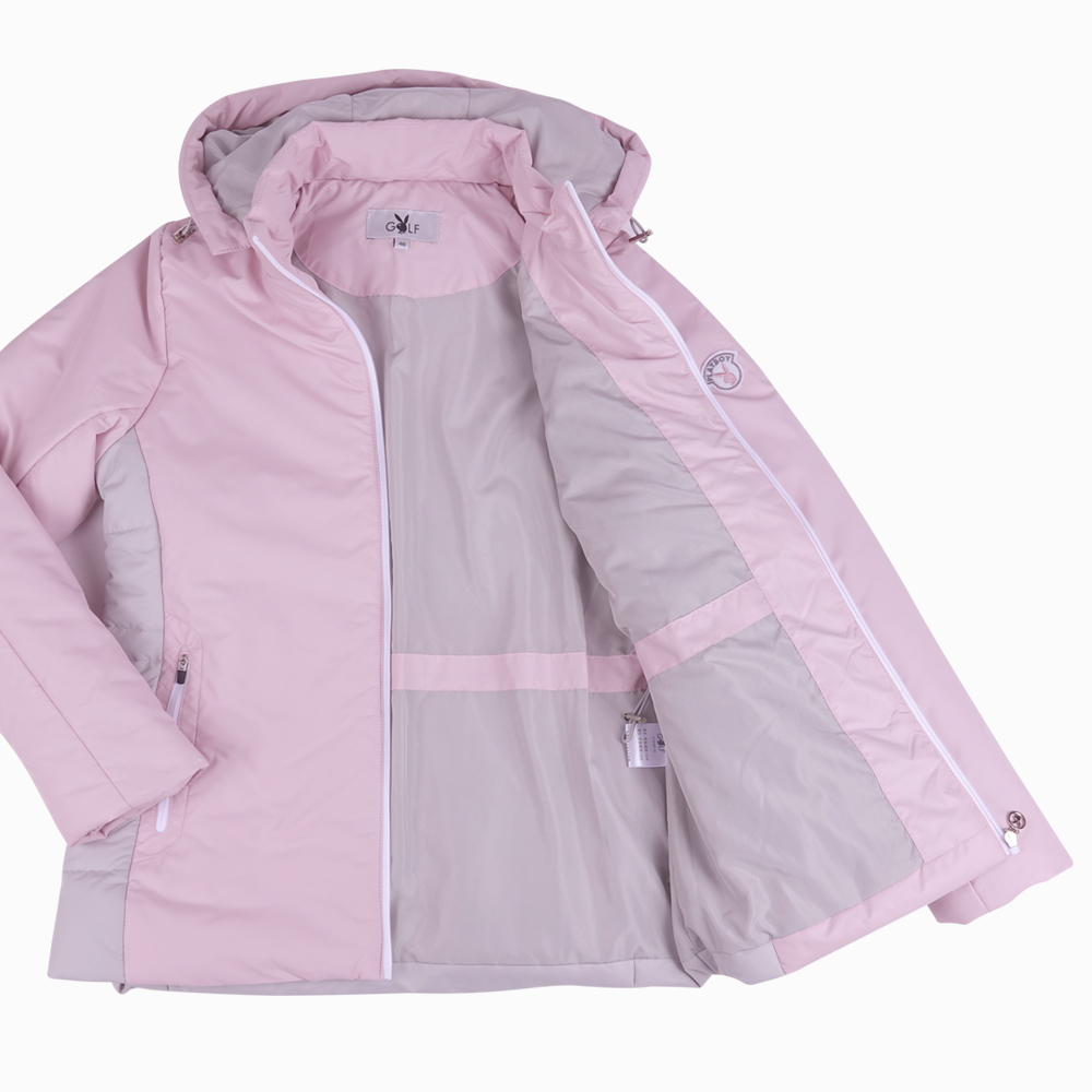 【PLAYBOY GOLF】女款配色休閒附帽舖棉外套-粉紅 / KC23212-13