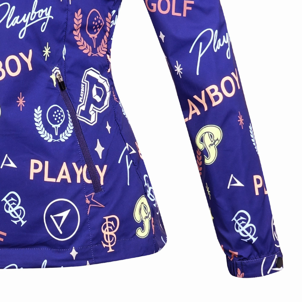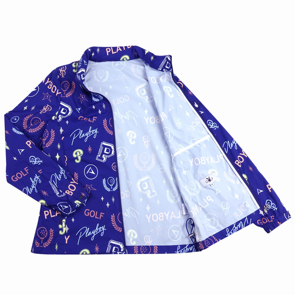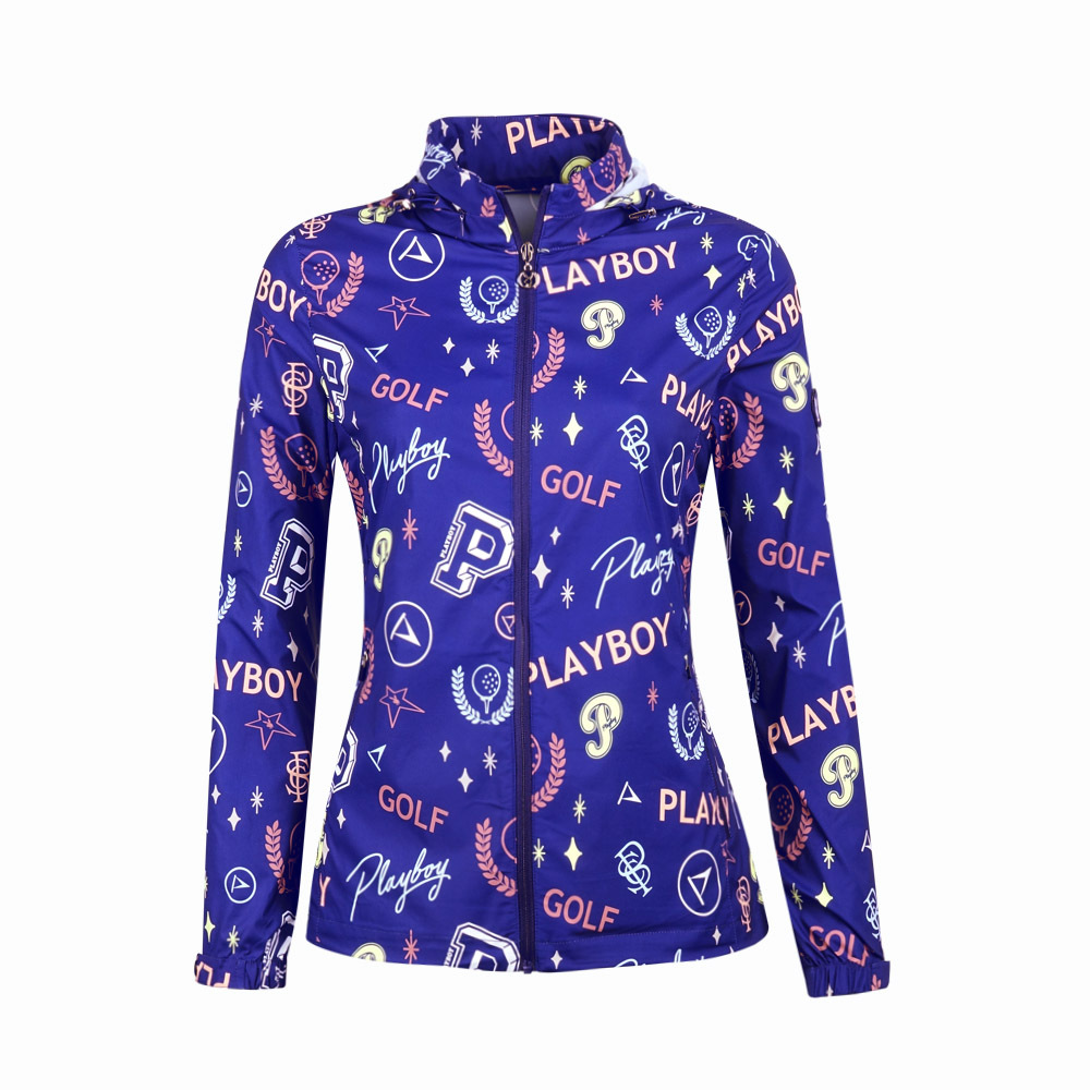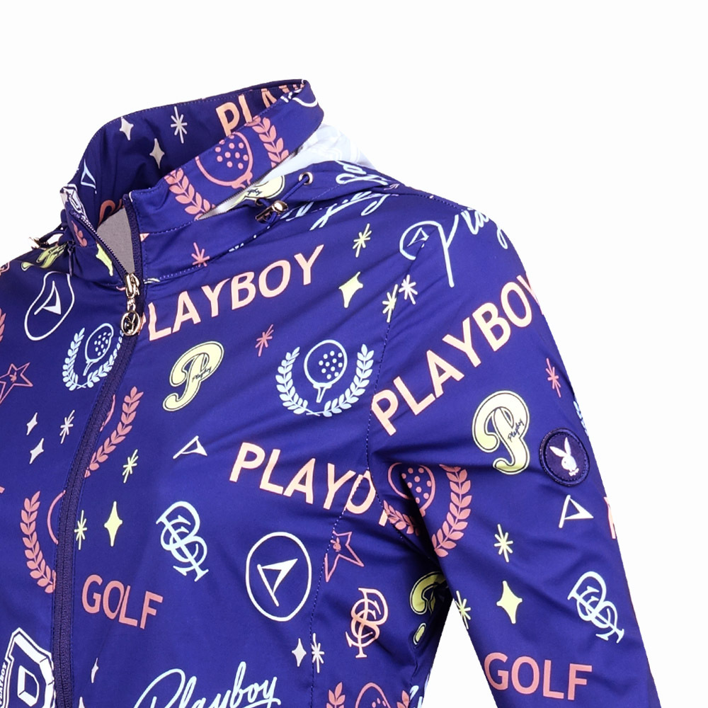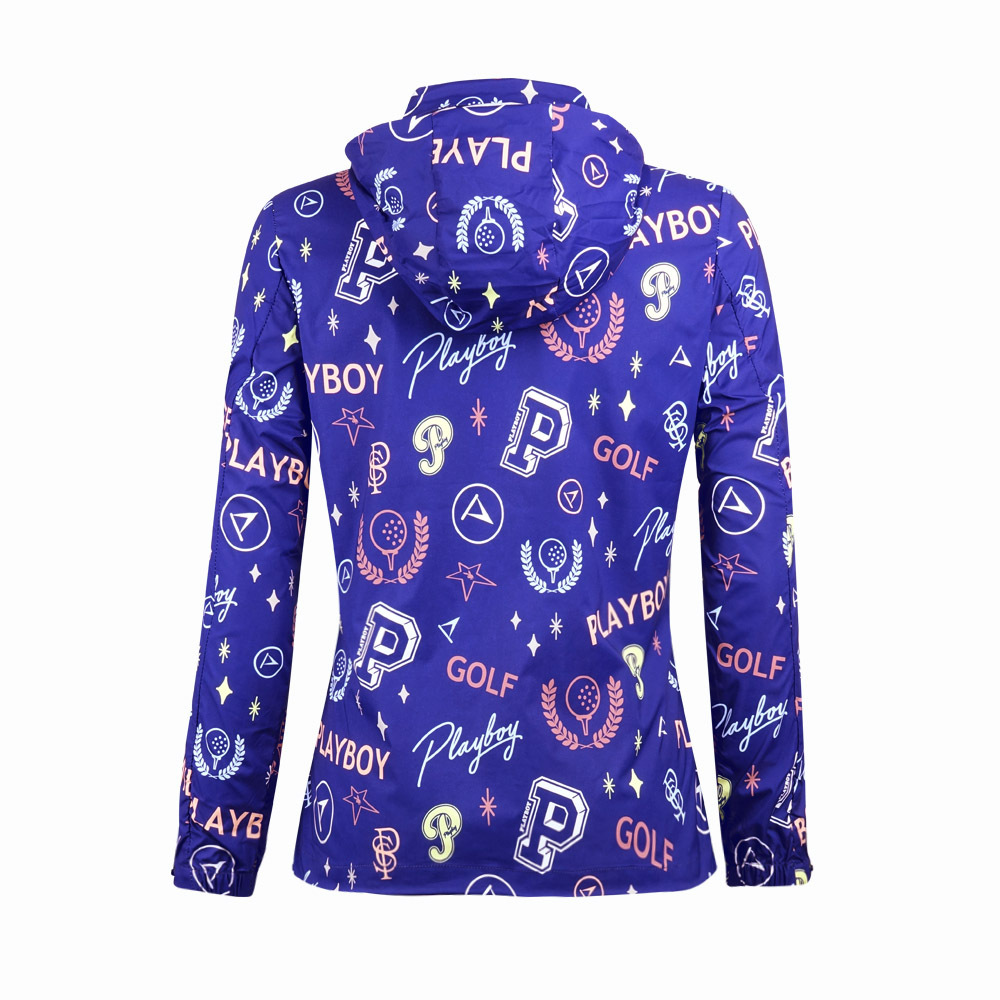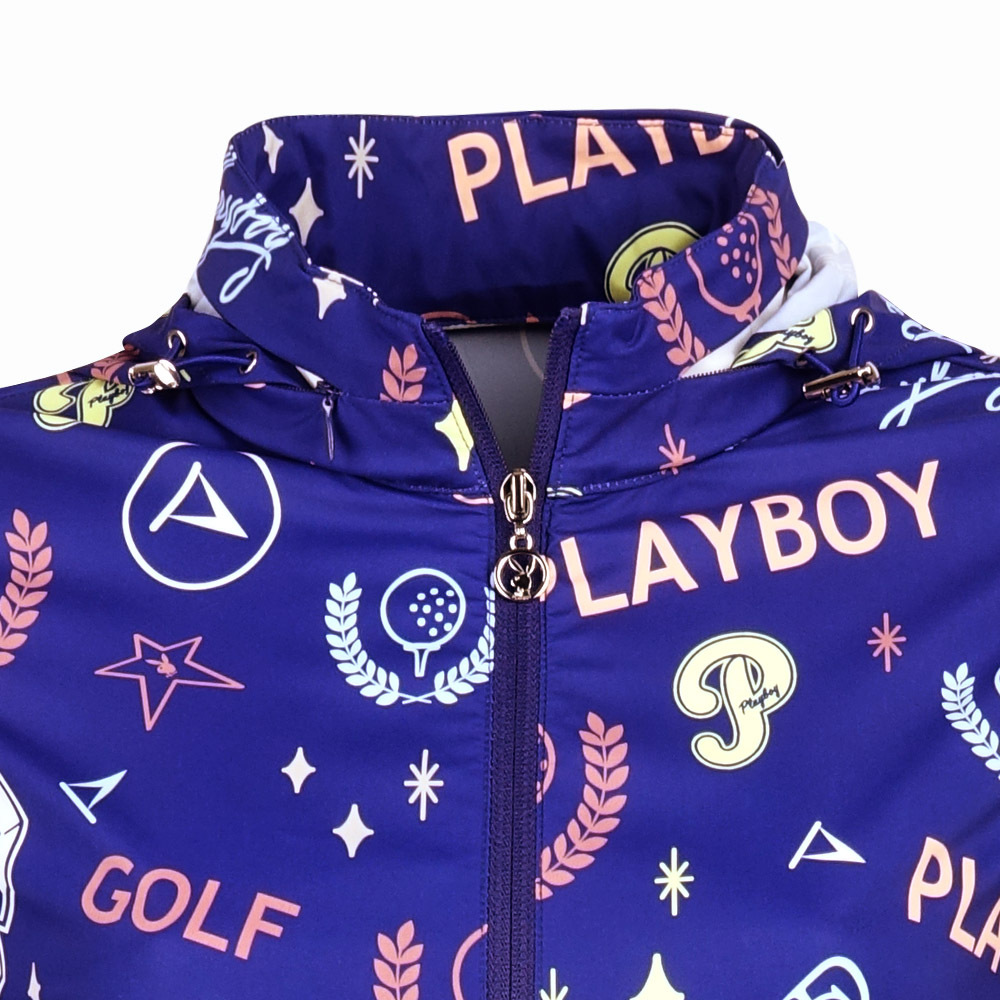【PLAYBOY GOLF】女款可收納連帽彩色塗鴉外套-藍 / KC24103-56
