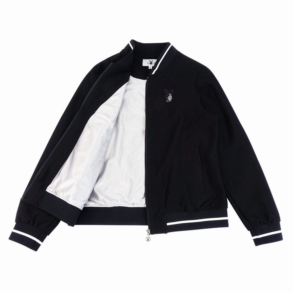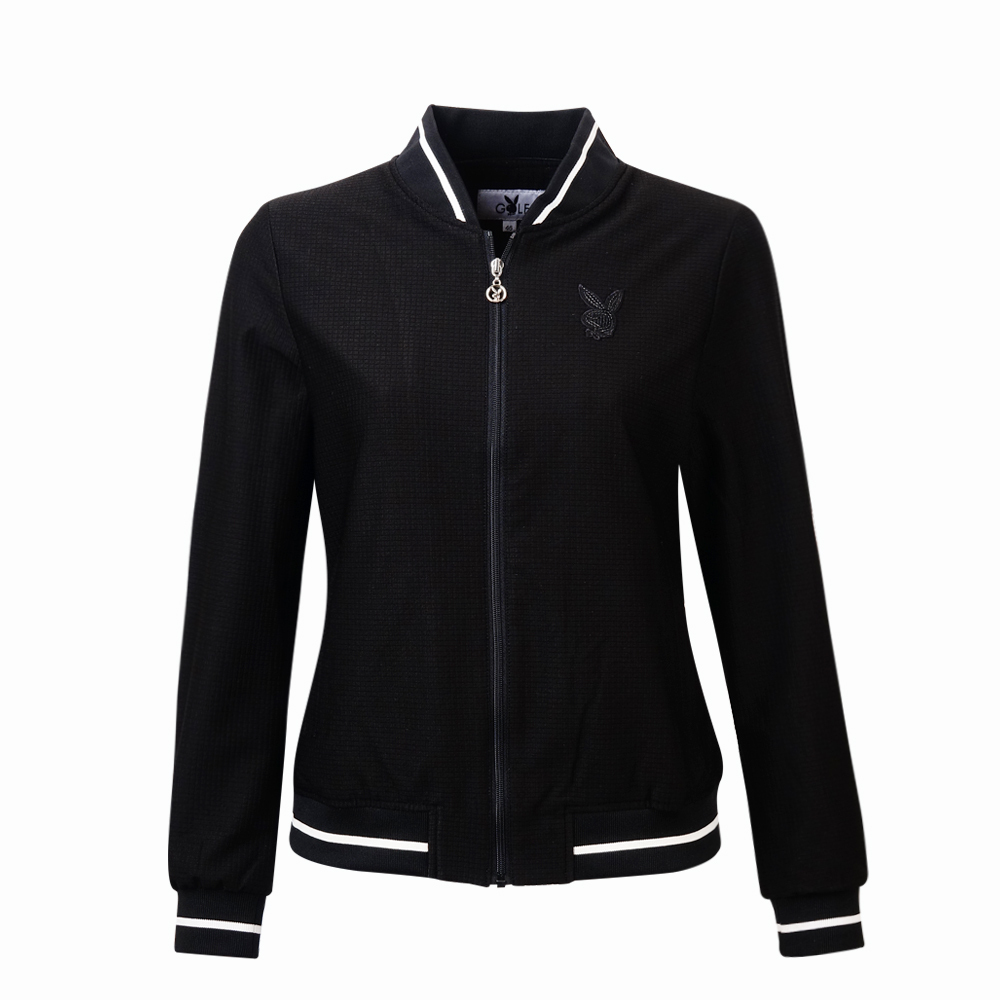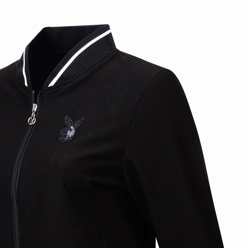 【PLAYBOY GOLF】女款小方格休閒薄外套-黑 / KC24212-88