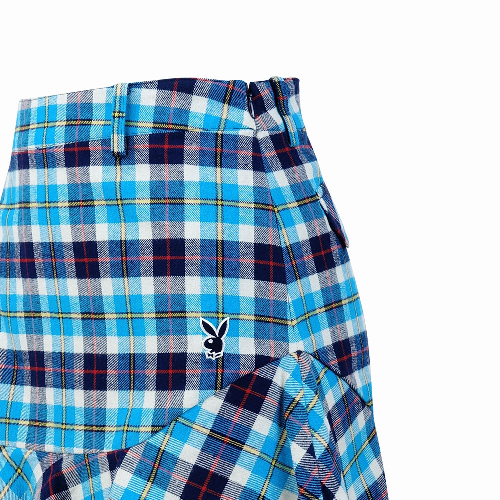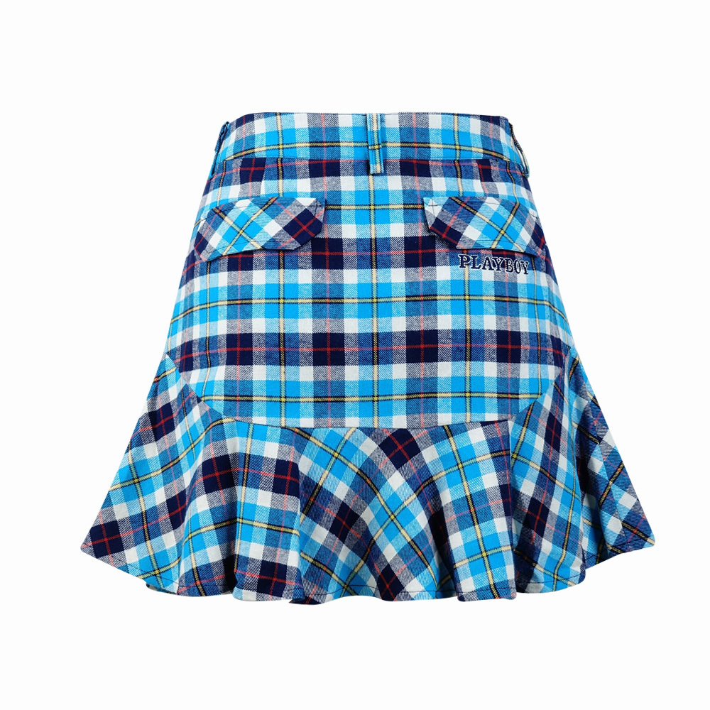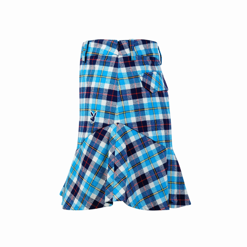 【PLAYBOY GOLF】女款純棉格紋魚尾高爾夫短裙-藍 / KD15203-53