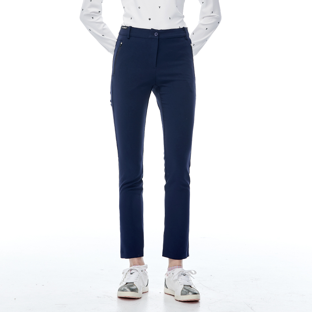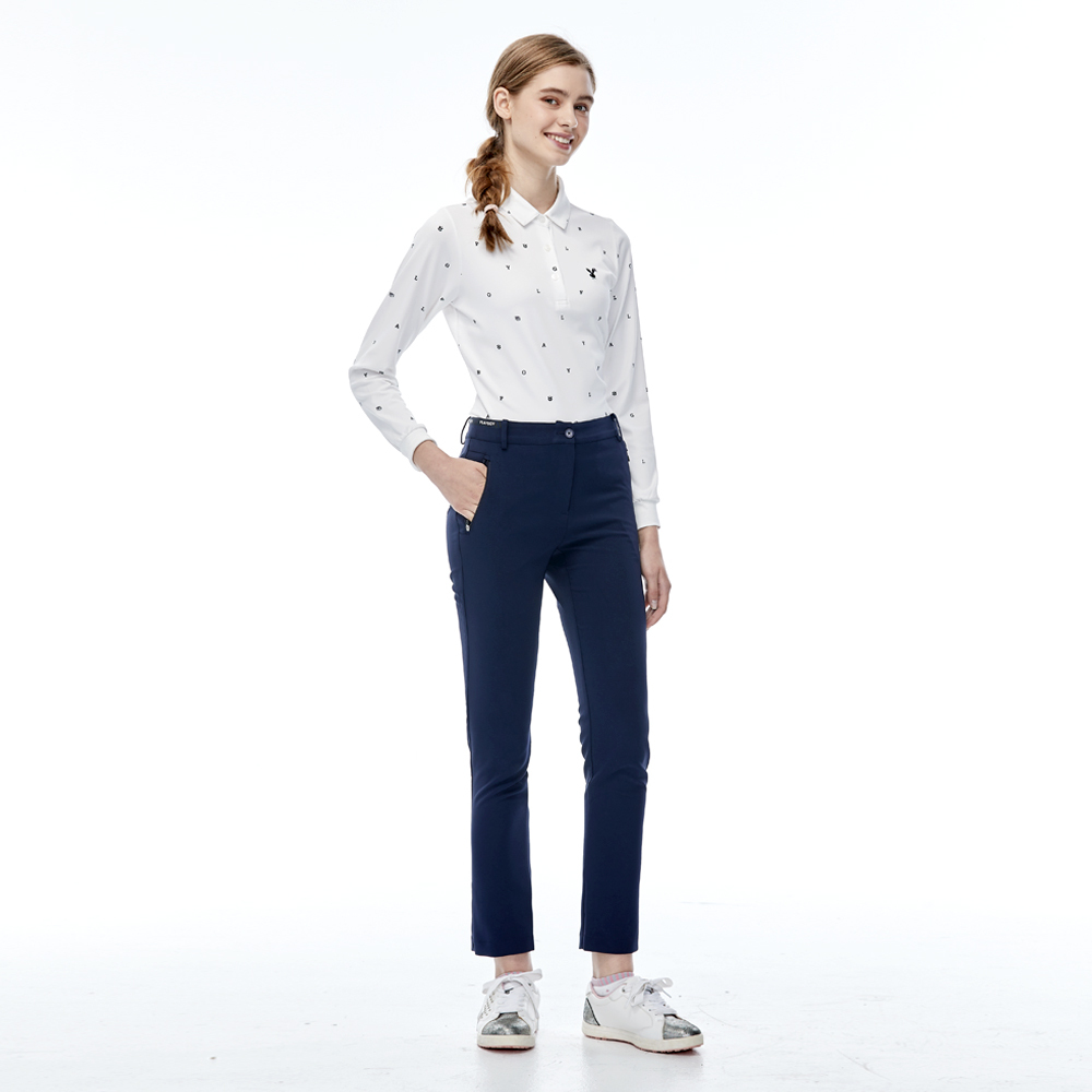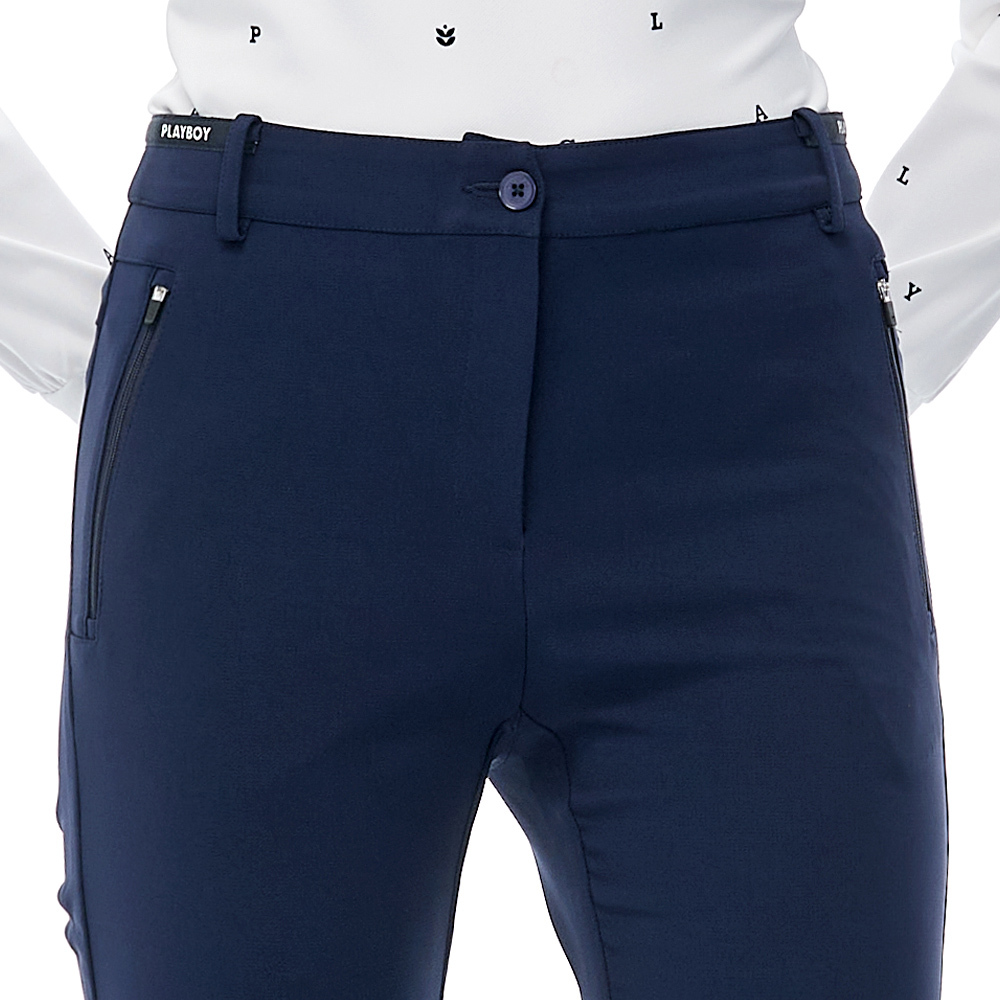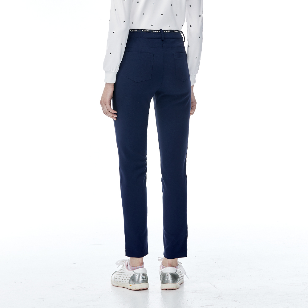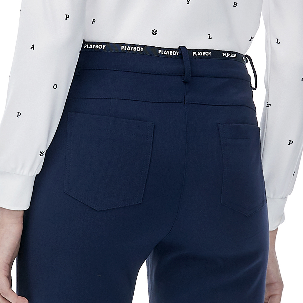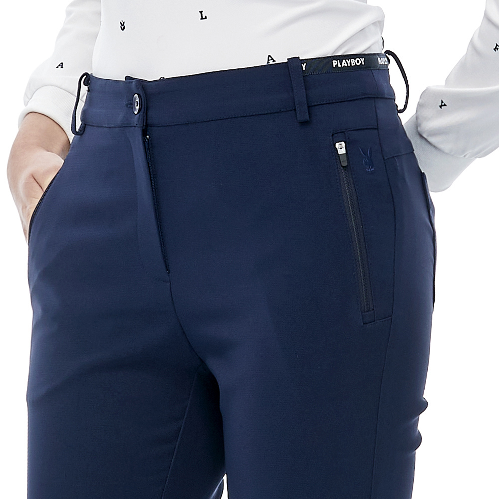 【PLAYBOY GOLF】女款LOGO腰頭緞帶高彈性休閒長褲-深藍 / KE23203-58