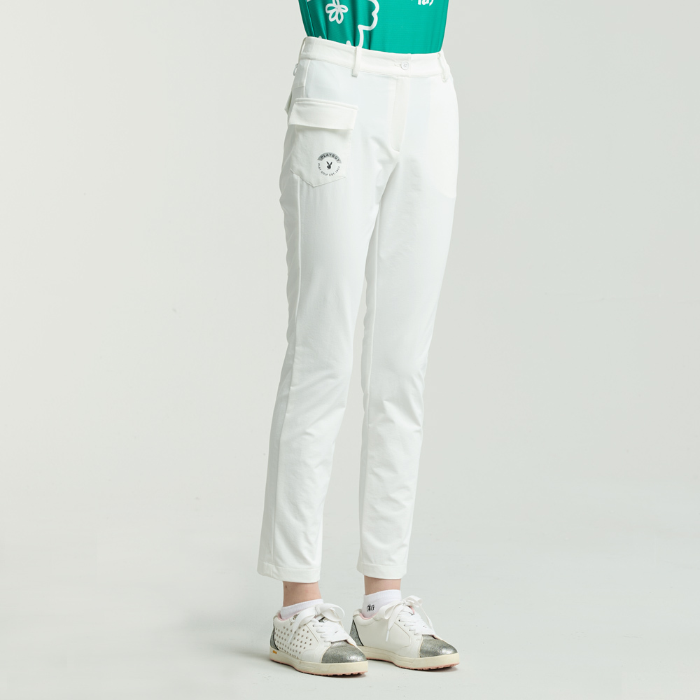【PLAYBOY GOLF】女款側貼口袋高爾夫長褲-白 / KE25202-87