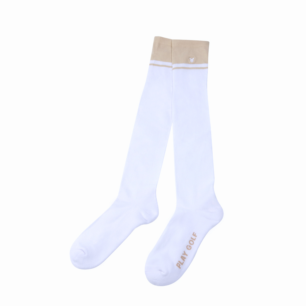 【PLAYBOY GOLF】女款撞色膝上長筒襪-白 / KO23203-87