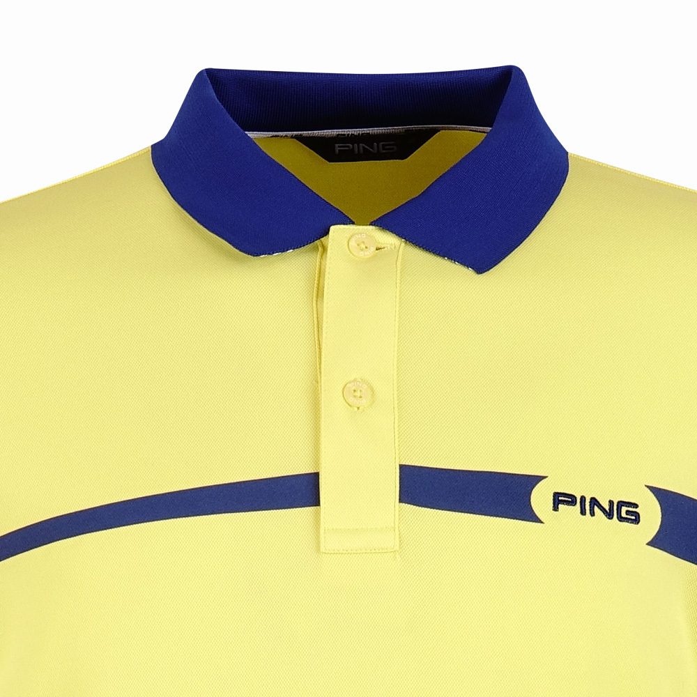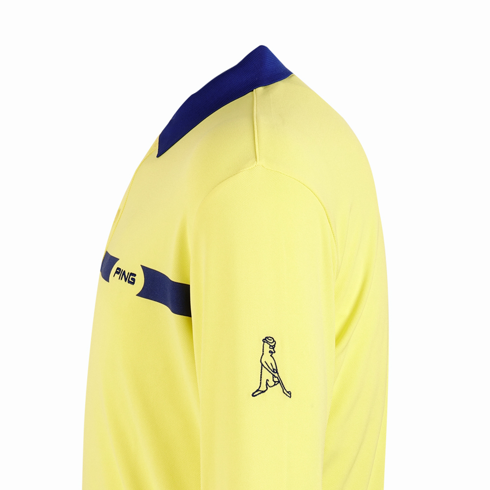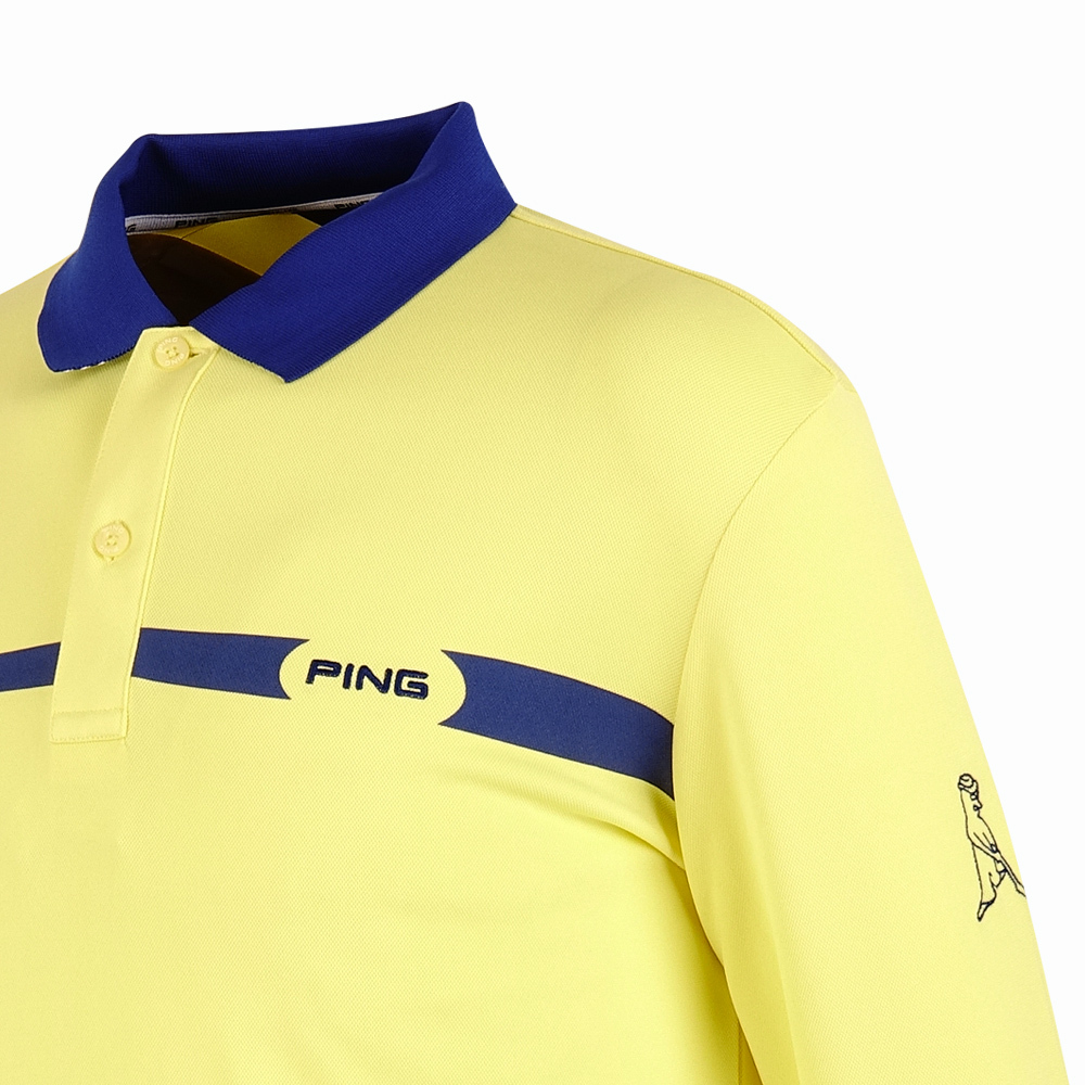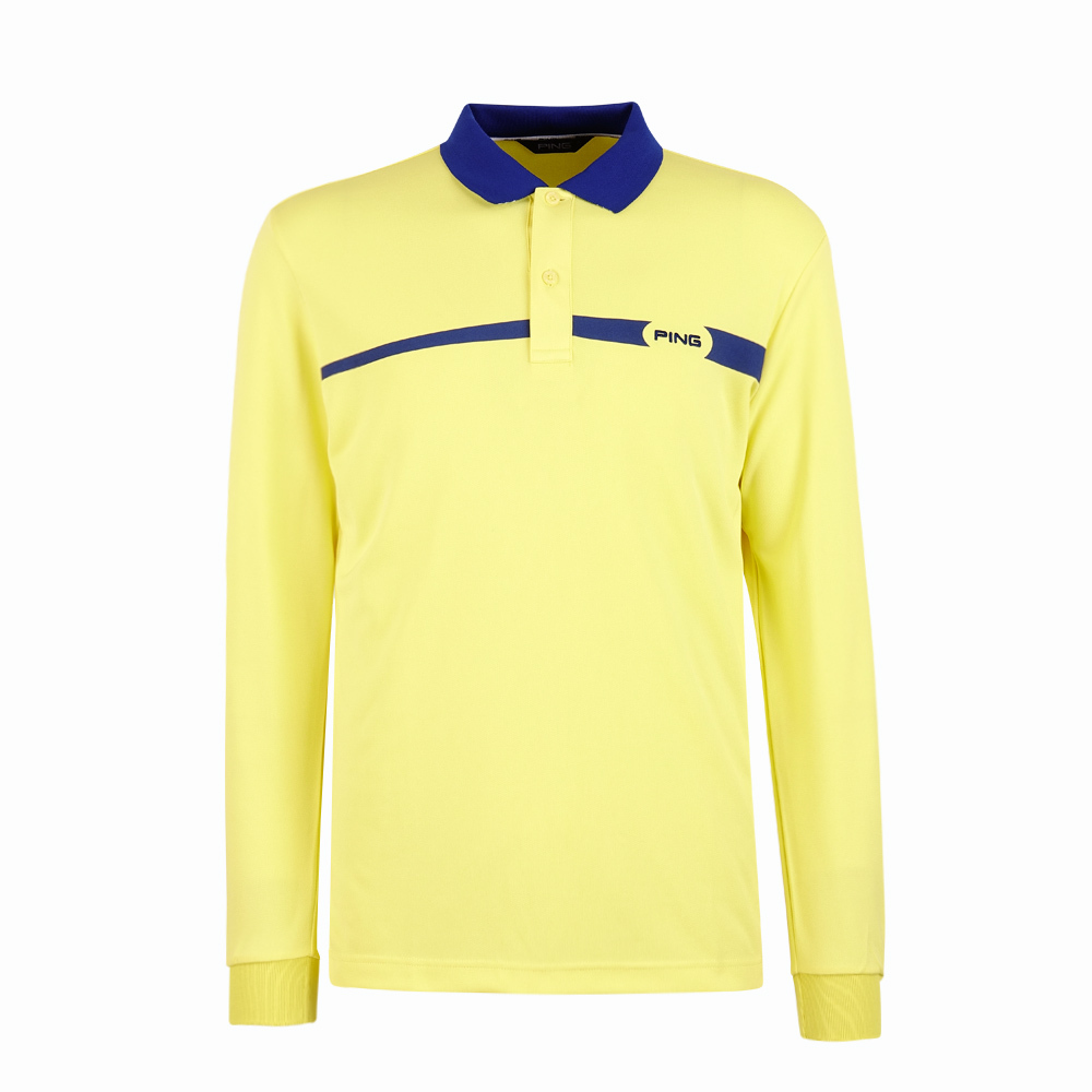 【PING】男款透氣網眼高爾夫長袖POLO衫-黃 / PA17290-35
