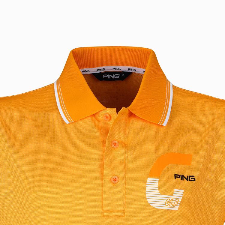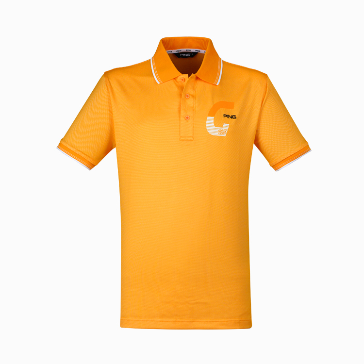 【PING】男款組織布紋運動款吸濕排汗短袖POLO衫-橘 / PA21116-25