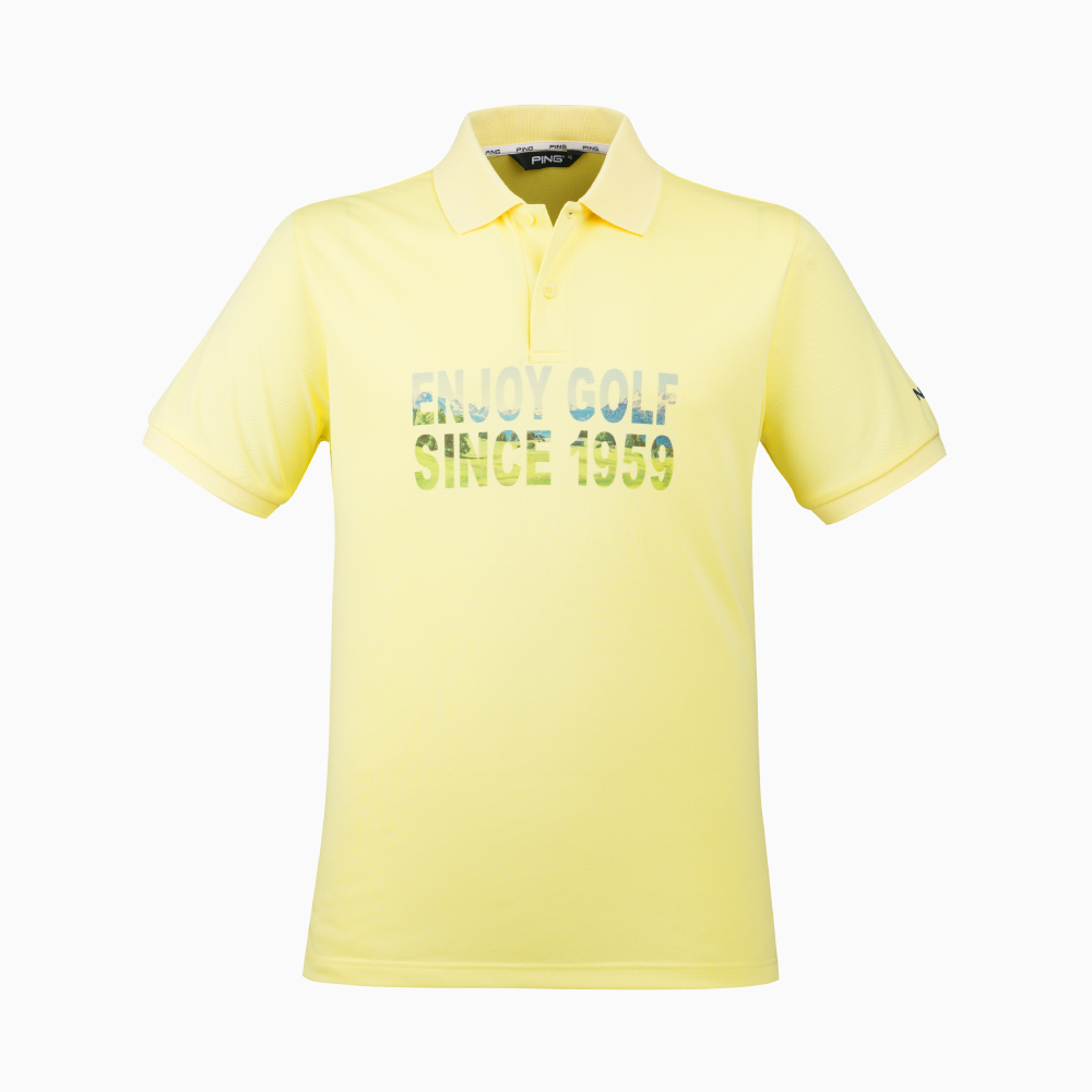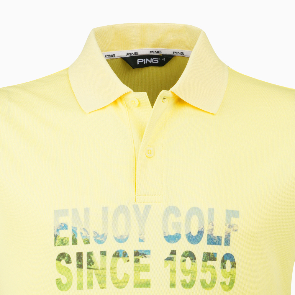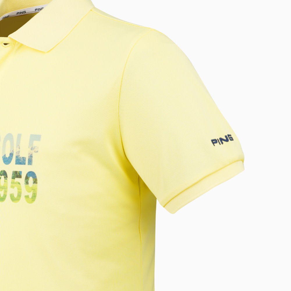 【PING】男款文字漸層吸濕排汗短袖POLO衫-黃 / PA21192-35