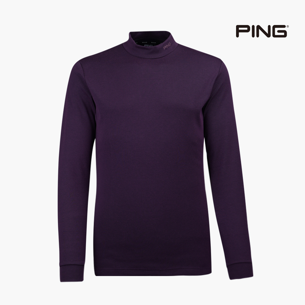 【PING】男款直紋針織長袖高領圓領衫-深紫 / PA21231-68