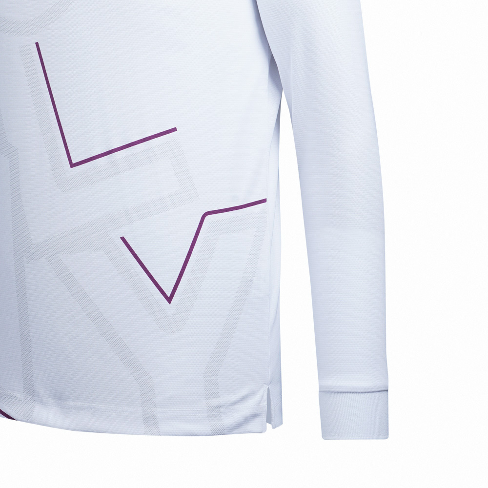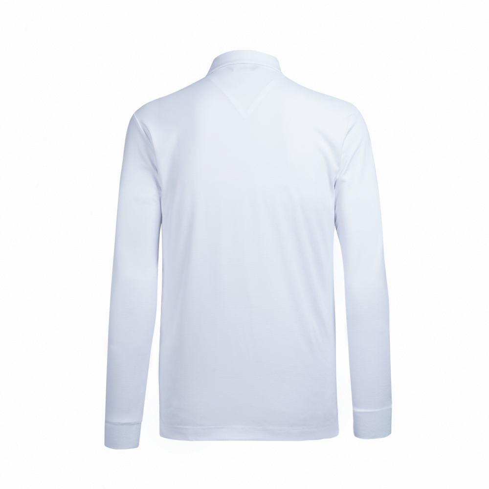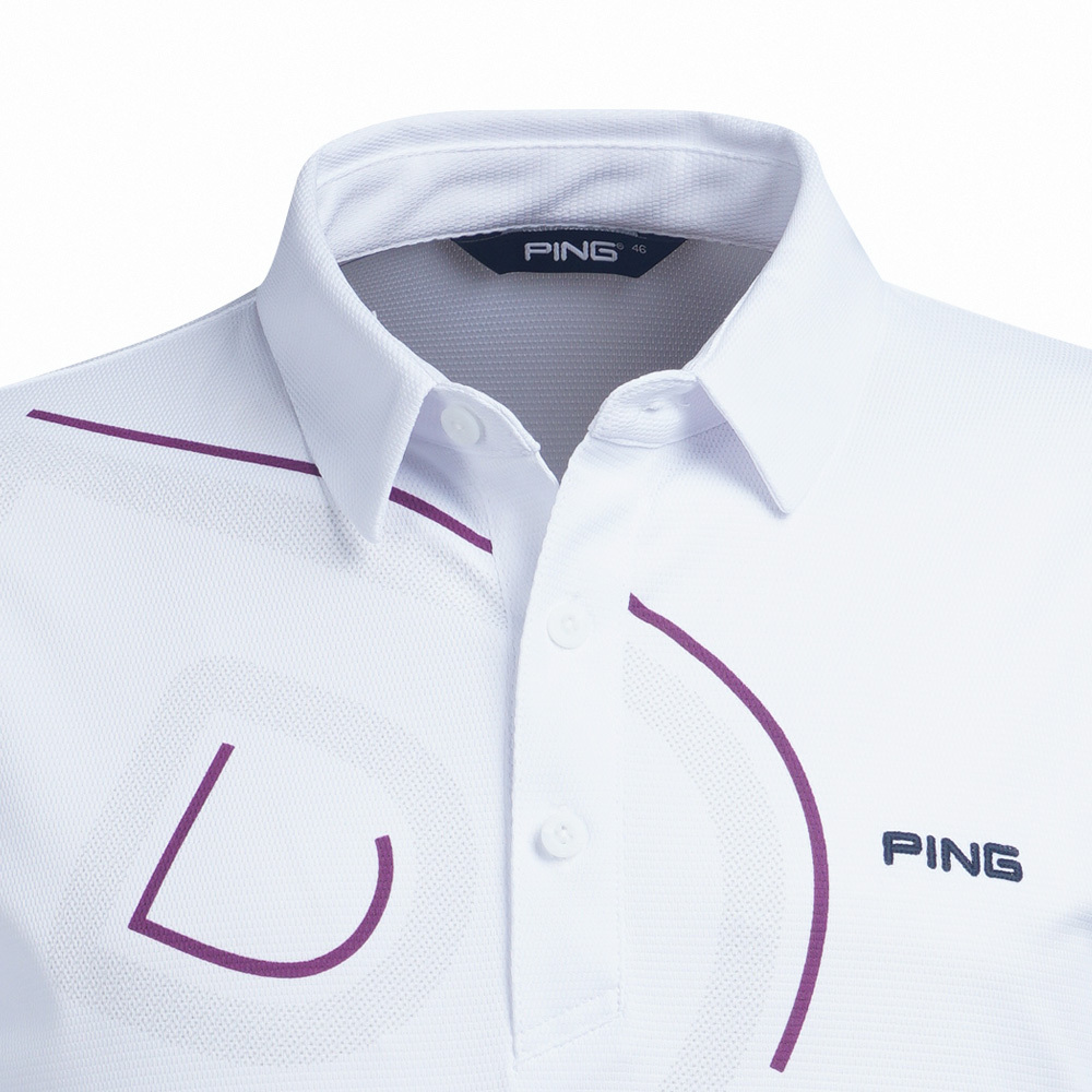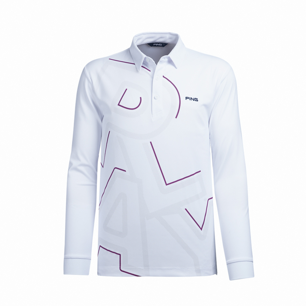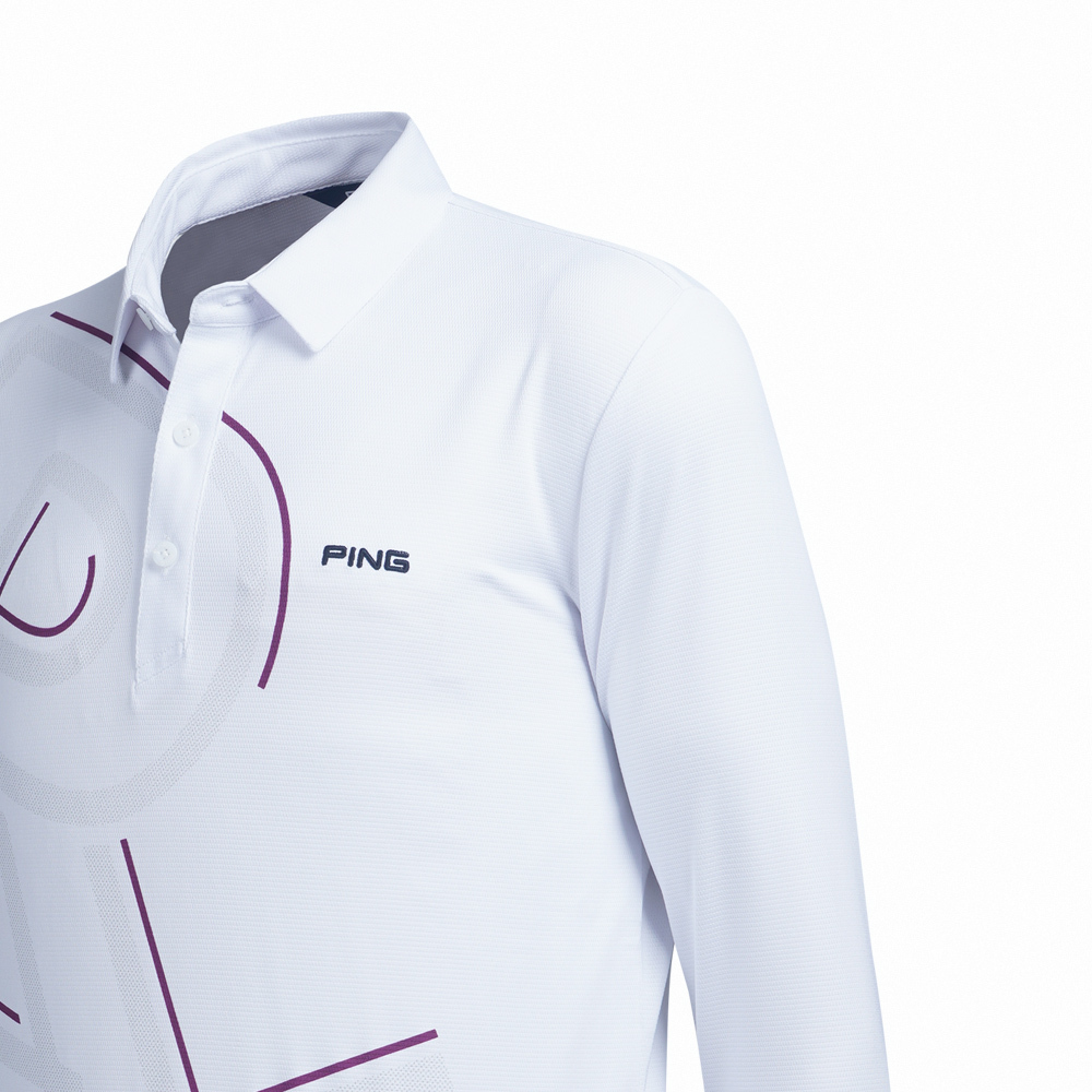 【PING】男款大文字圖騰薄長袖POLO衫-白 / PA22217-87