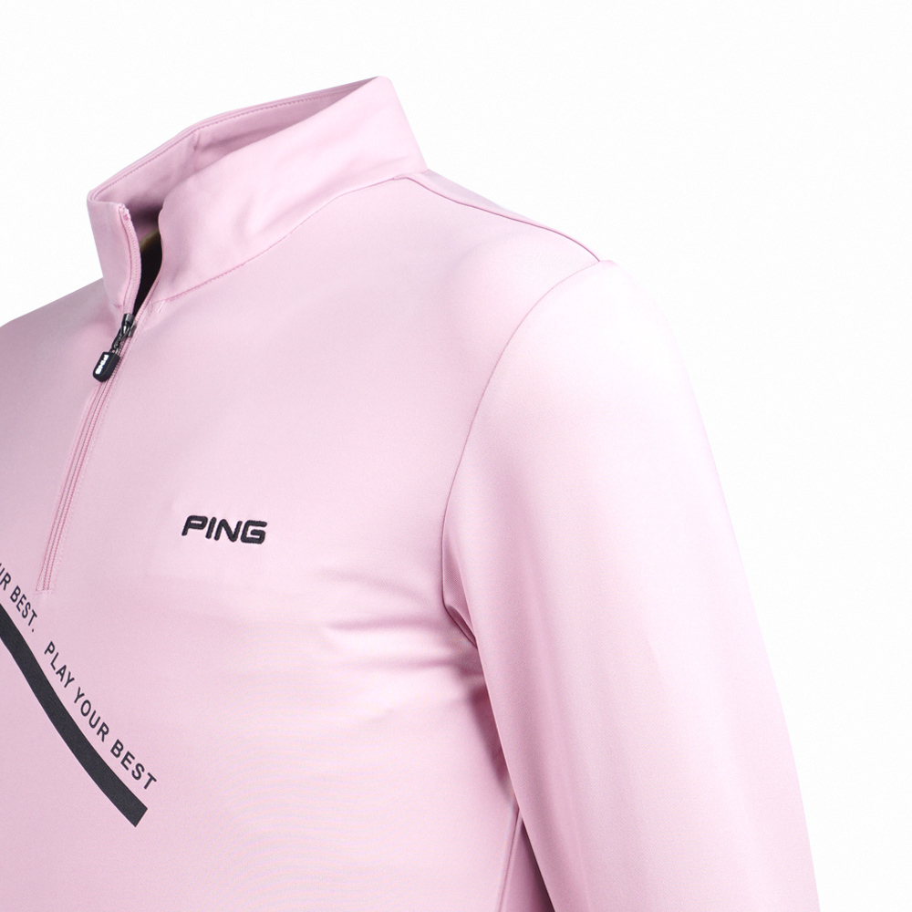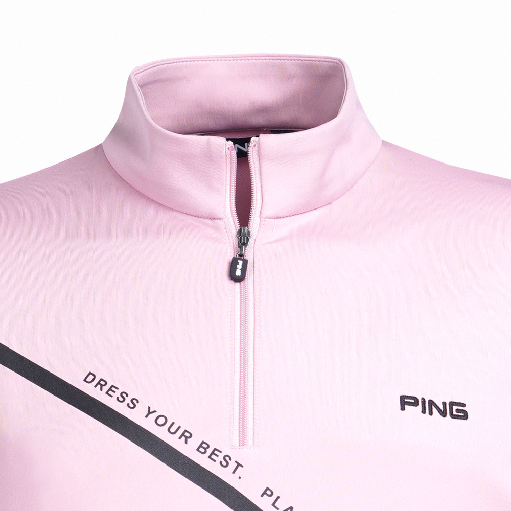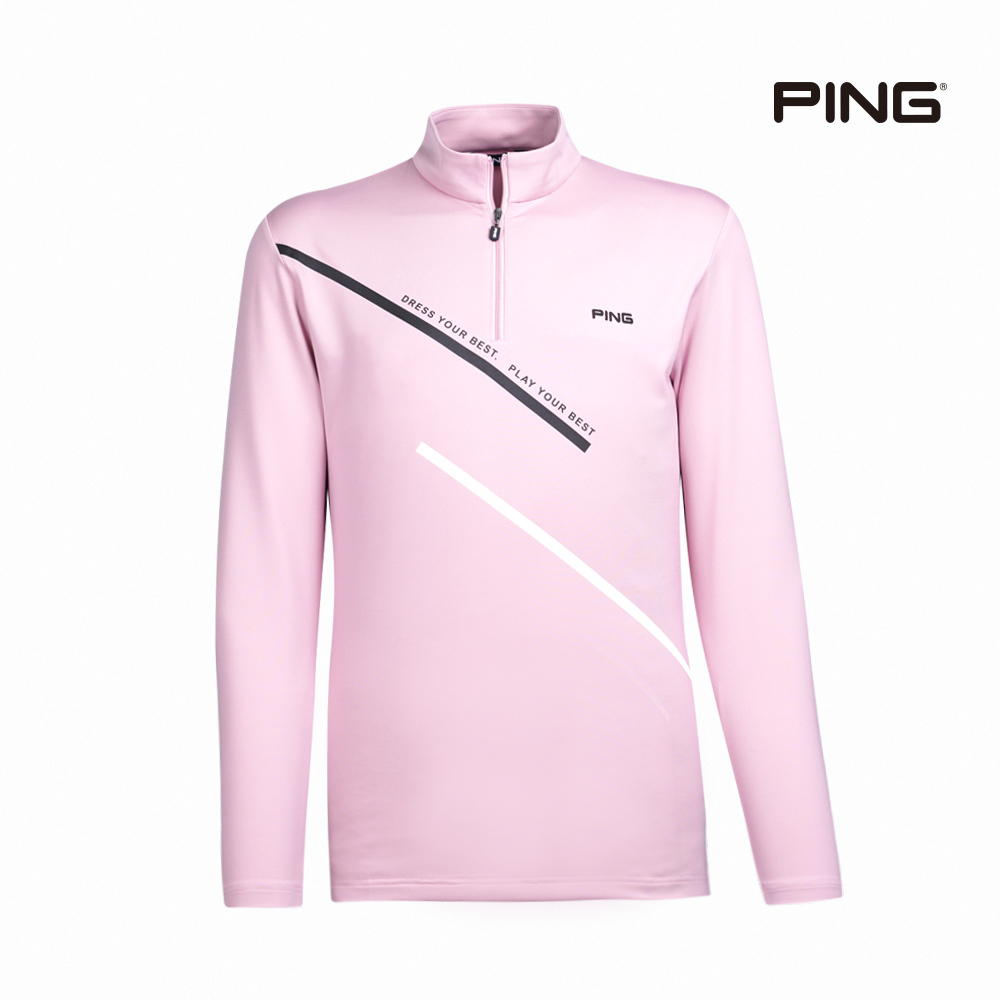 【PING】男款斜線簡約立領長袖POLO衫-粉紅 / PA22292-13