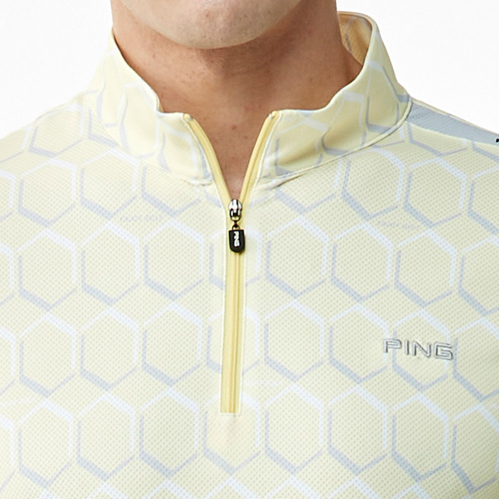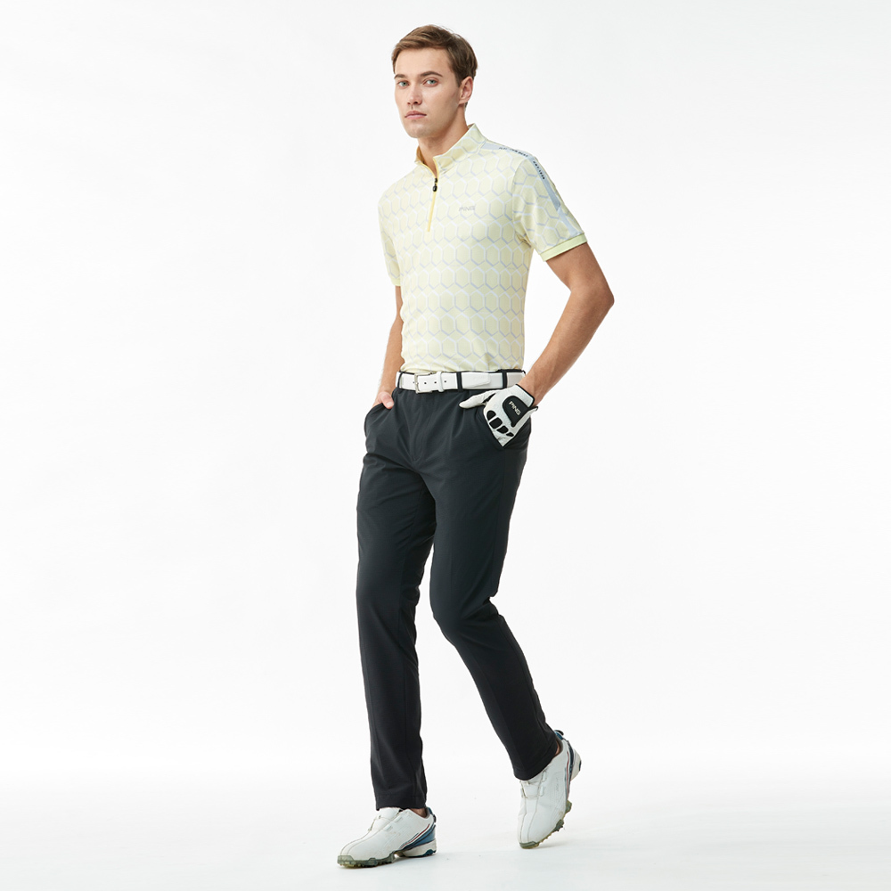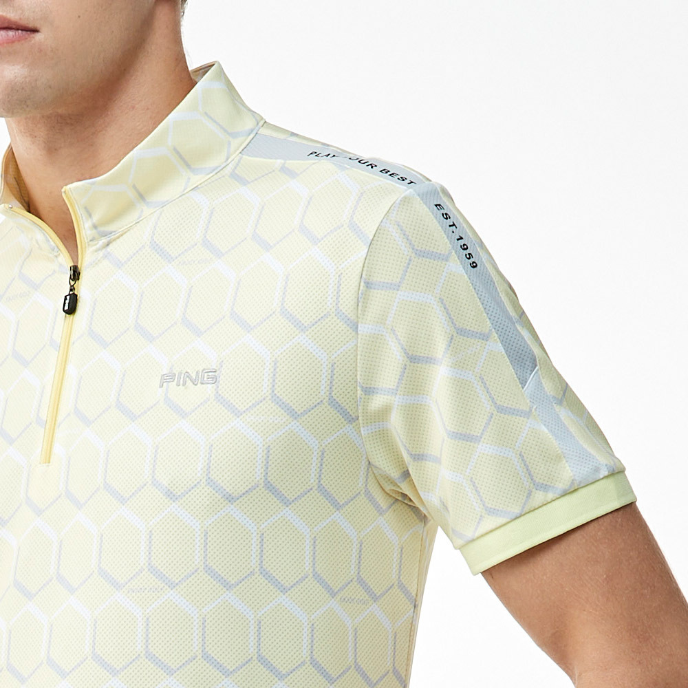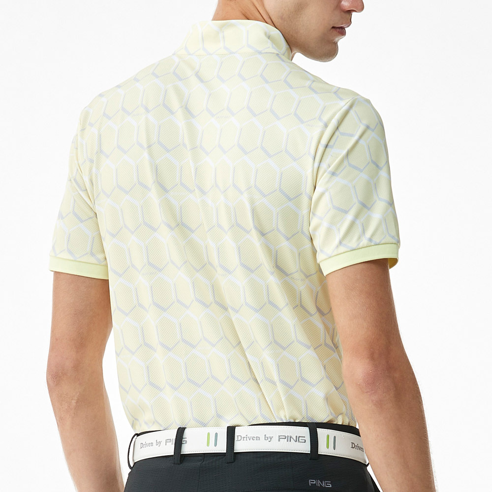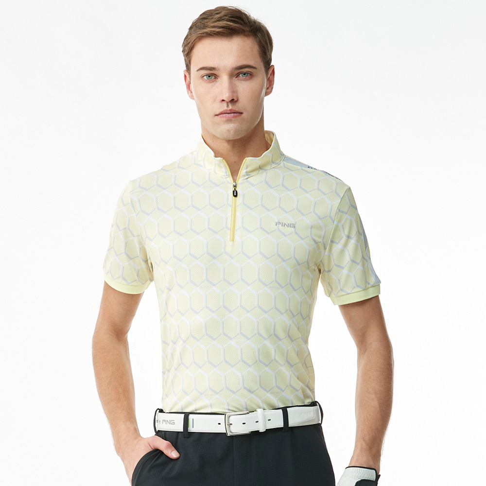 【PING】男款六角圖騰立領短袖POLO衫-黃 / PA23121-33