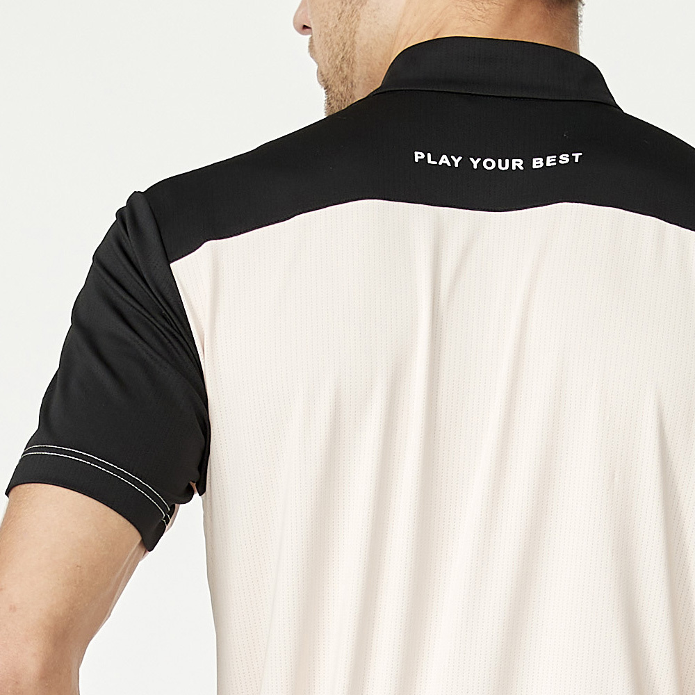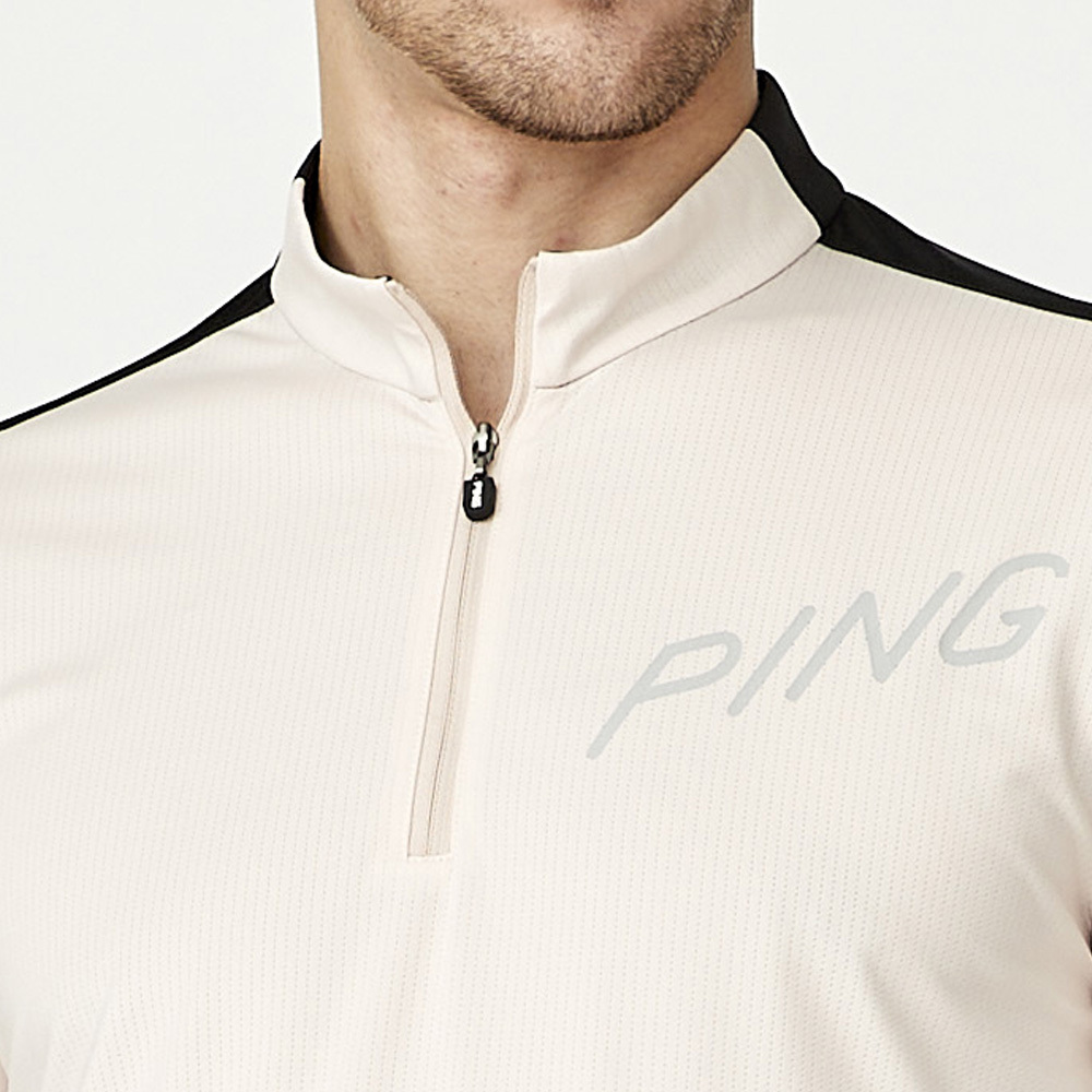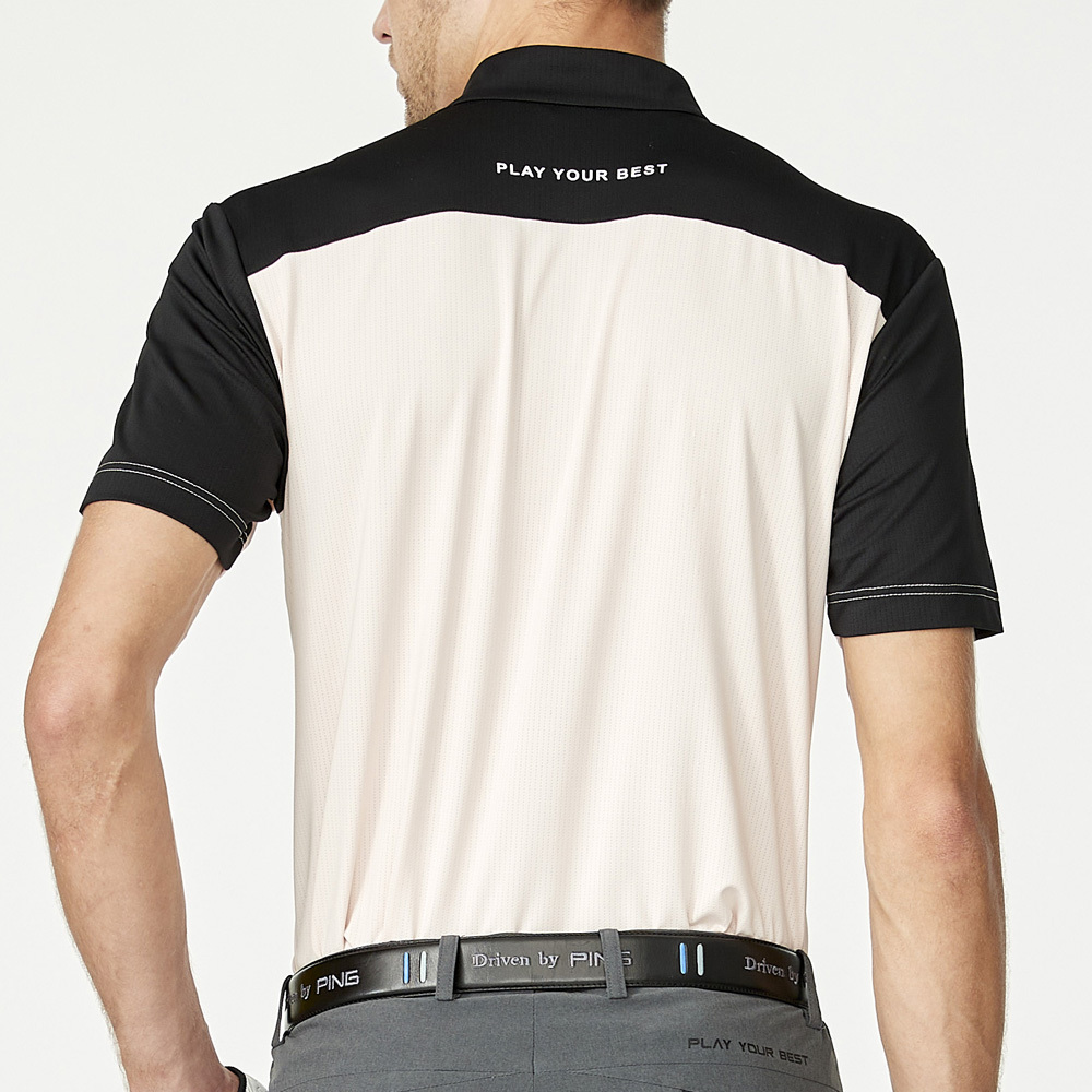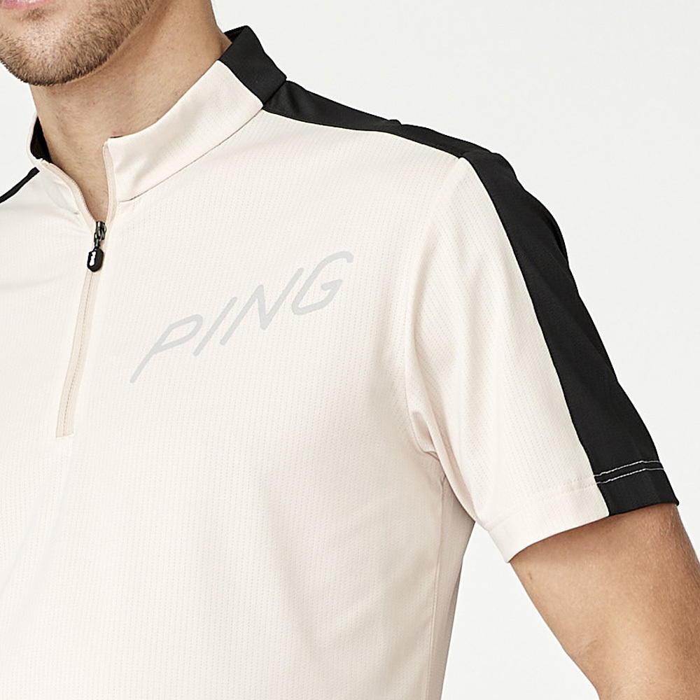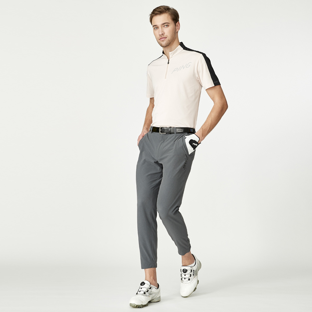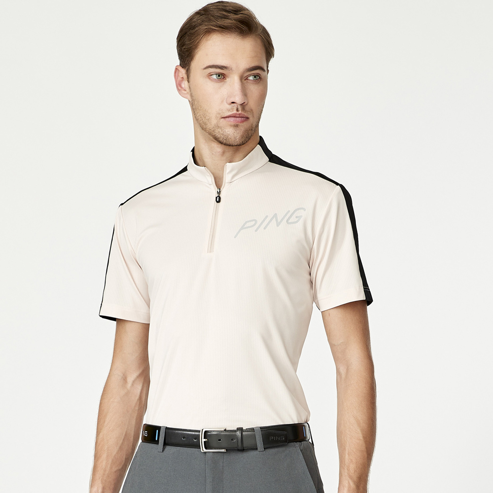 【PING】男款LOGO素面立領運動短袖POLO衫-卡其 / PA23128-75