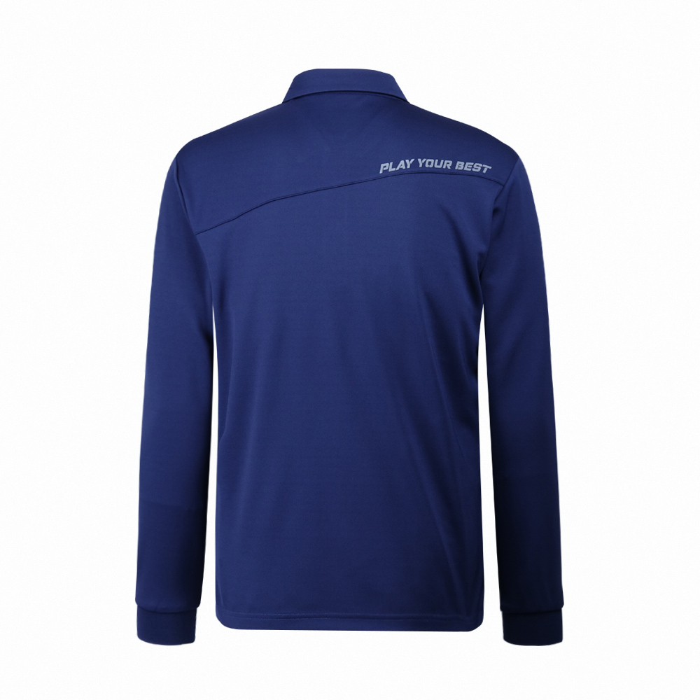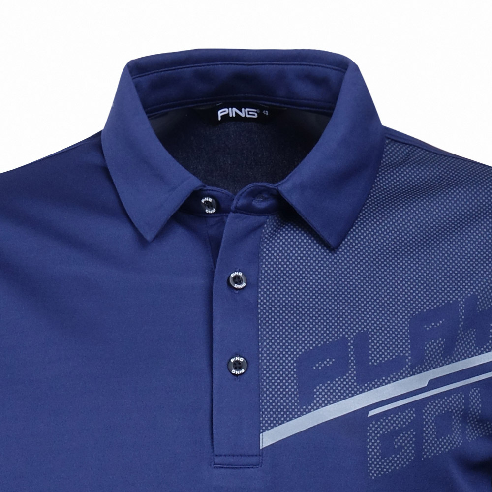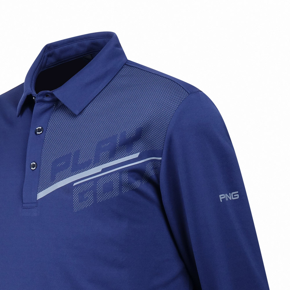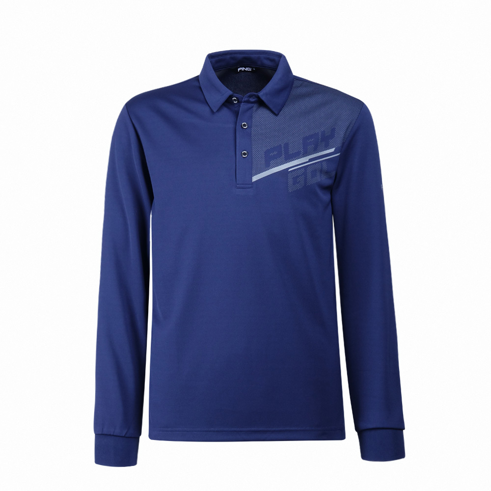 【PING】男款標語圖騰吸濕排汗長袖POLO衫-深藍 / PA23211-58