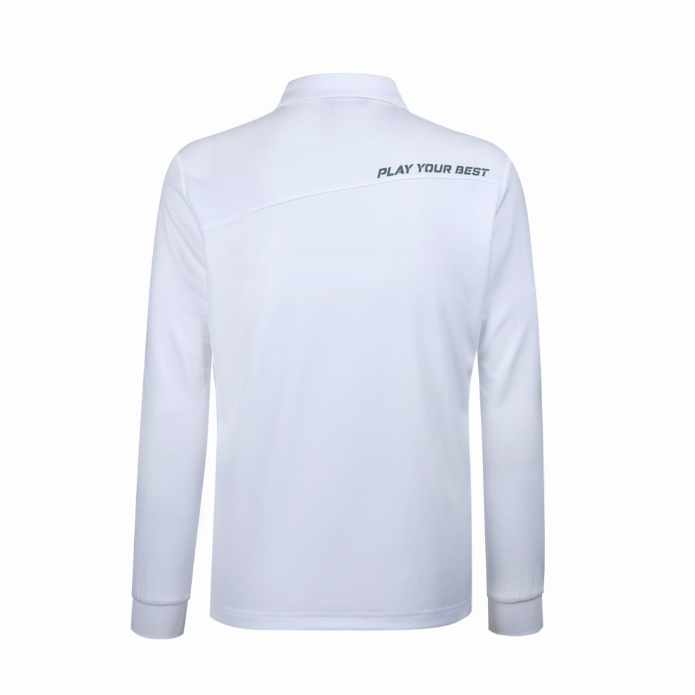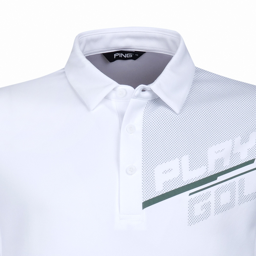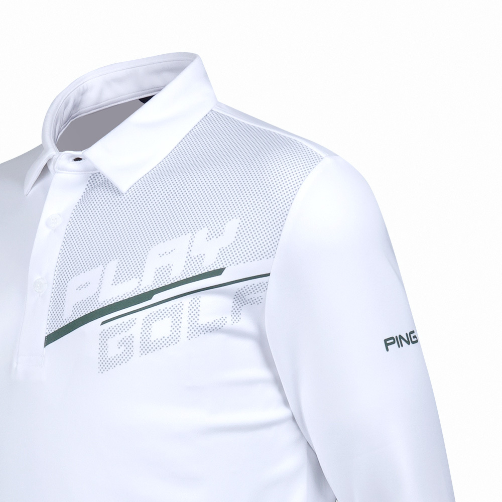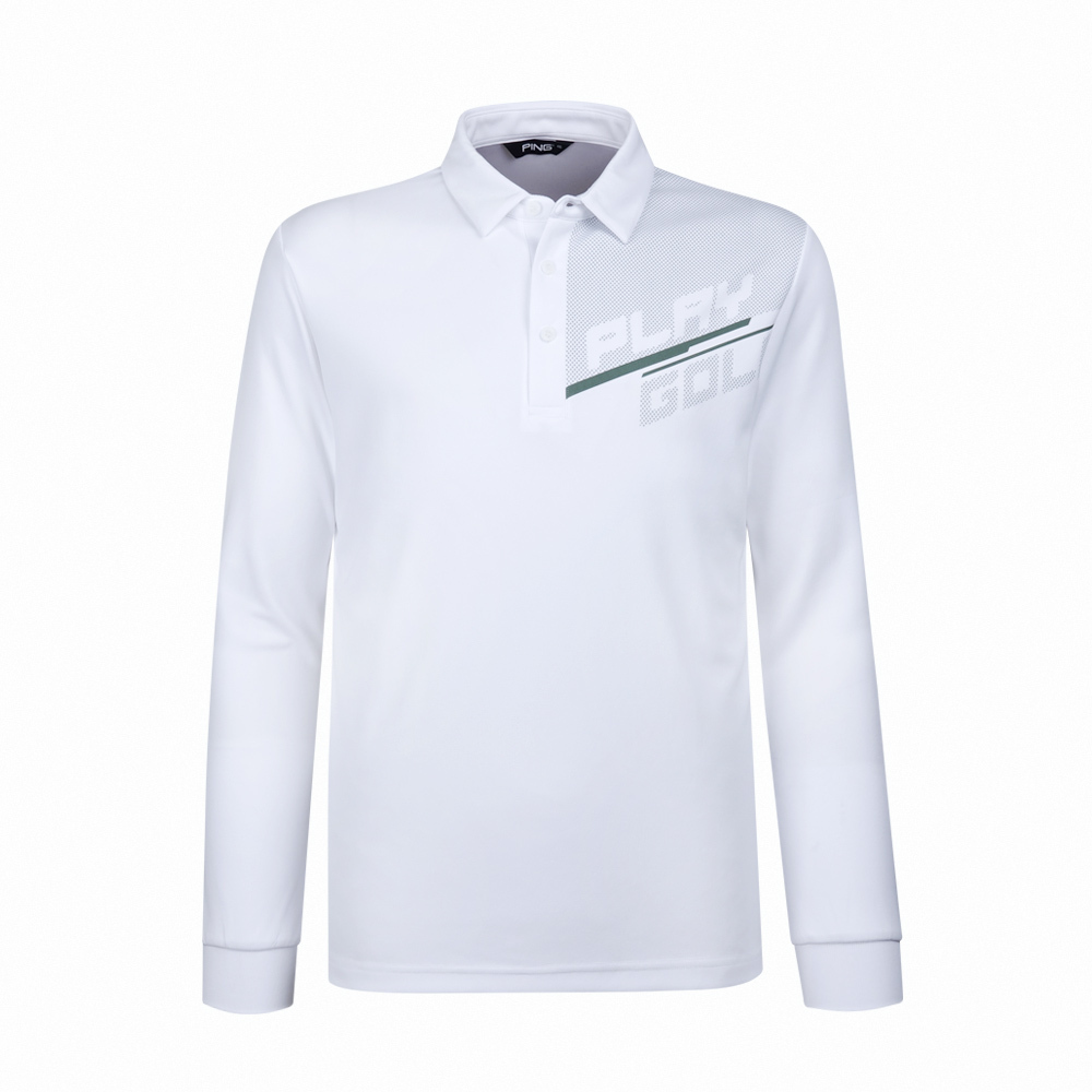 【PING】男款標語圖騰吸濕排汗長袖POLO衫-白 / PA23211-87