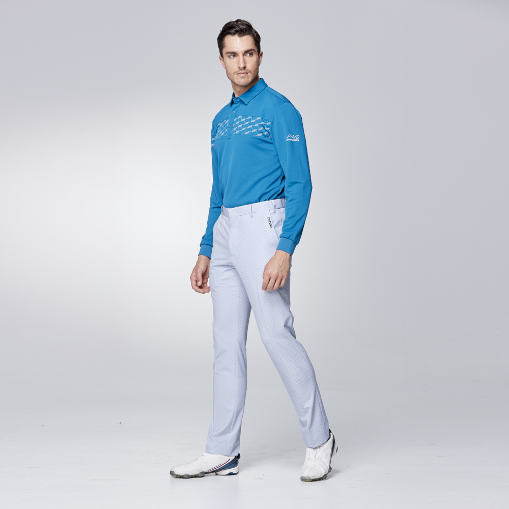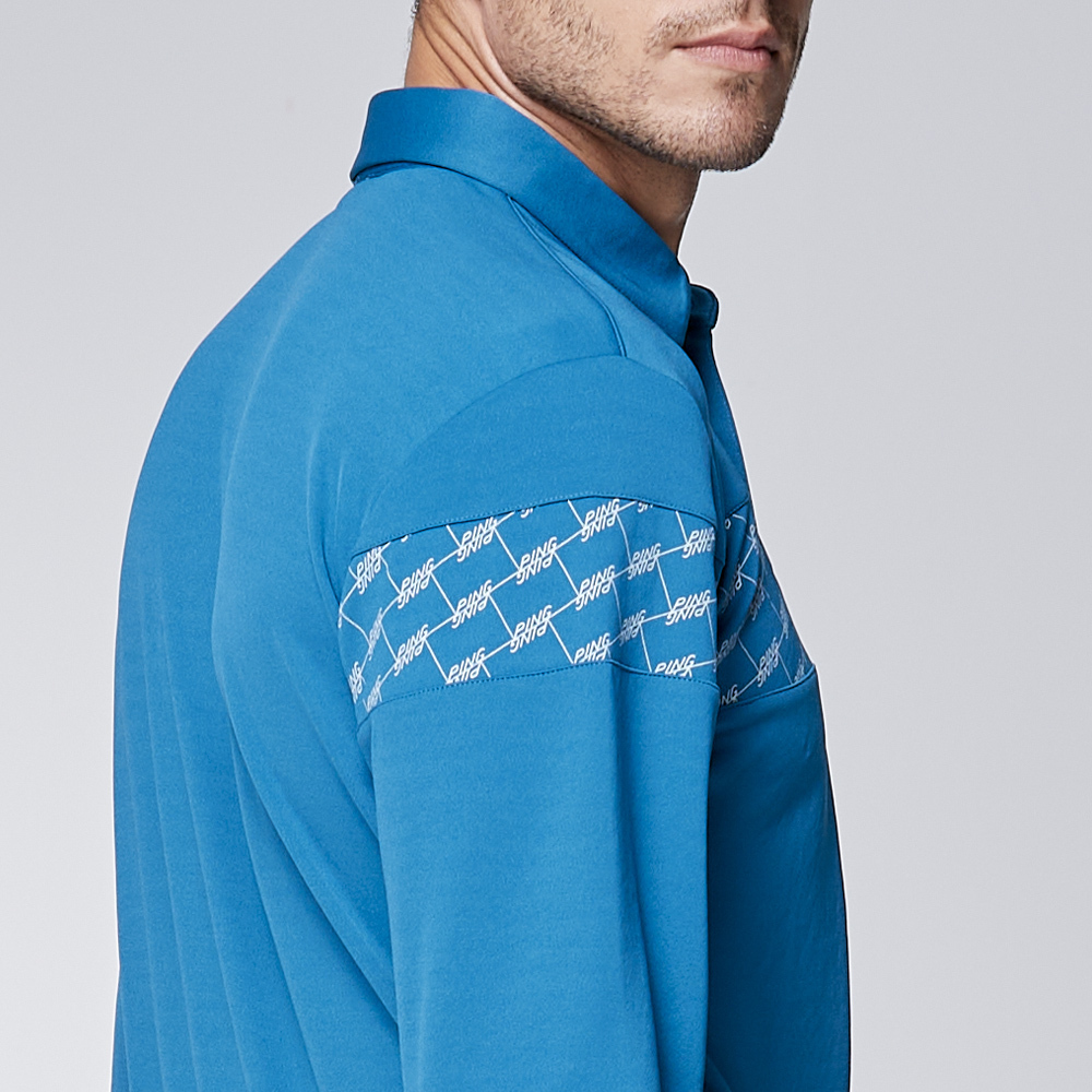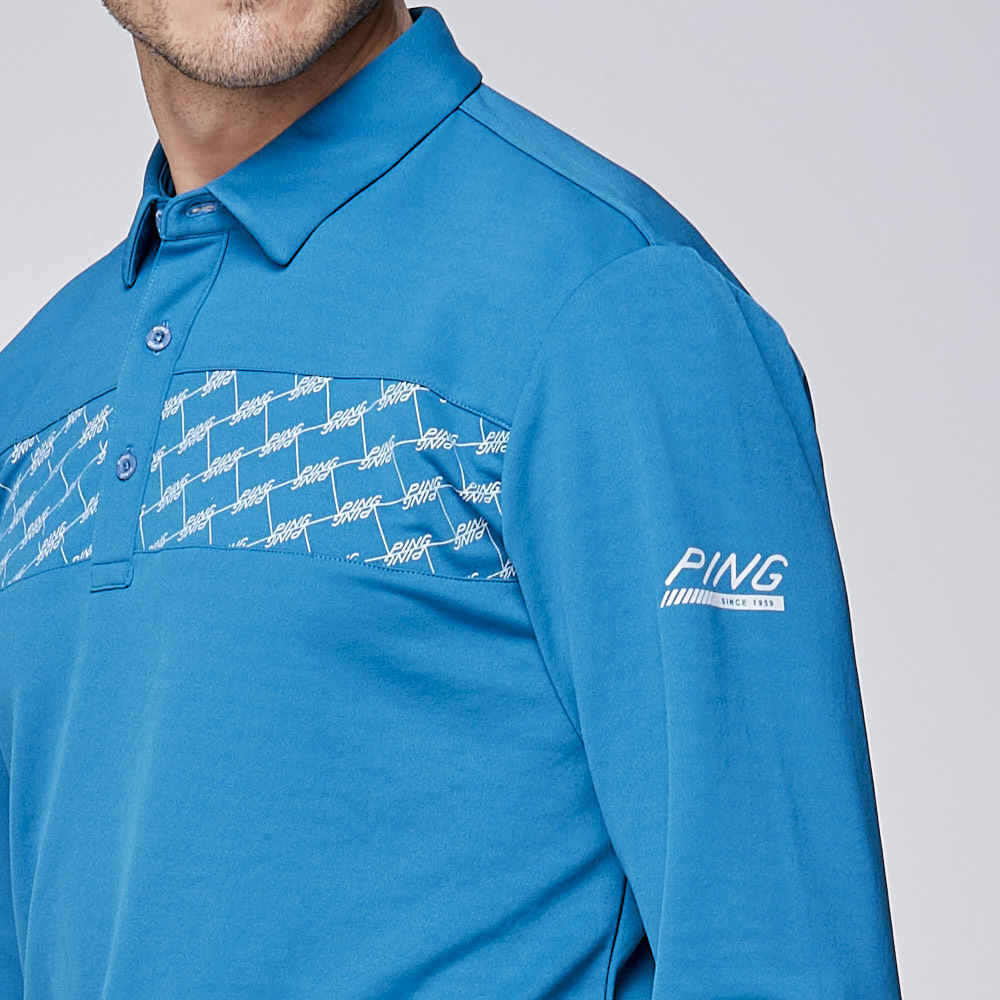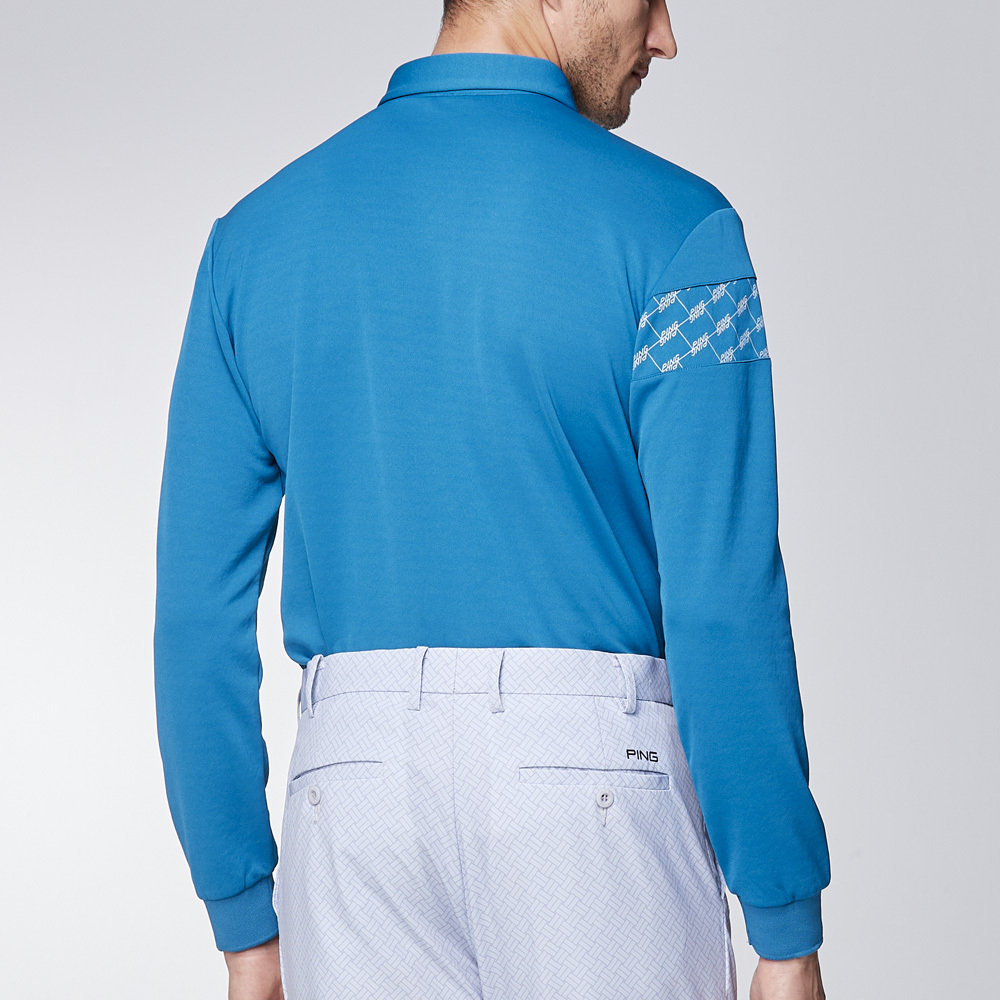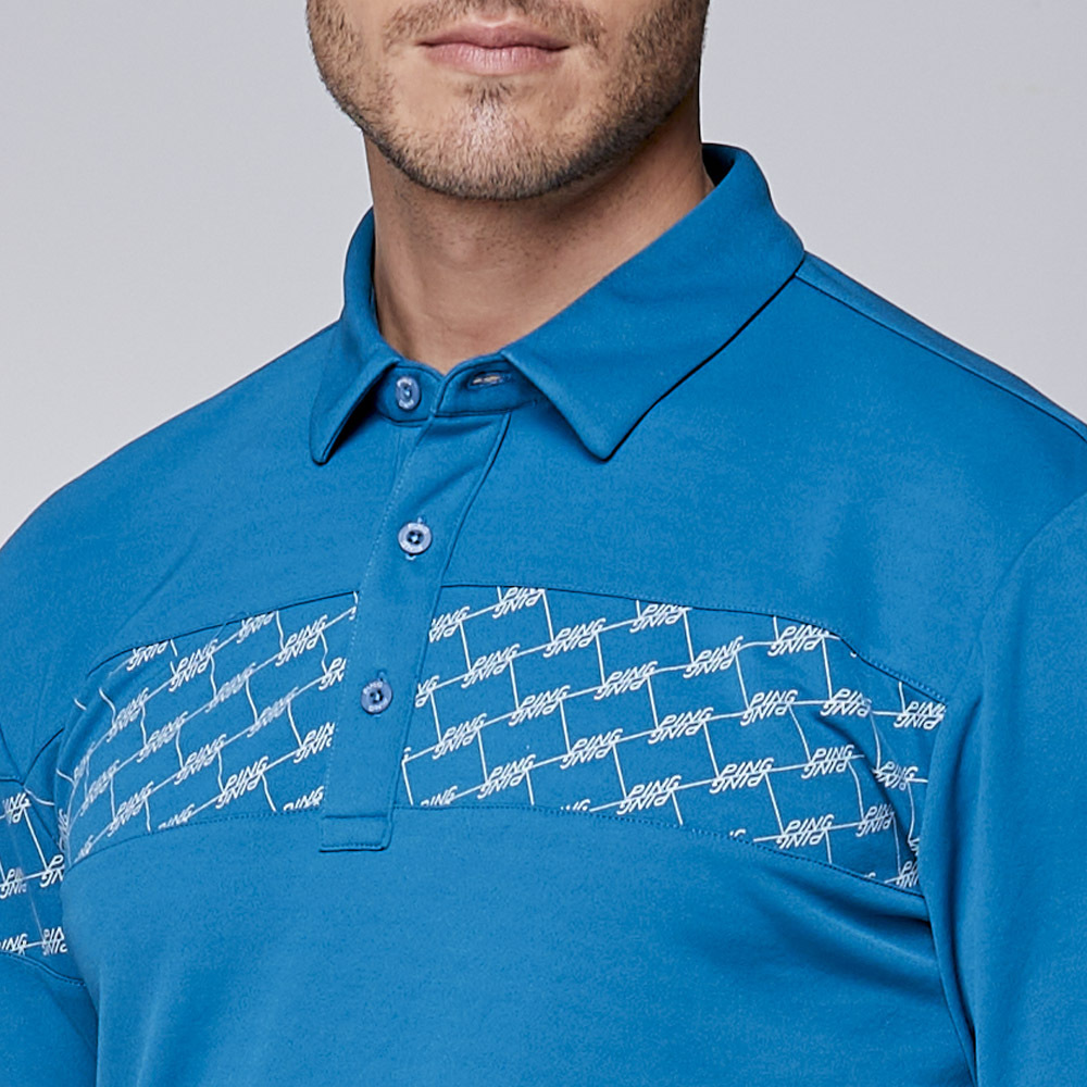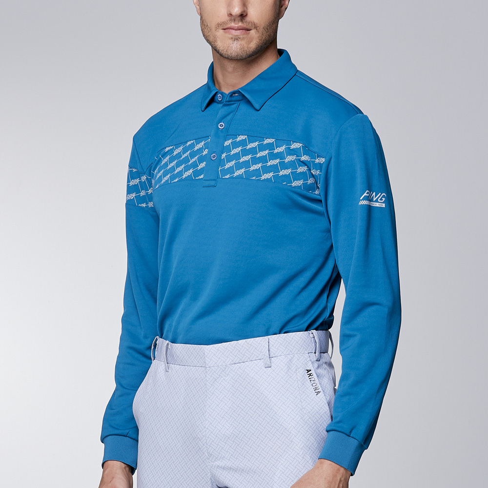 【PING】男款印花剪接吸濕排汗薄長袖POLO衫-藍綠 / PA23215-56