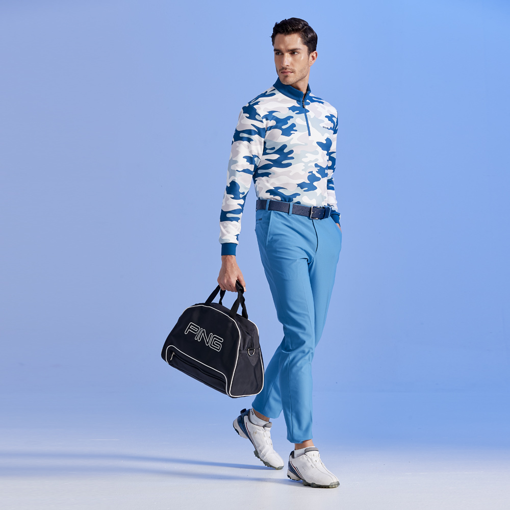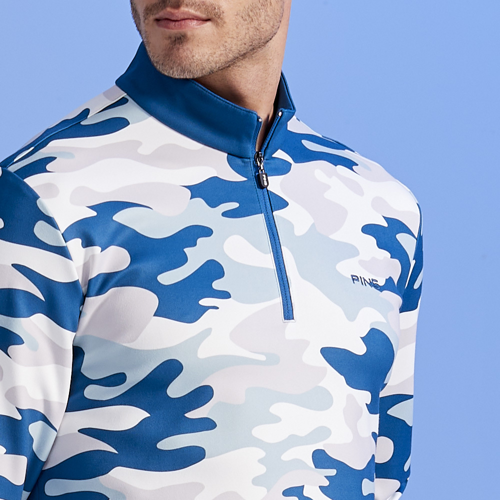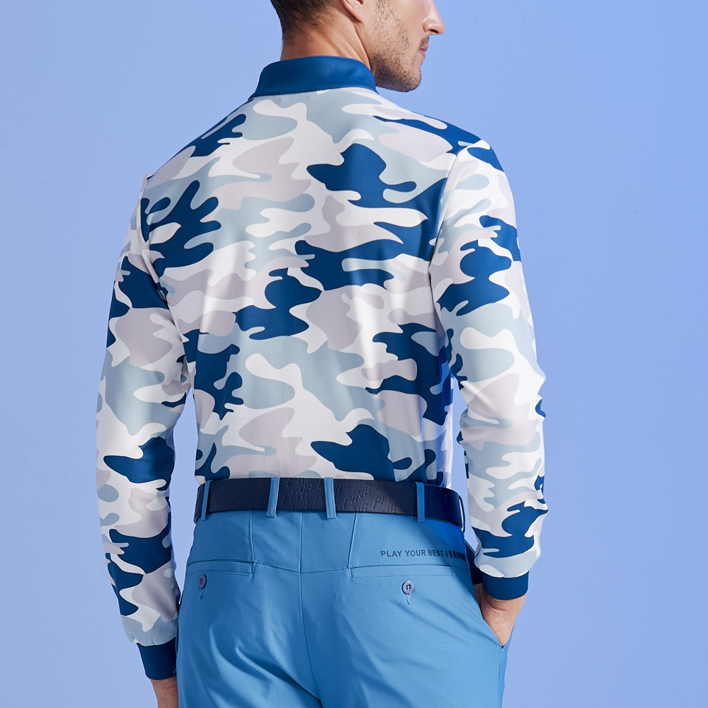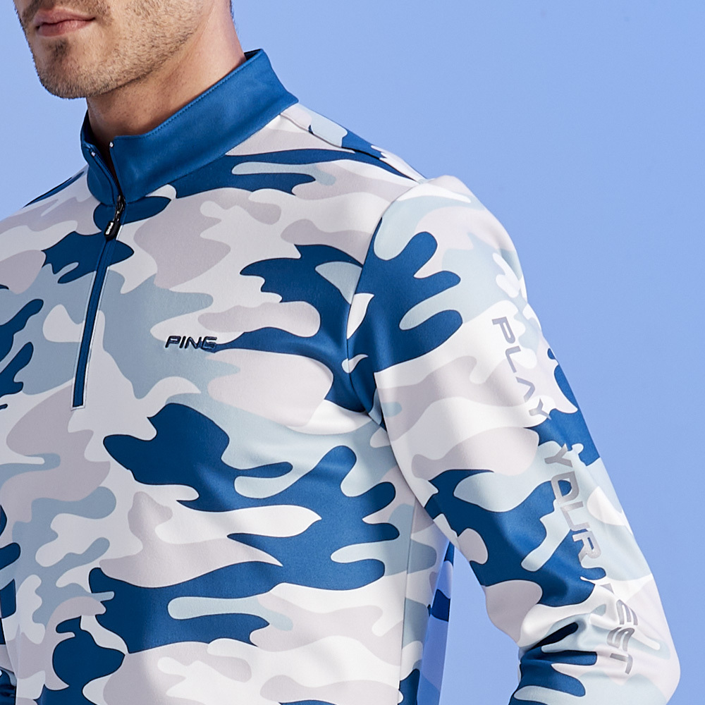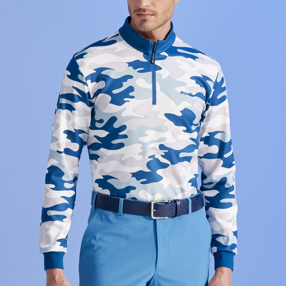【PING】男款迷彩磨毛蓄熱保溫立領長袖POLO衫-藍 / PA23222-56