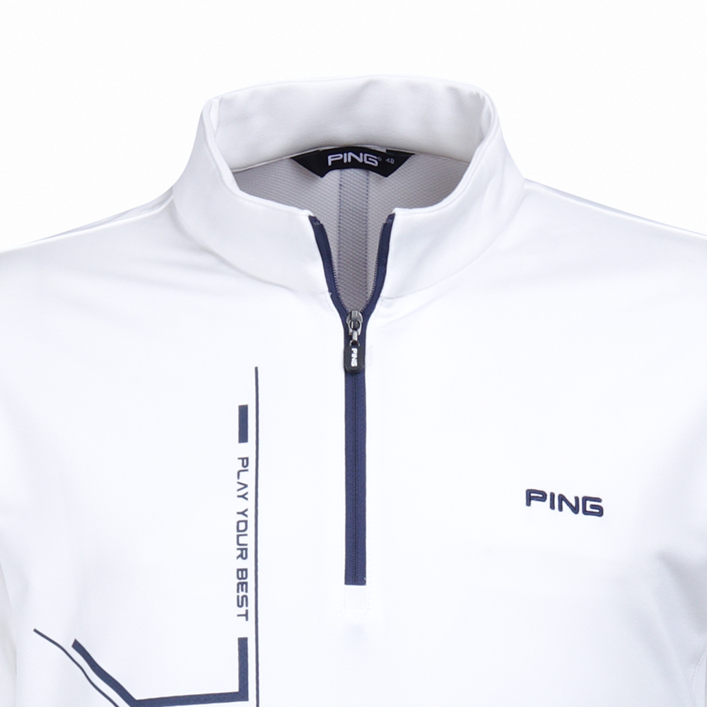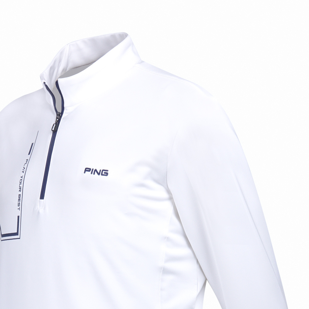 【PING】男款素面運動型吸濕排汗立領長袖POLO衫-白 / PA23225-73