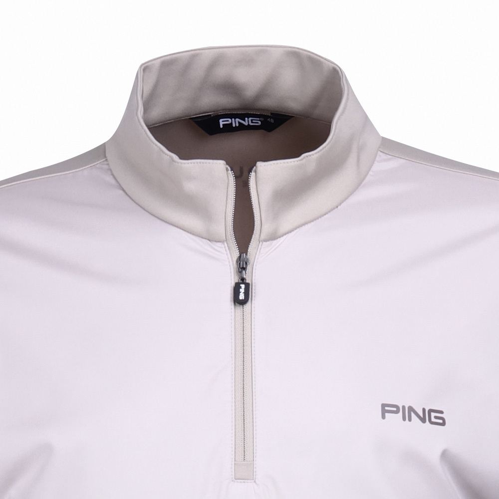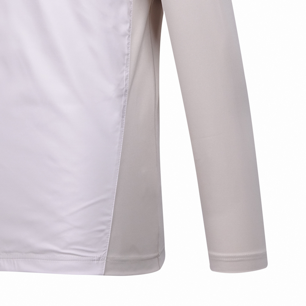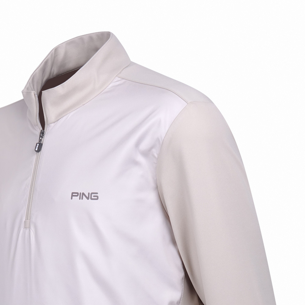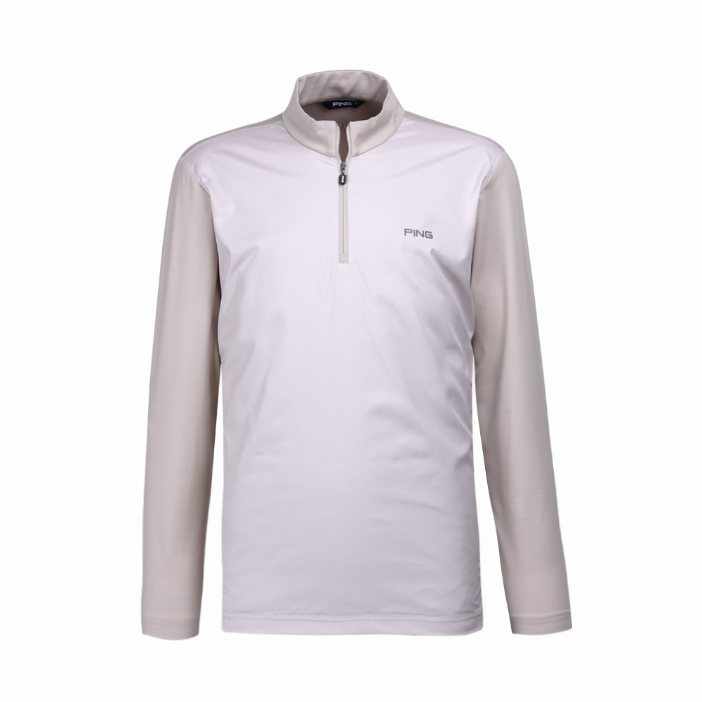 【PING】男款異素材剪接吸濕排汗立領長袖POLO衫-卡其 / PA23228-75