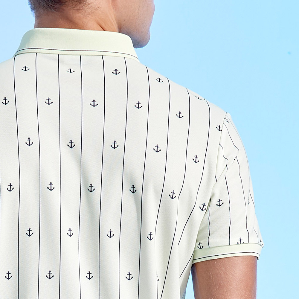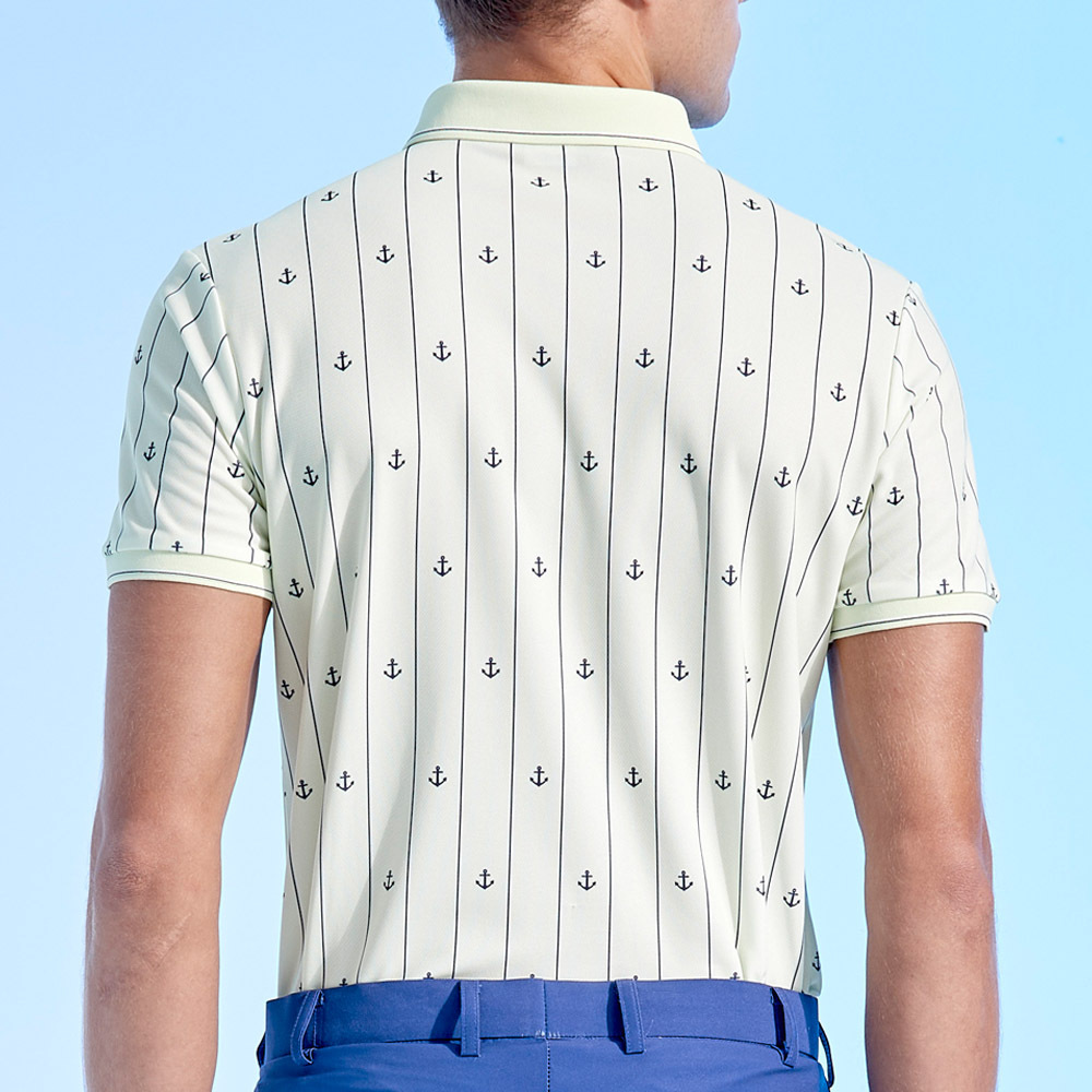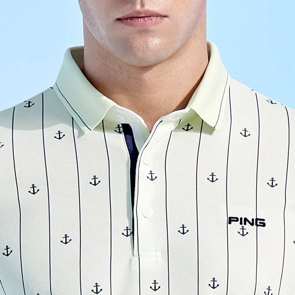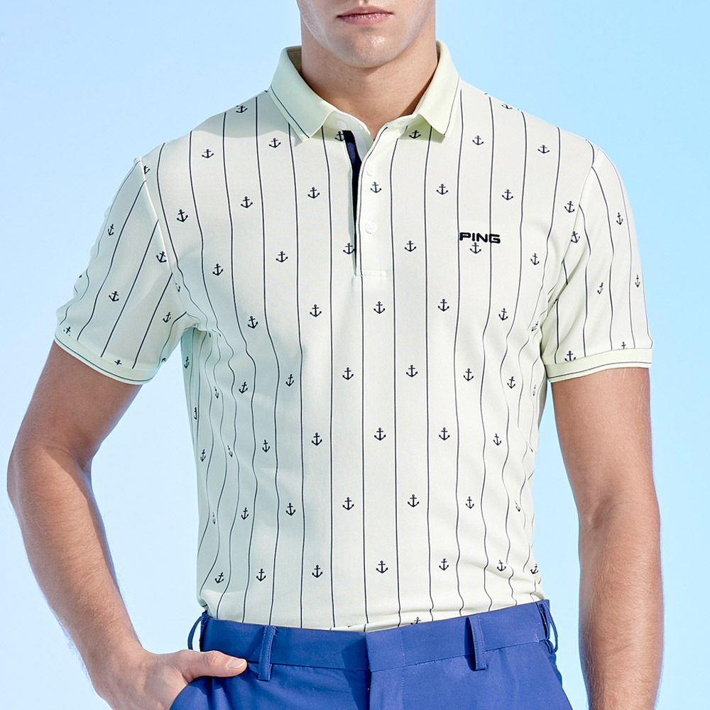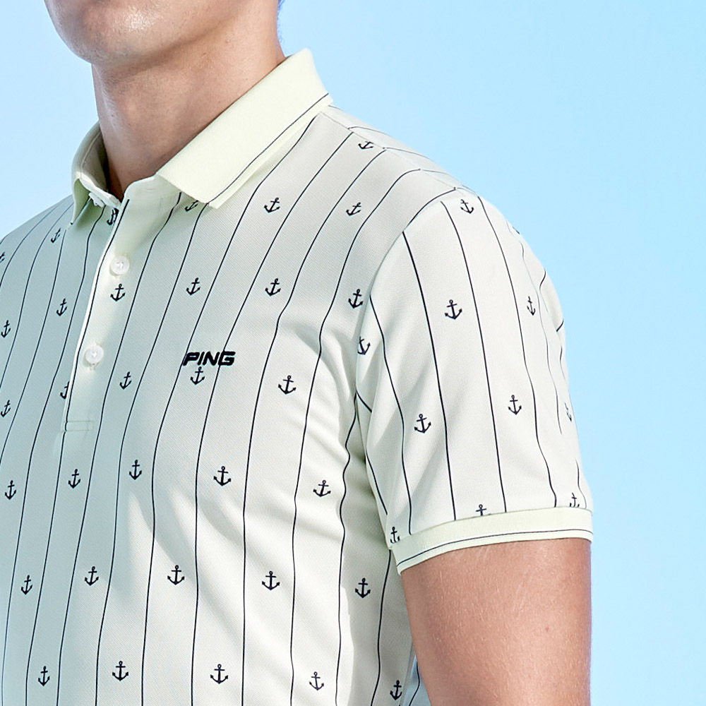 【PING】男款直條海錨吸濕排汗抗UV短袖POLO衫-綠 / PA24109-43
