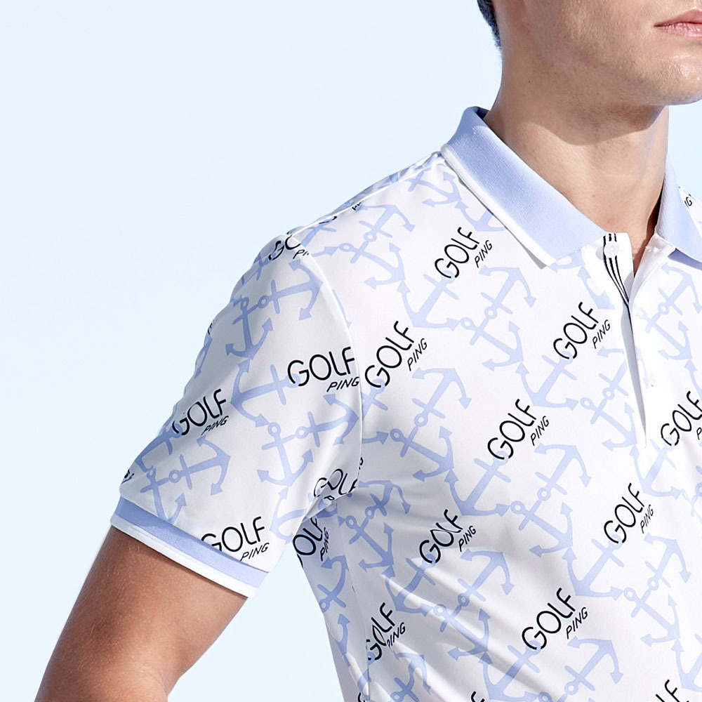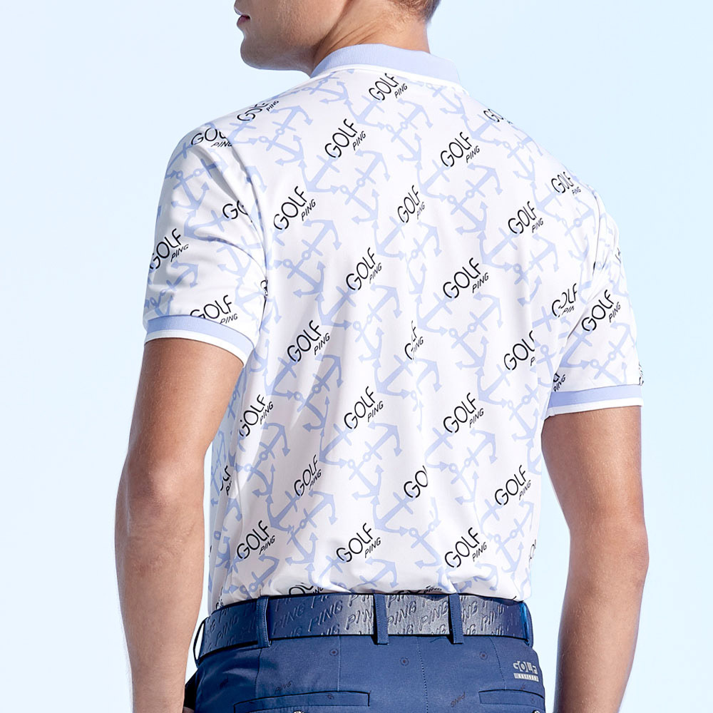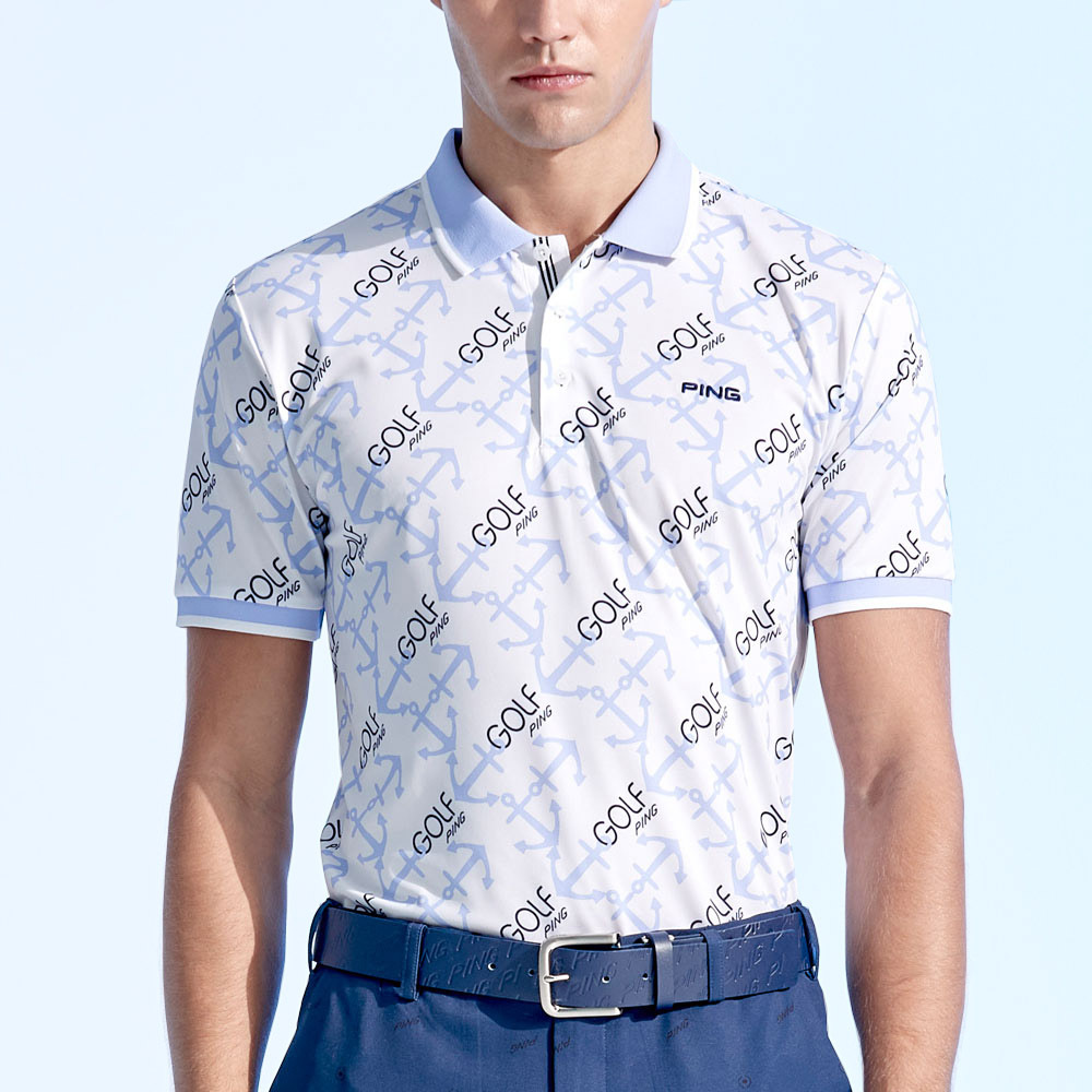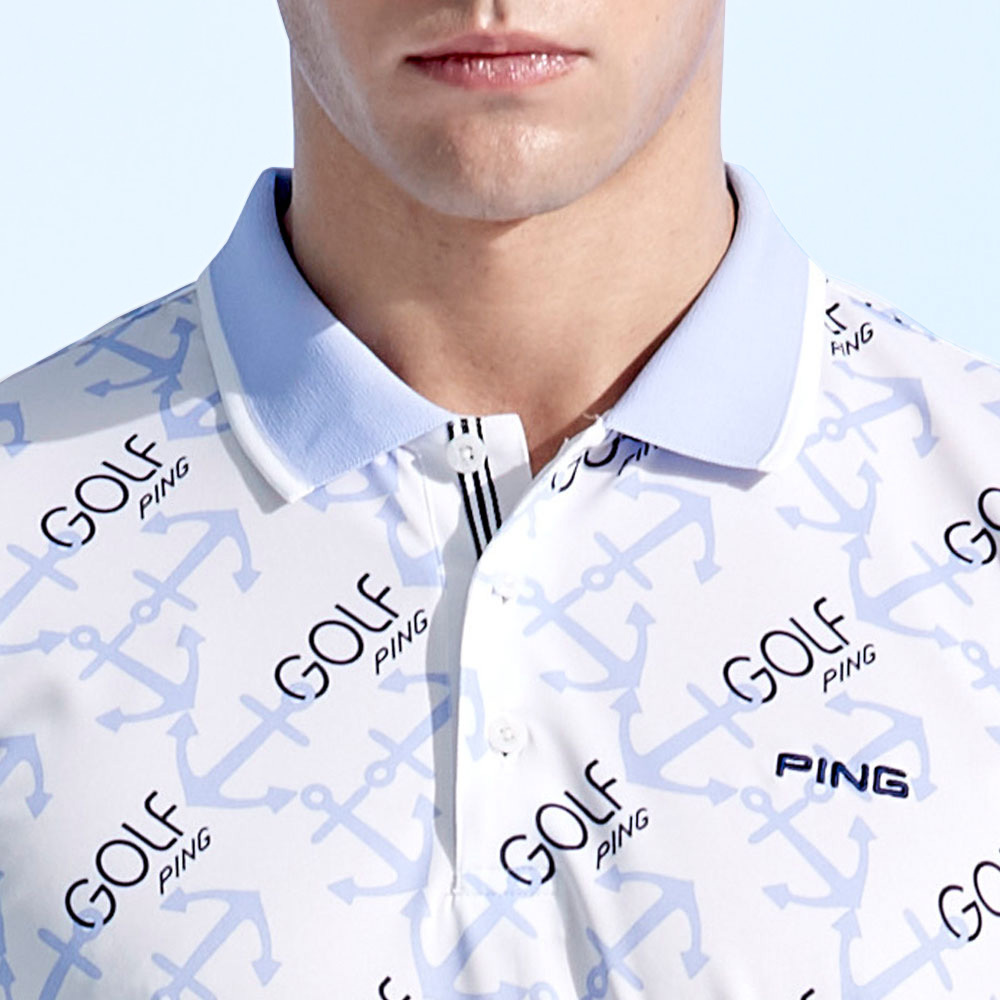 【PING】男款GOLF海錨吸濕排汗抗UV短袖POLO衫-淺藍 / PA24110-53