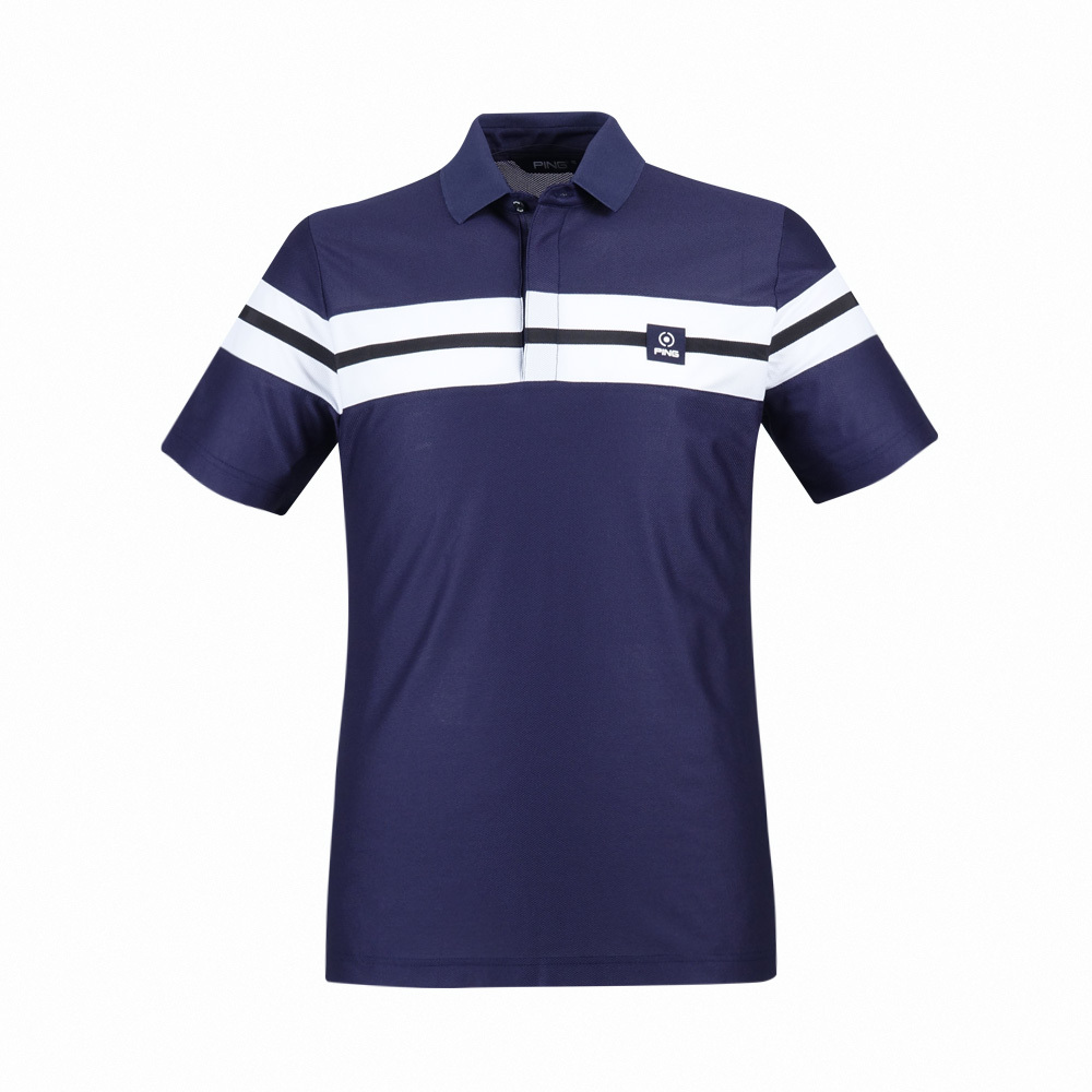 【PING】男款定位剪接吸濕排汗抗UV短袖POLO衫-深藍 / PA24111-58