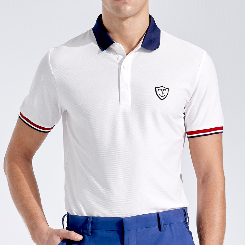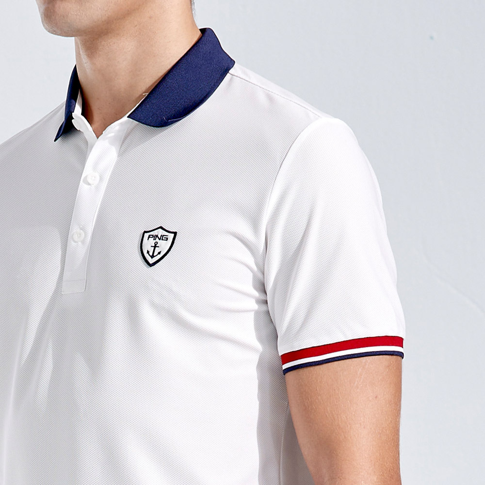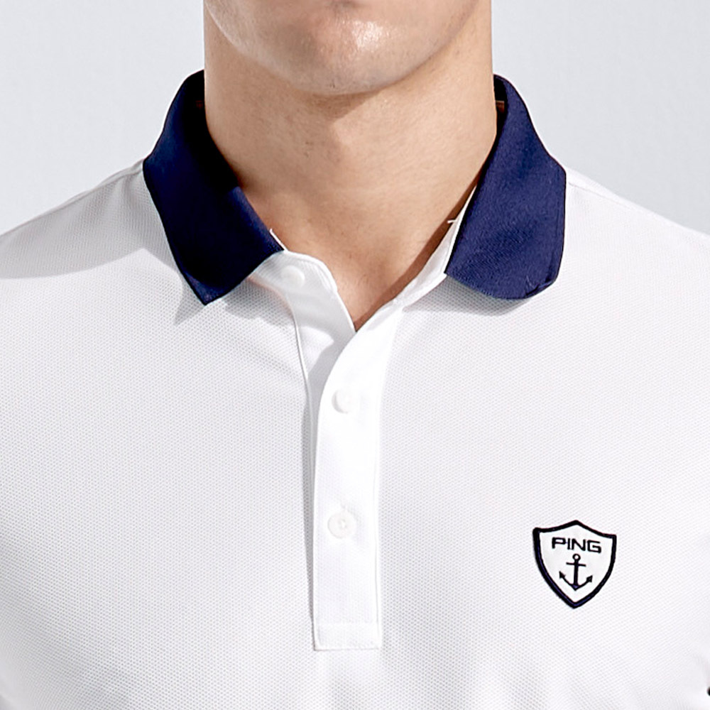 【PING】男款繡標吸濕排汗抗UV高爾夫短袖POLO衫-白 / PA24112-87