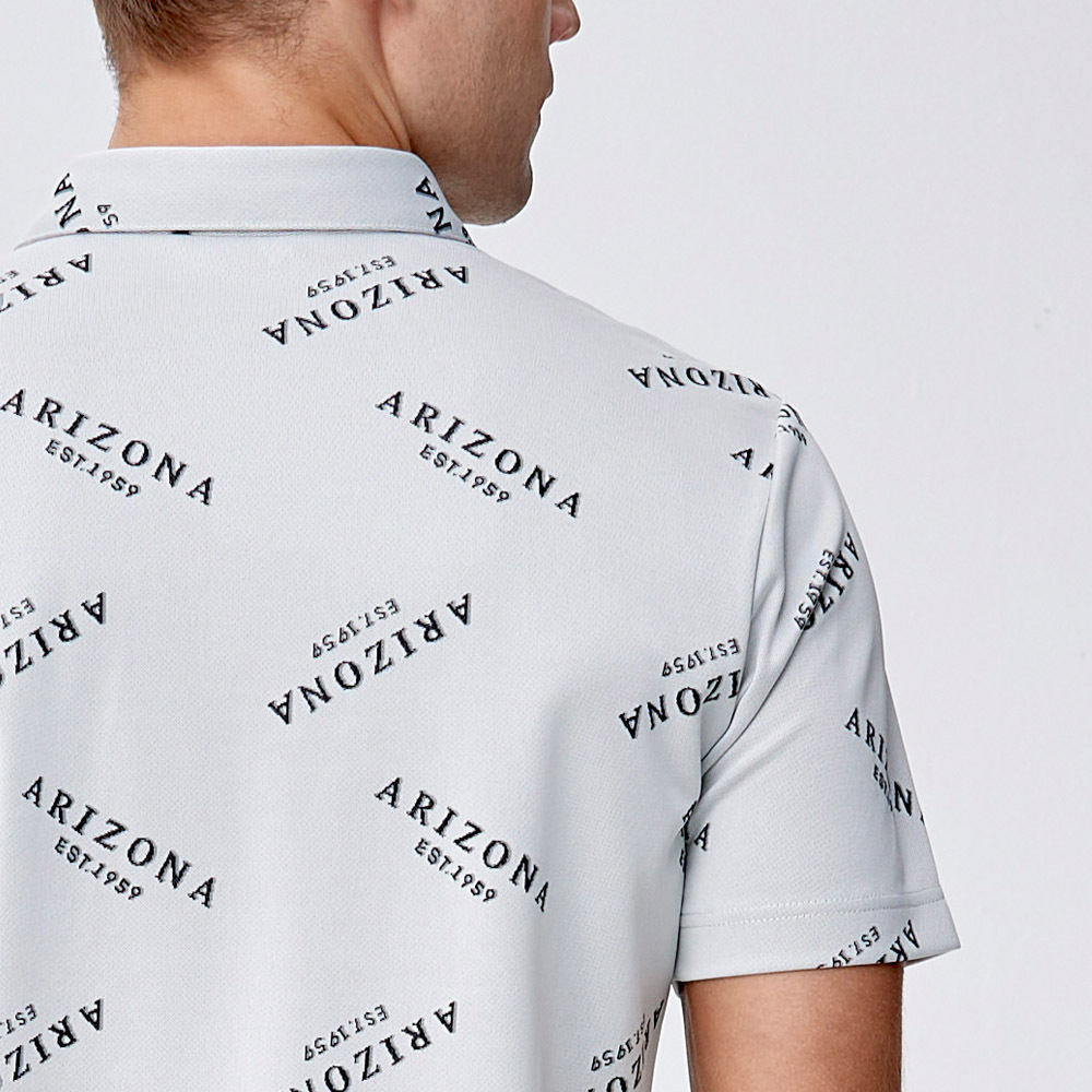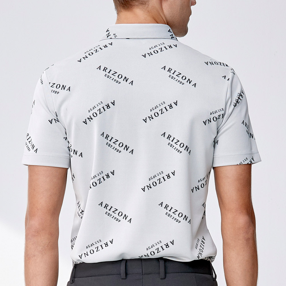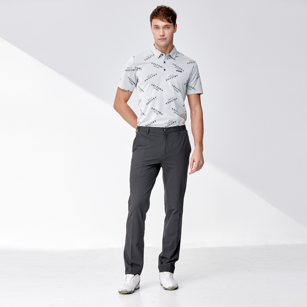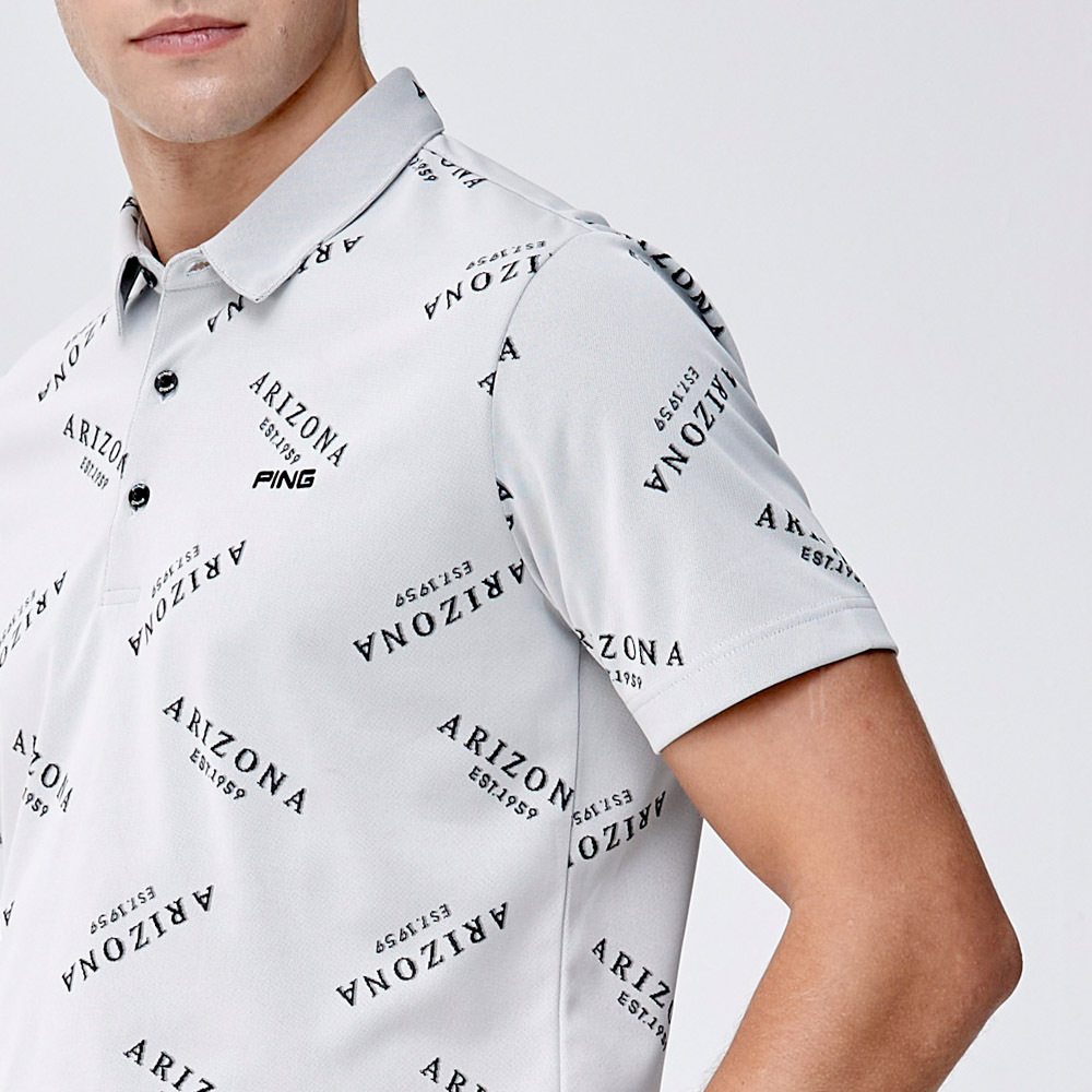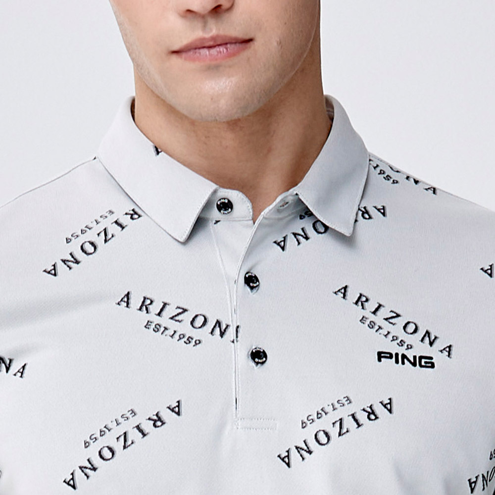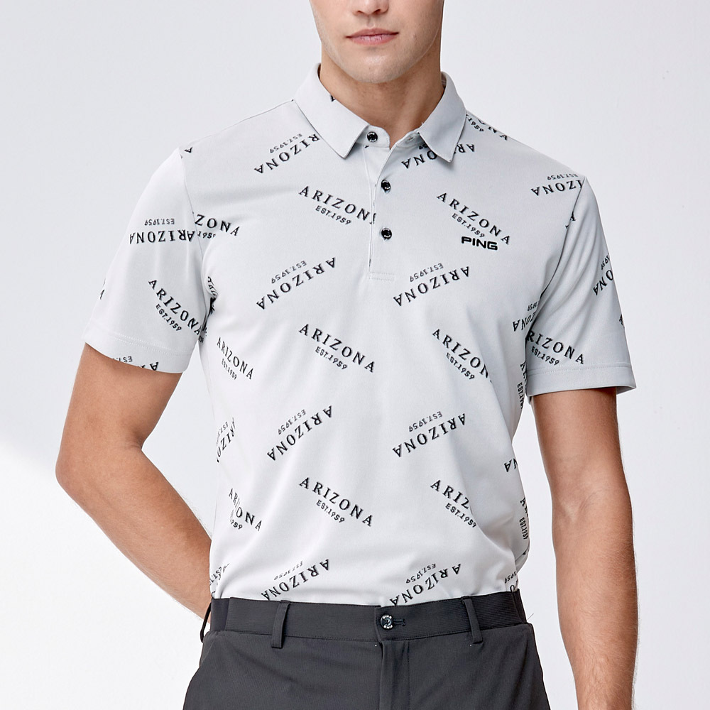 【PING】男款文字緹花吸濕排汗短袖POLO衫-灰 / PA24116-83