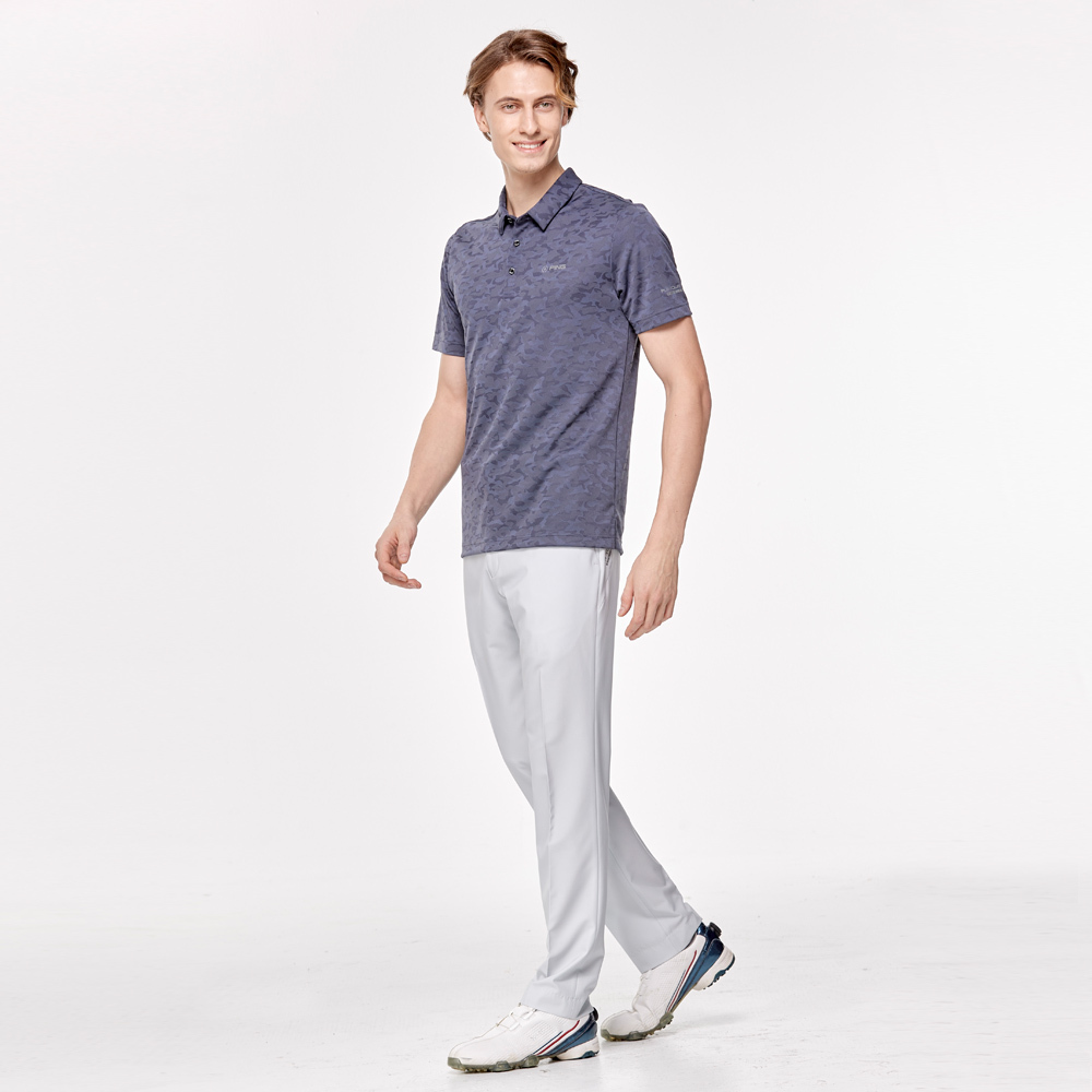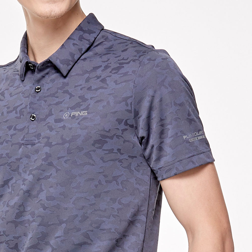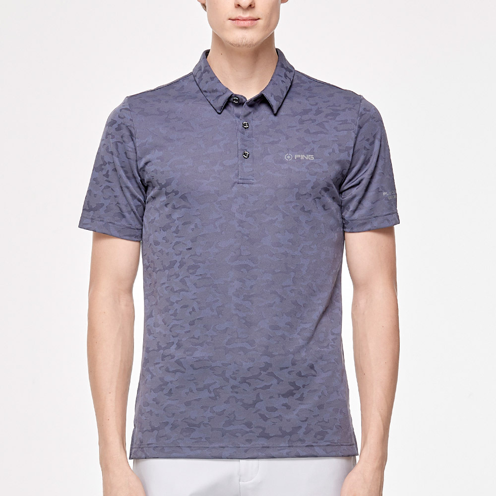 【PING】男款亮光紗迷彩緹花吸濕排汗短袖POLO衫-深藍 / PA24118-57