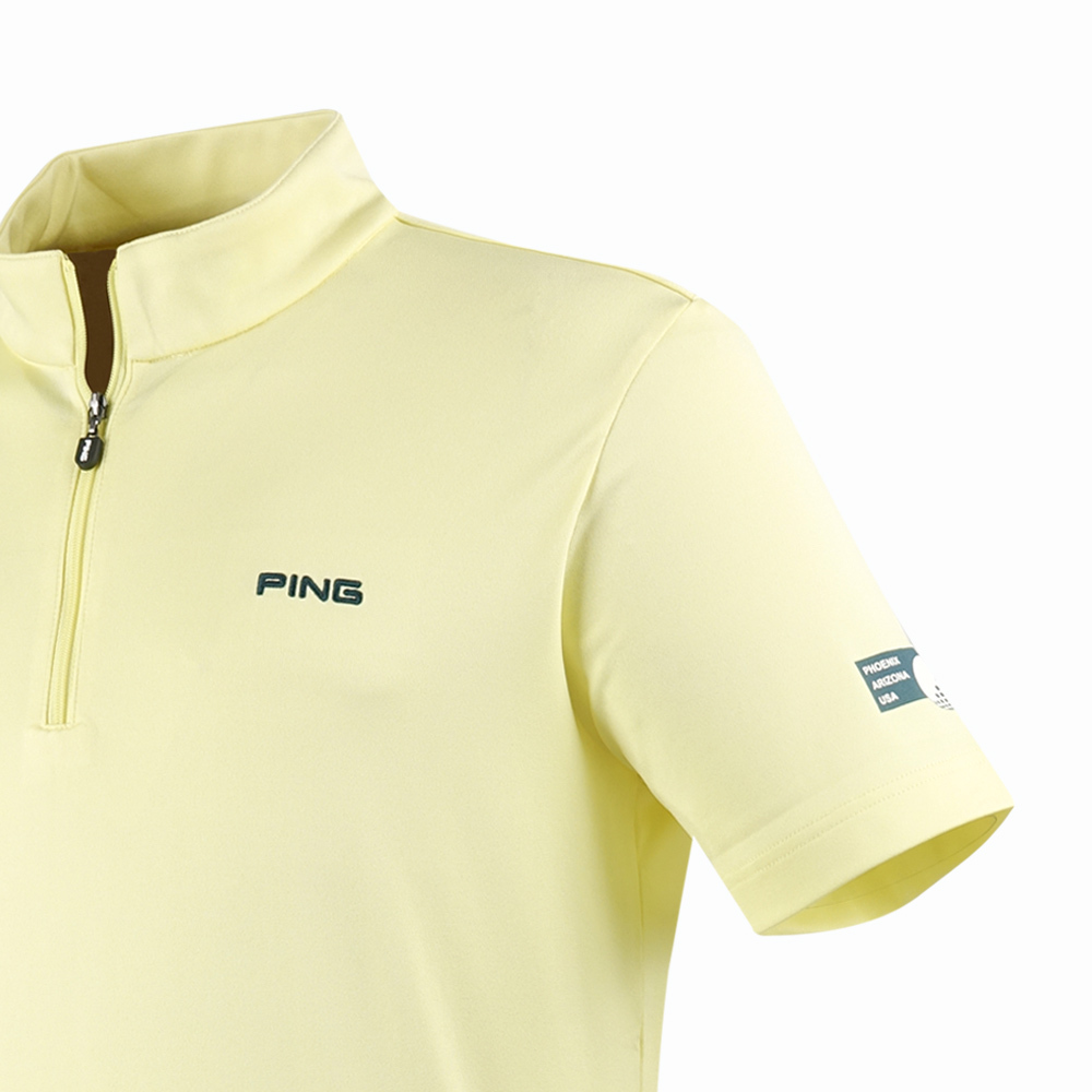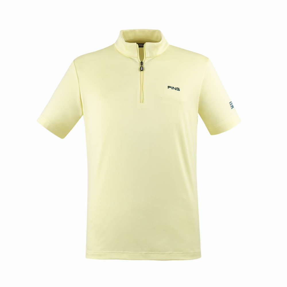 【PING】男款吸濕排汗高爾夫立領短袖上衣-黃 / PA24121-35
