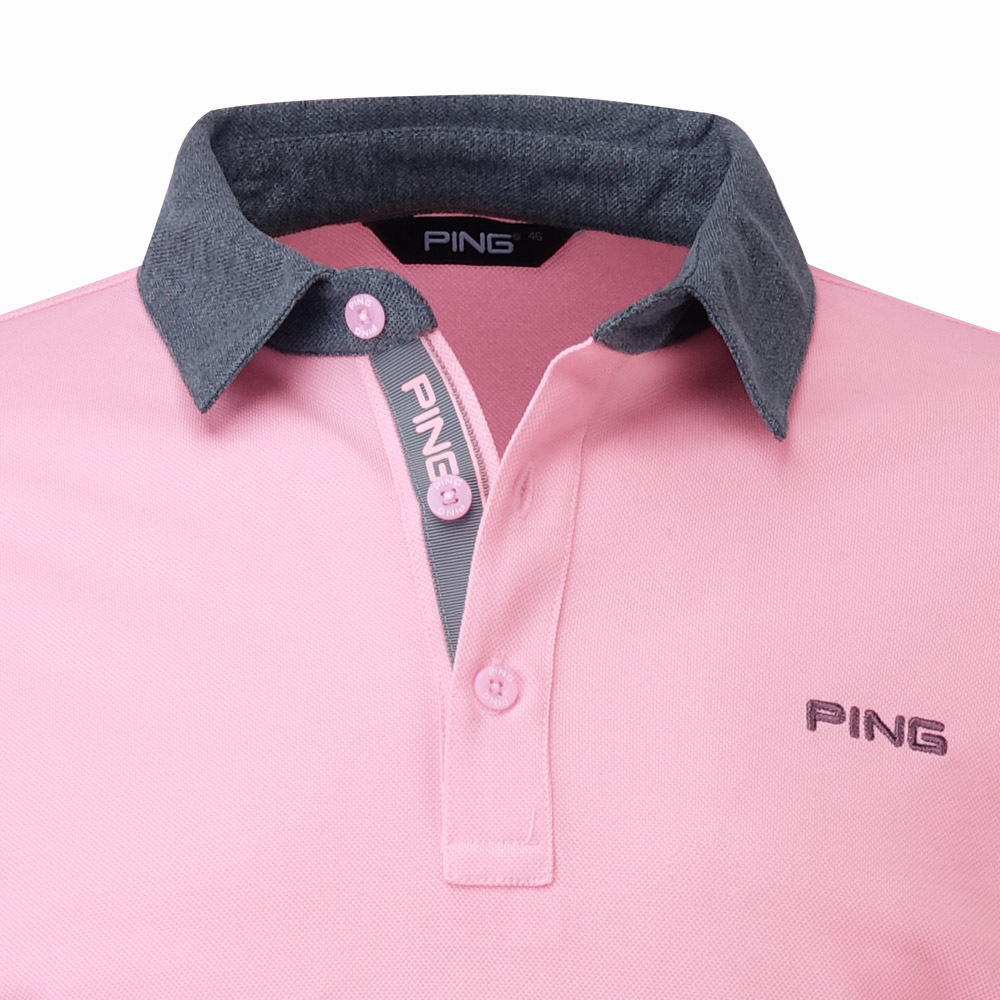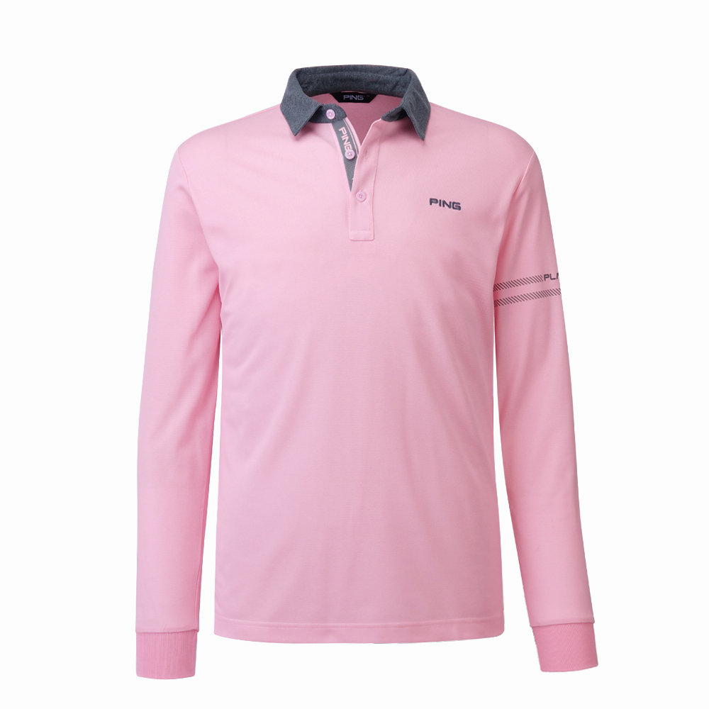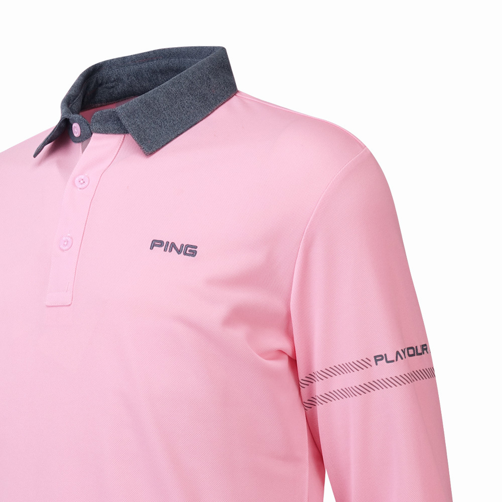 【PING】男款袖印字吸濕排汗高爾夫長袖POLO衫-粉紅 / PA24203-13