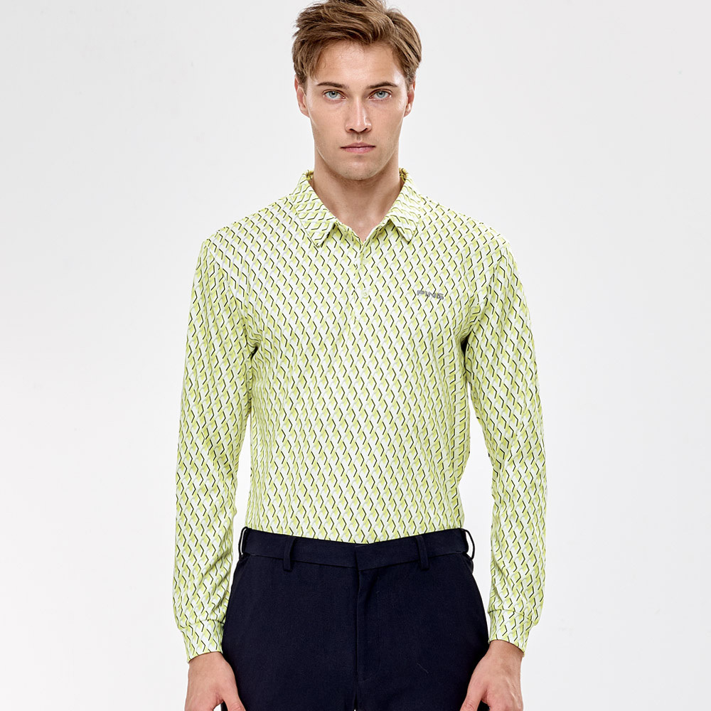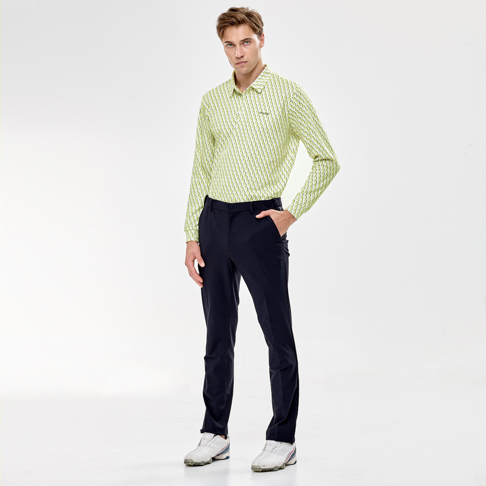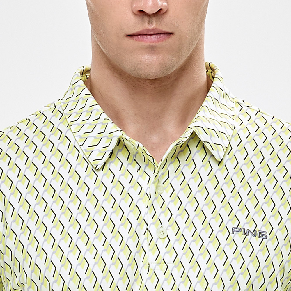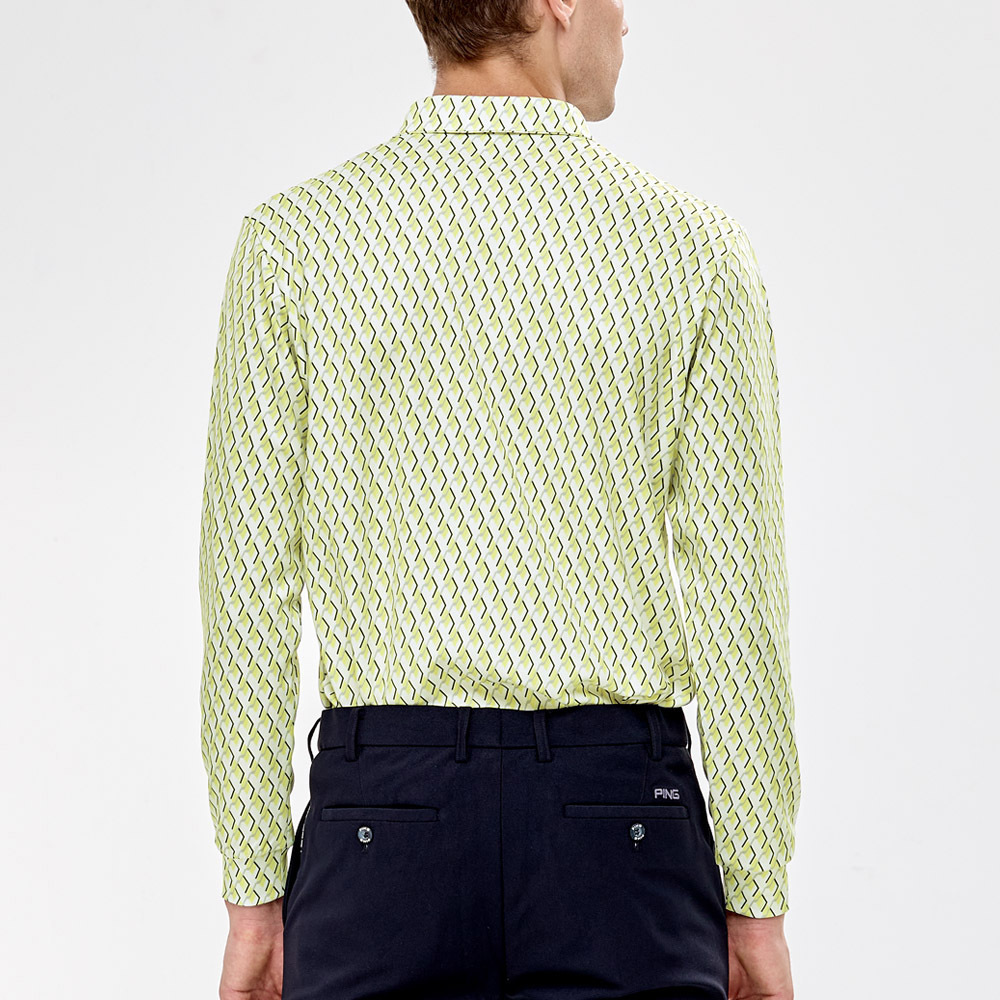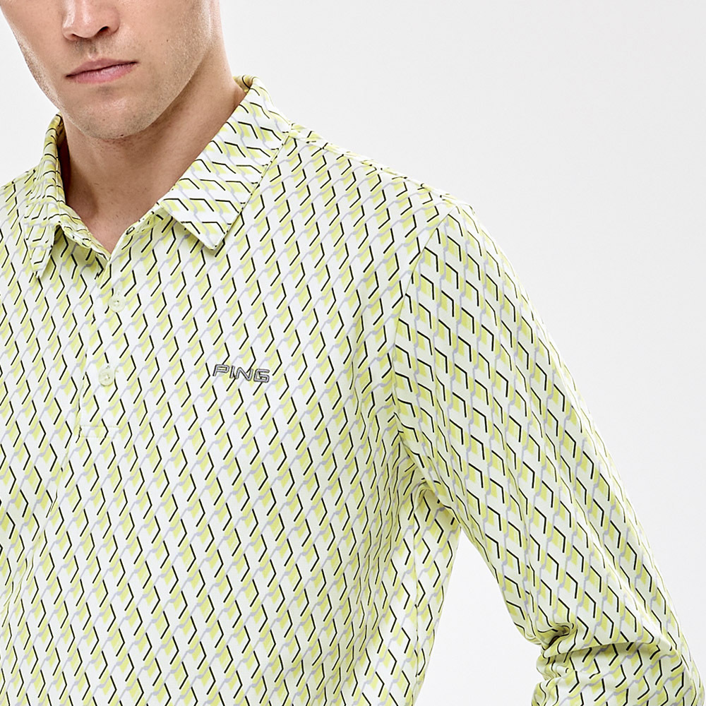 【PING】男款球桿菱格高爾夫薄長袖POLO衫-綠 / PA24206-43