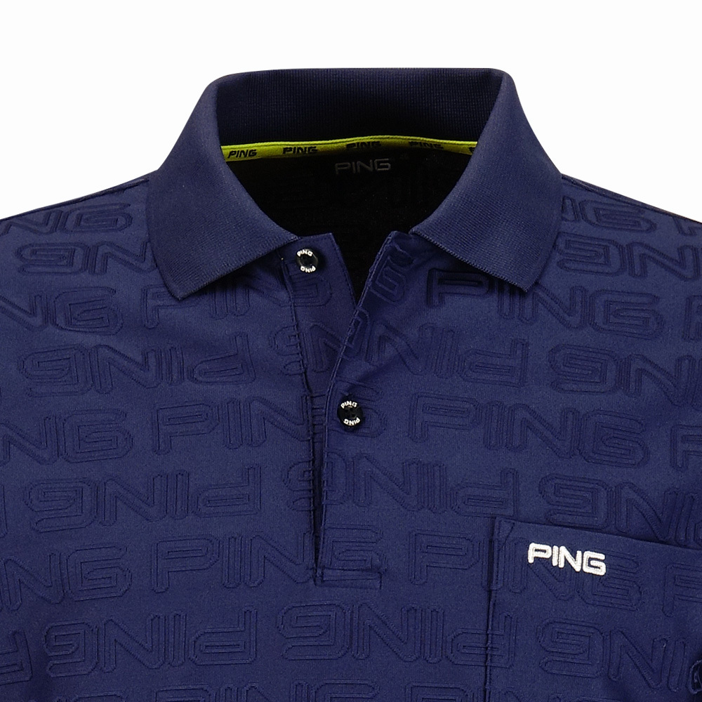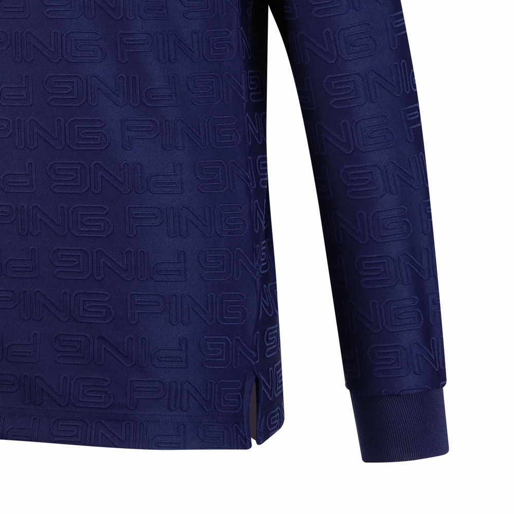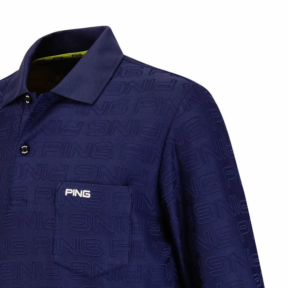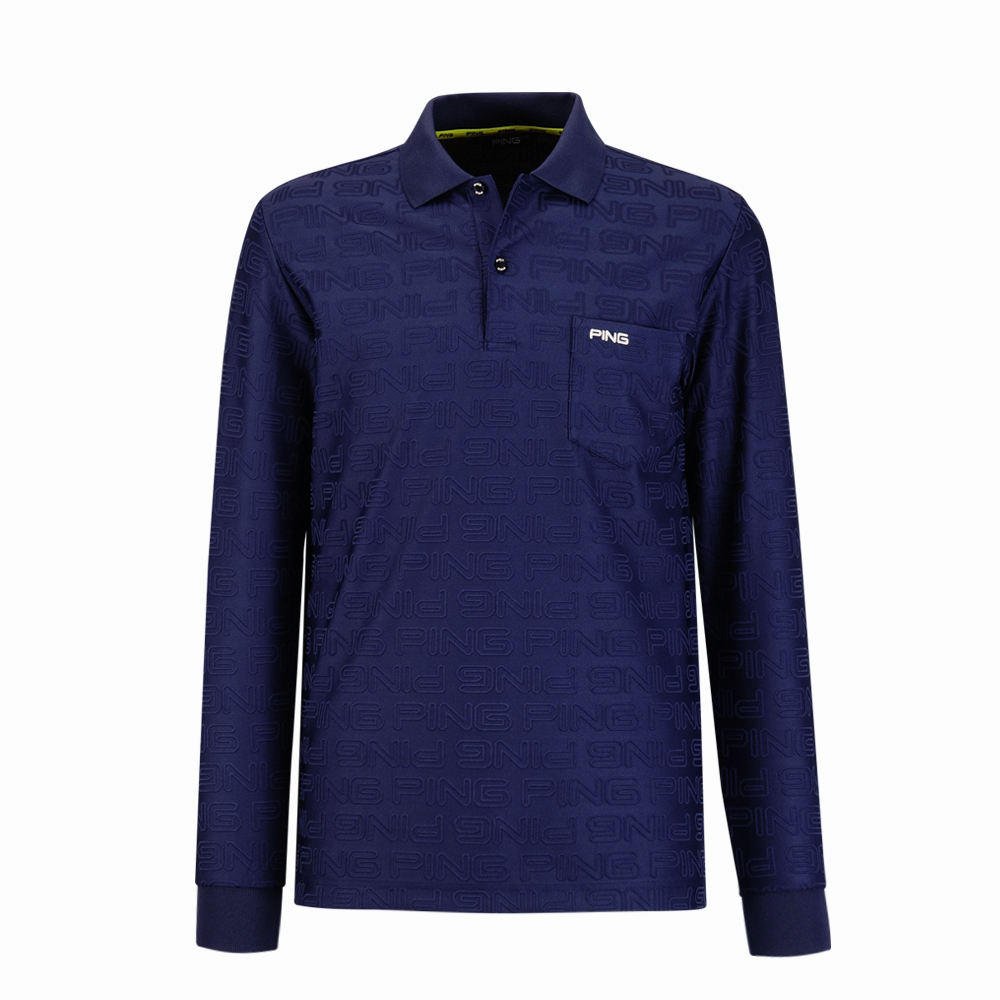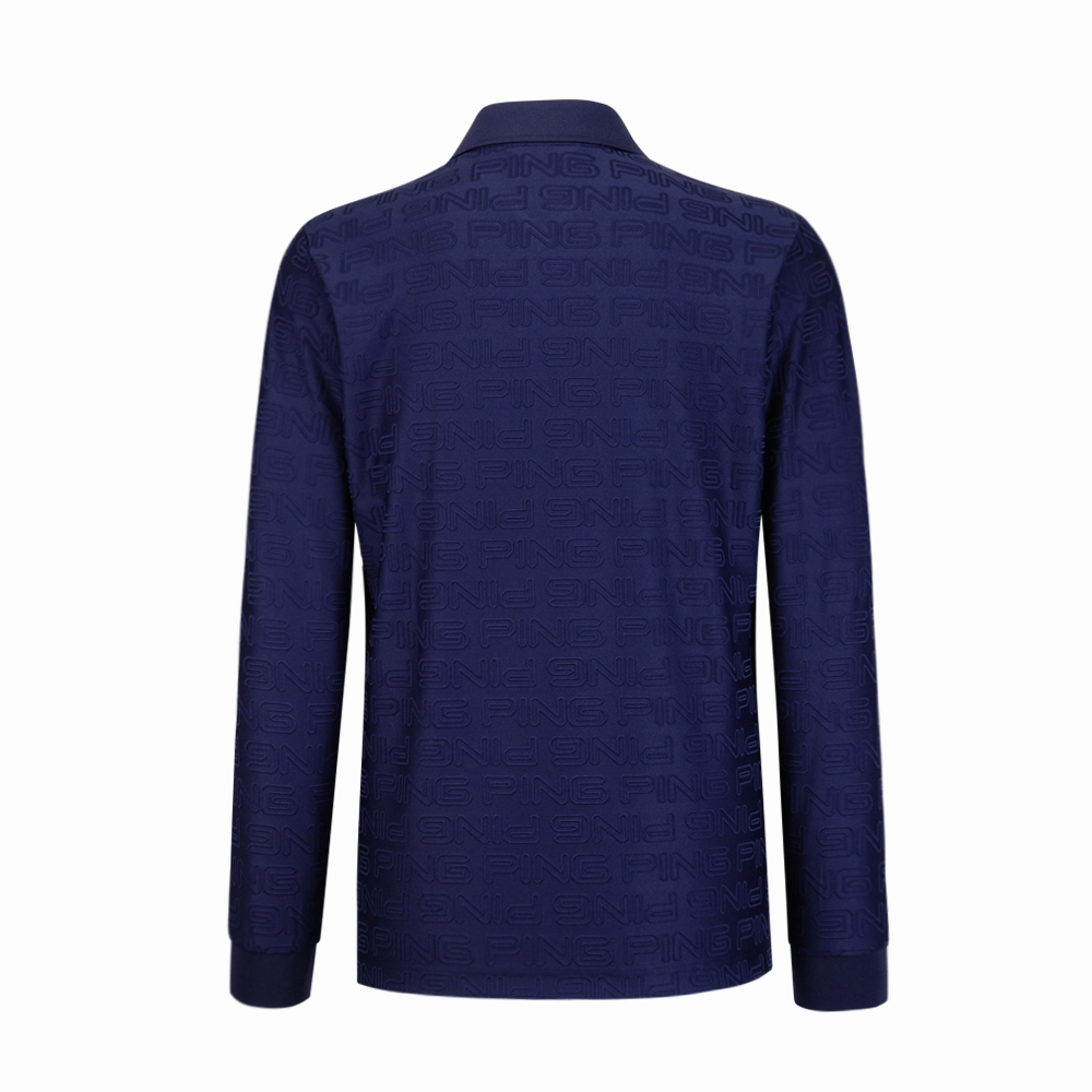 【PING】男款LOGO緹花高爾夫長袖POLO衫-深藍 / PA24208-58