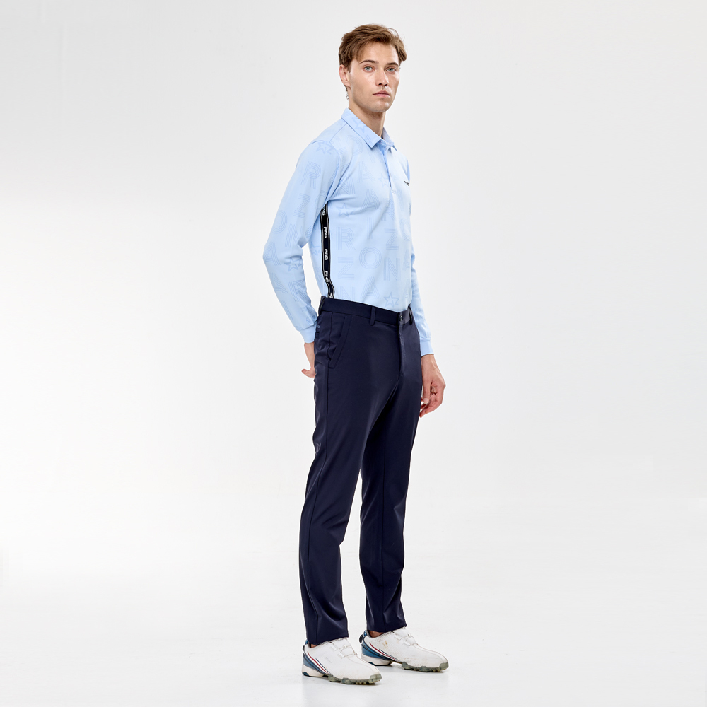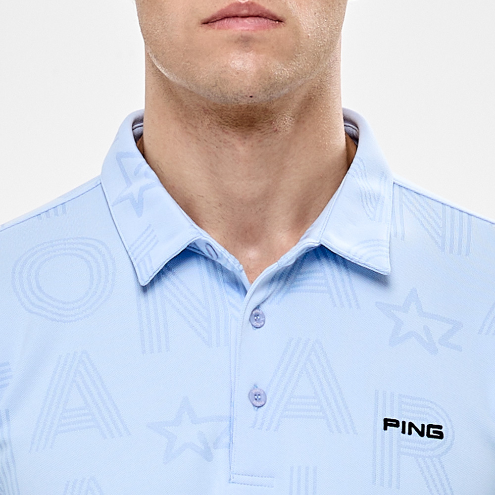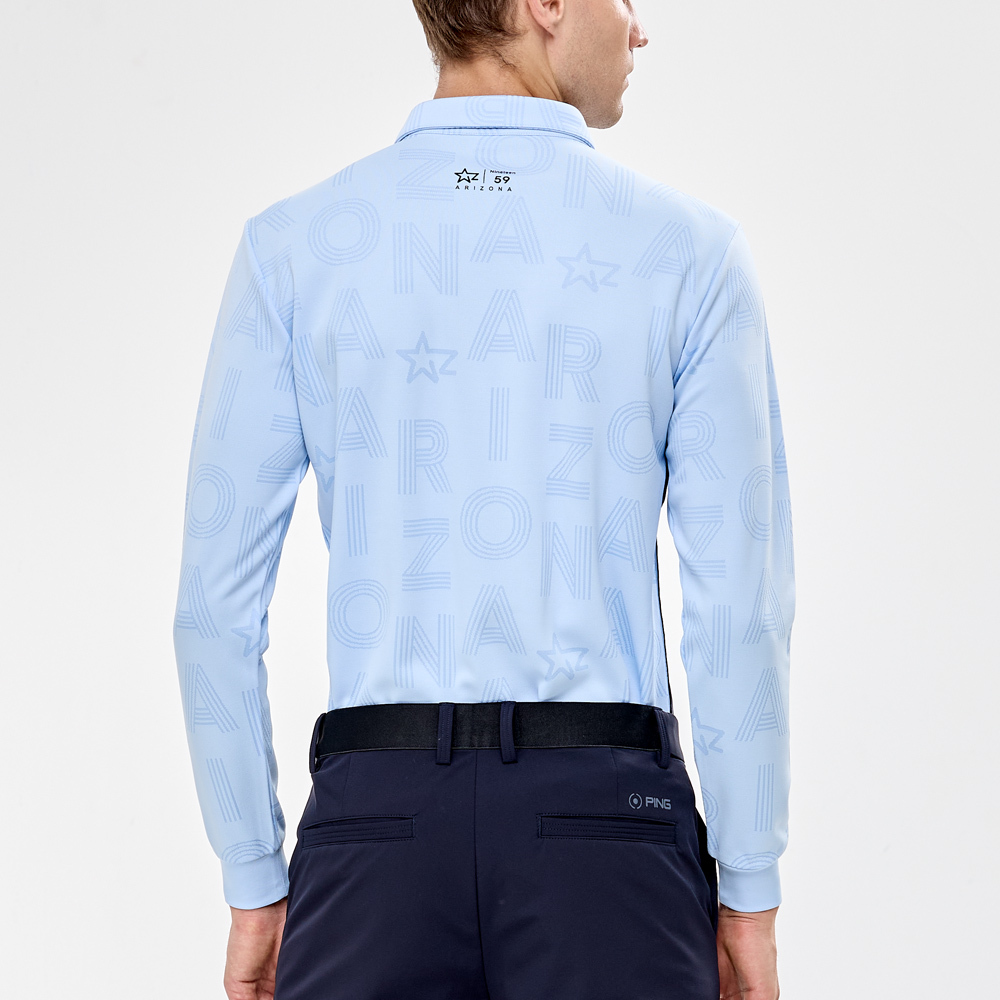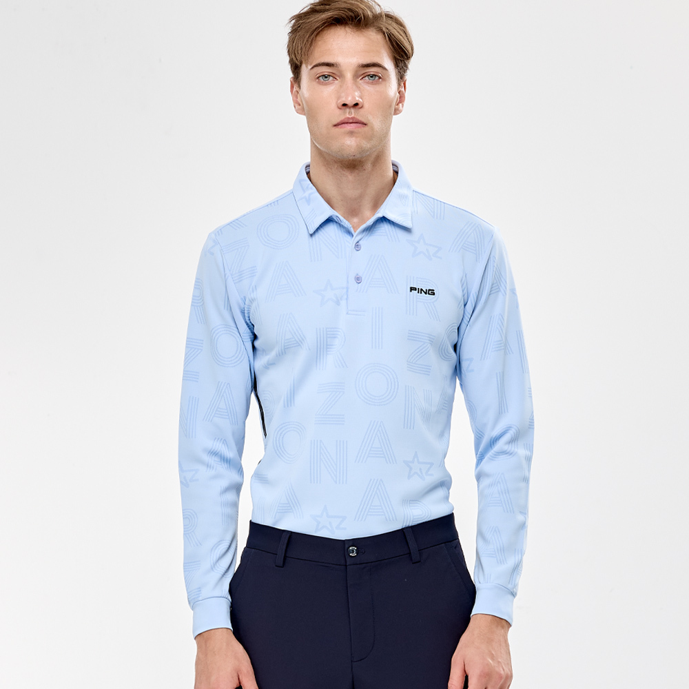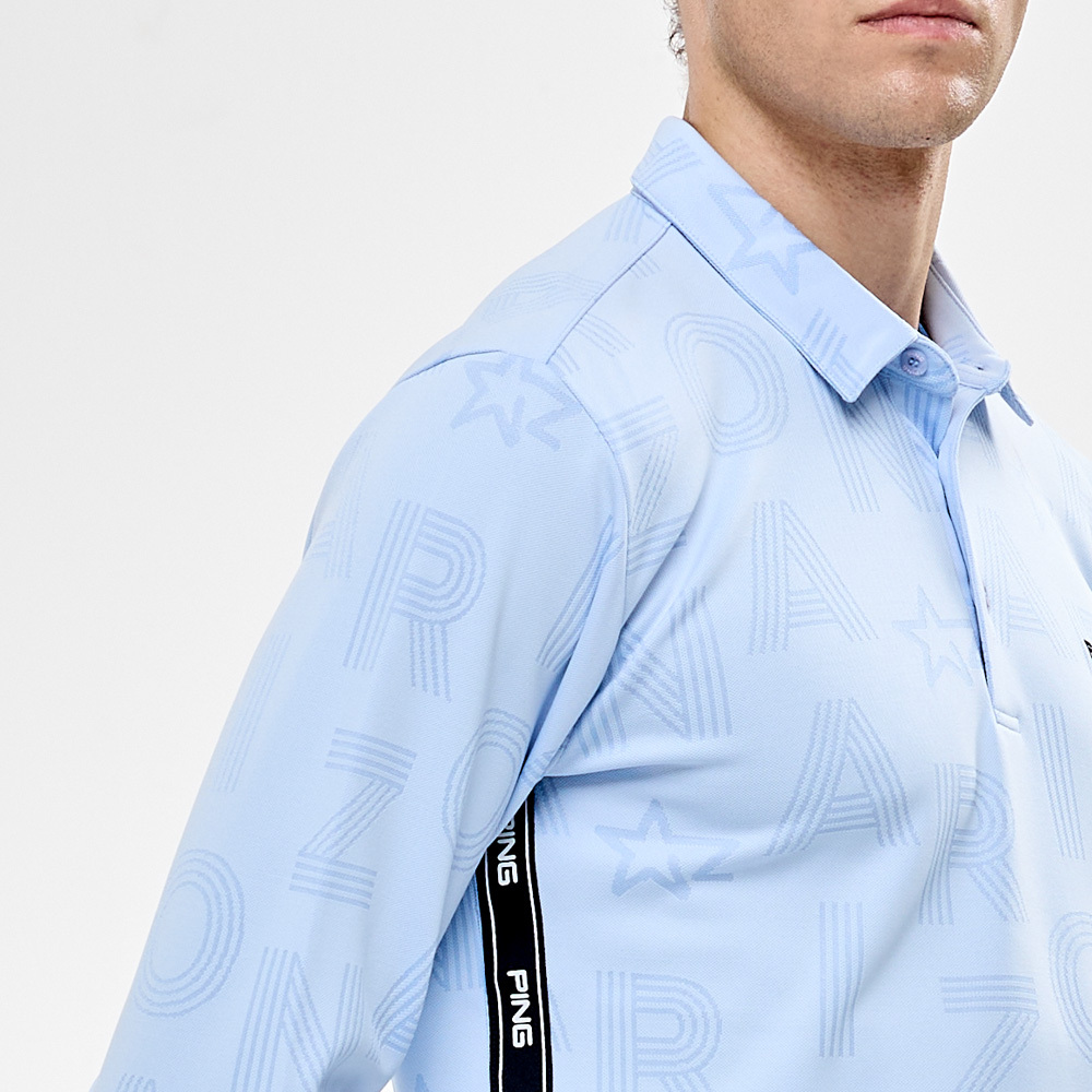 【PING】男款ARIZONA五角星緹花高爾夫長袖POLO衫-藍 / PA24218-53