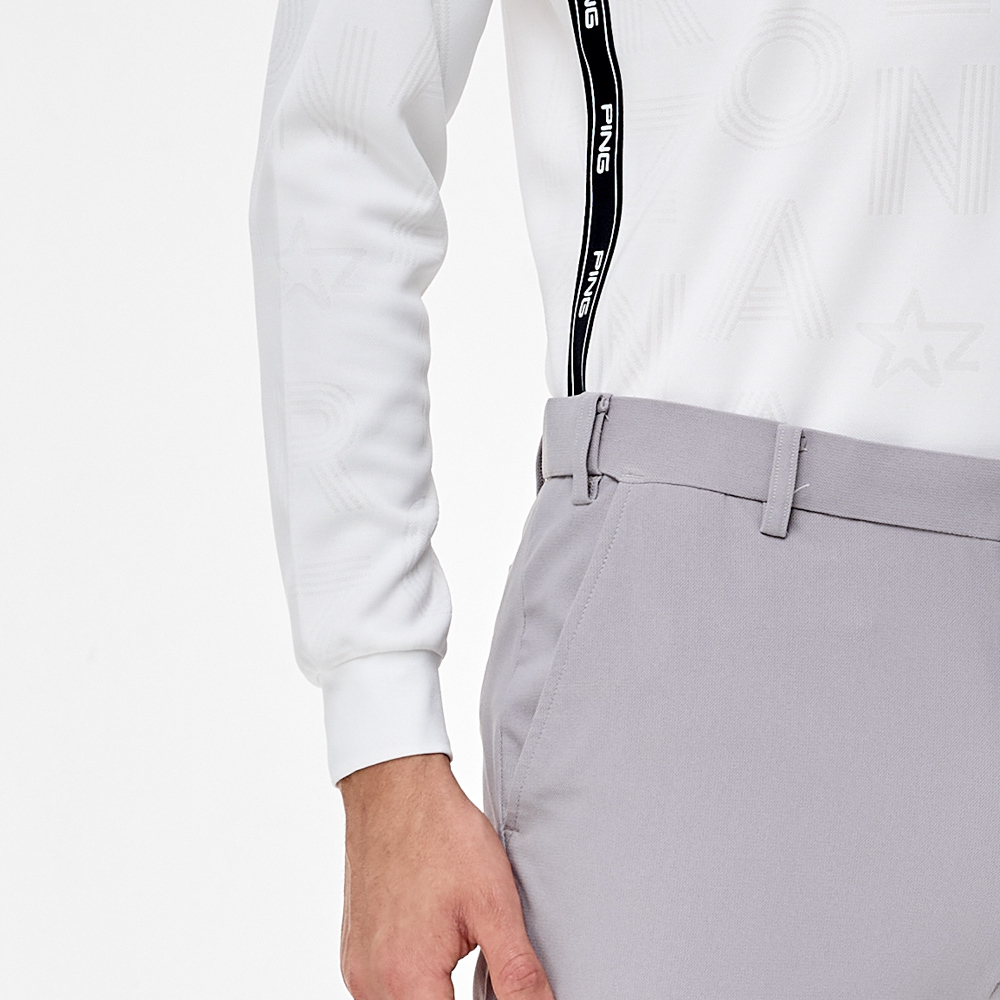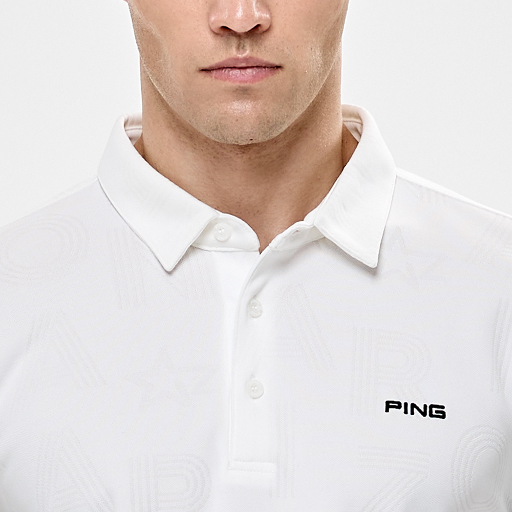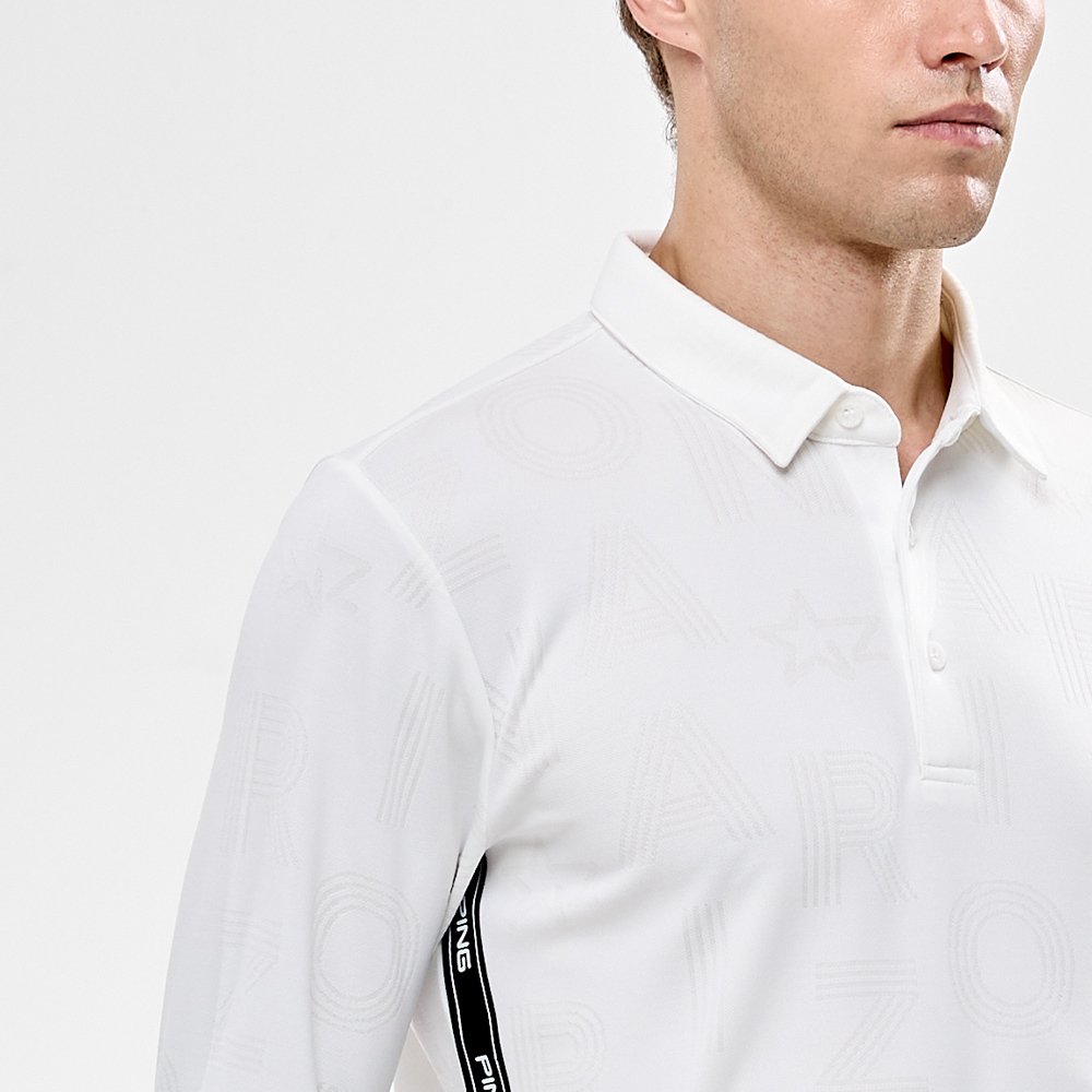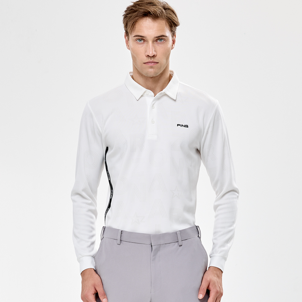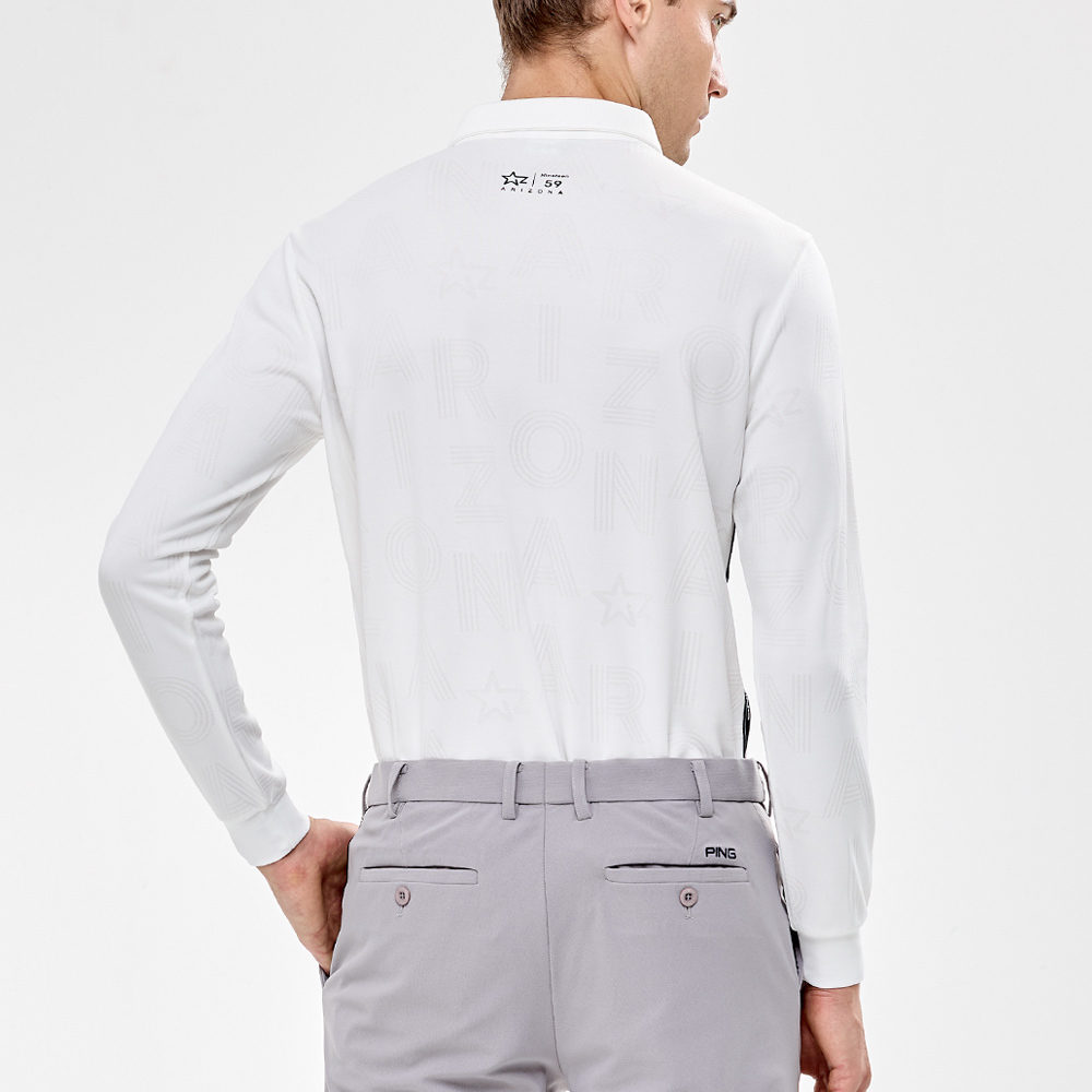 【PING】男款ARIZONA五角星緹花高爾夫長袖POLO衫-白 / PA24218-73