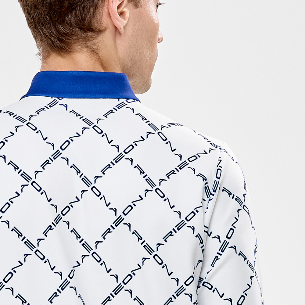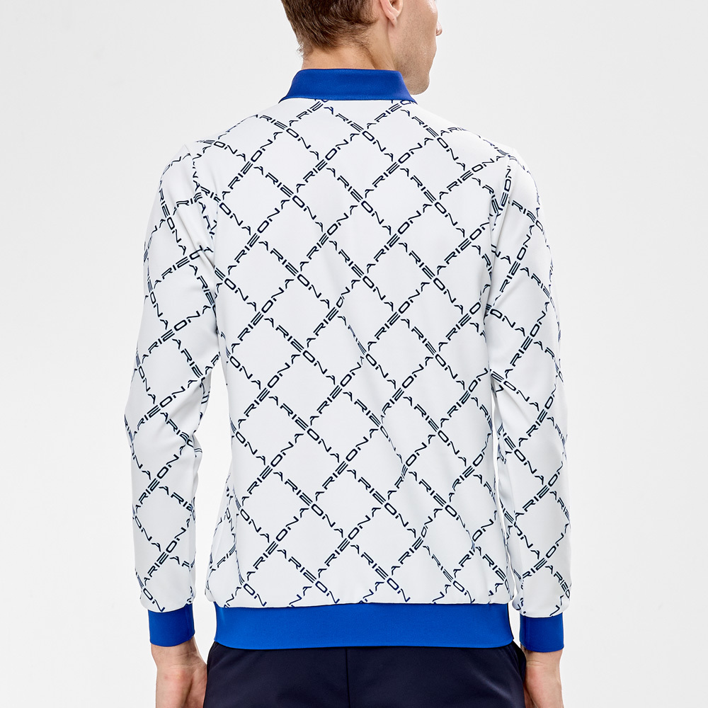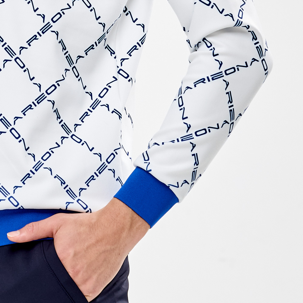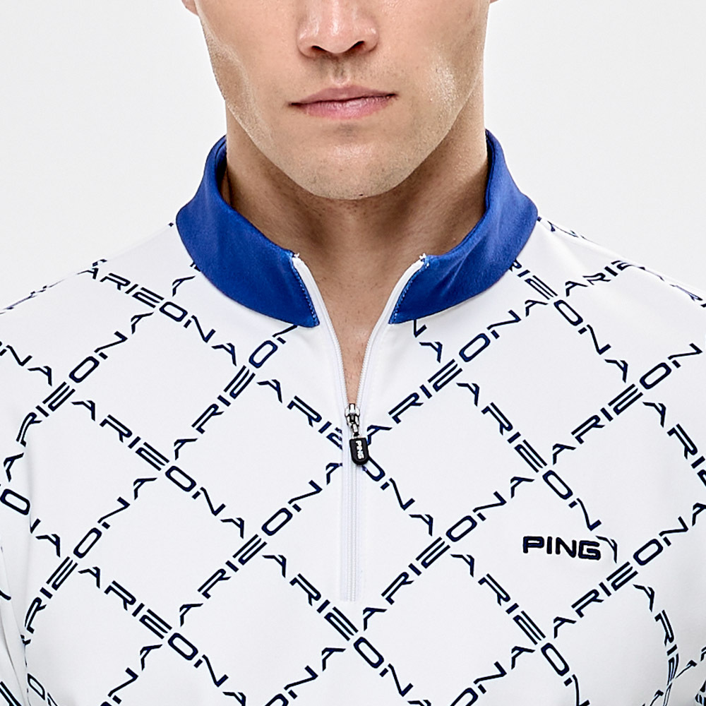 【PING】男款字體菱格紋長袖刷毛立領上衣-藍 / PA24225-56